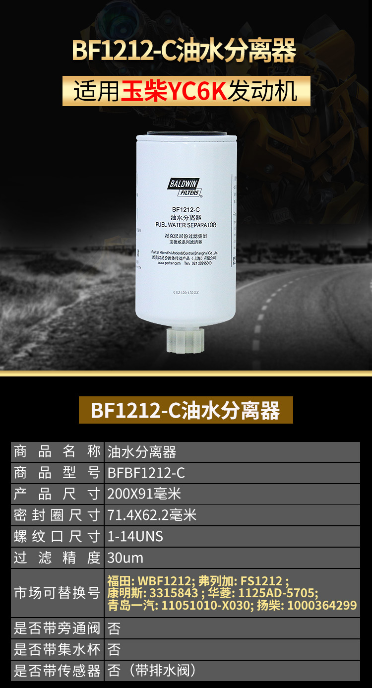 派克 柴油粗滤芯 BF1212-C 适用于福田/华菱/青岛一汽/玉柴YC6K发动机