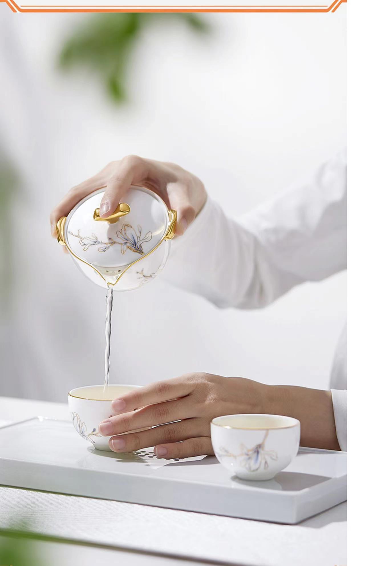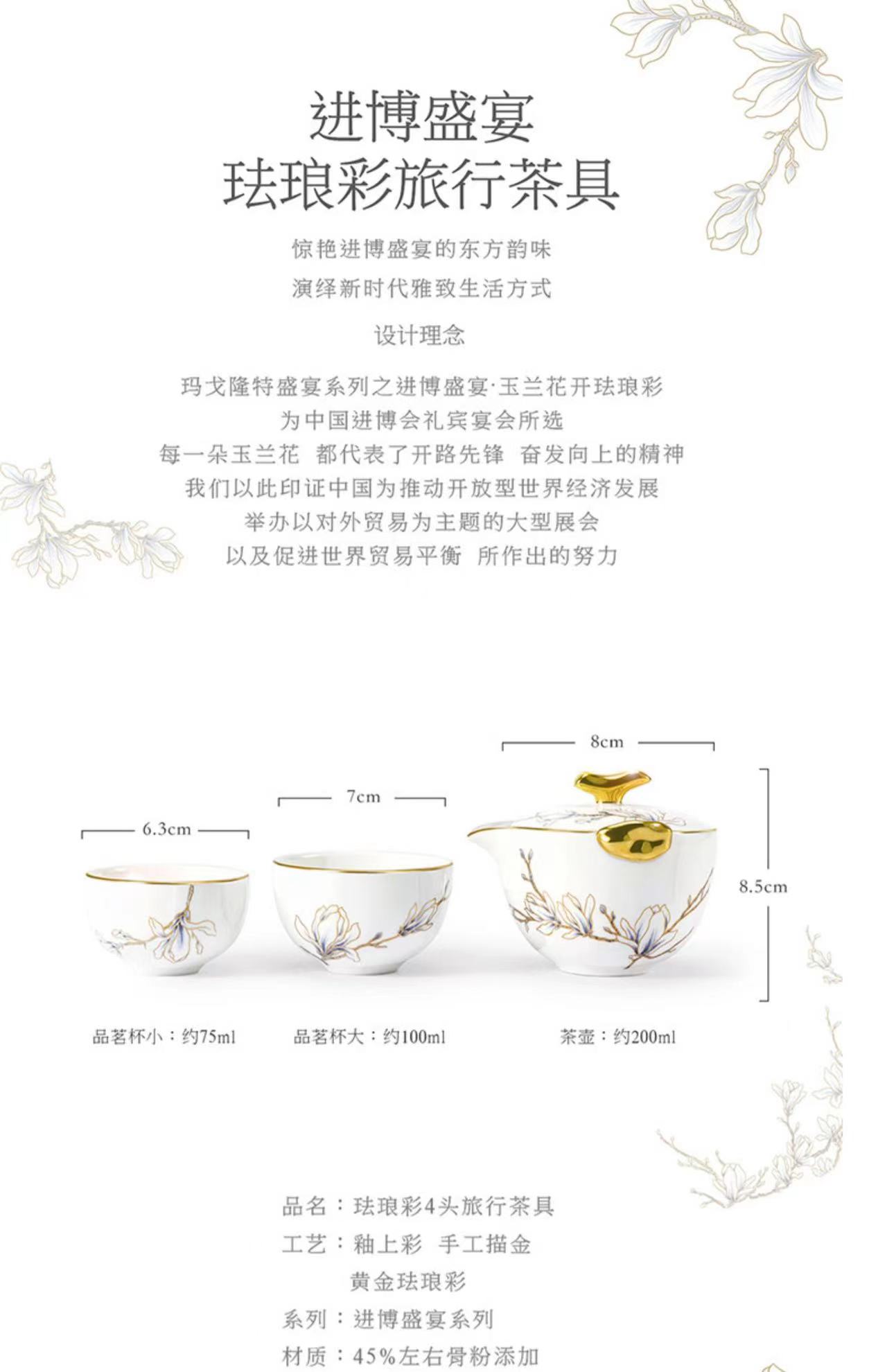 【春上新】10楼玛戈隆特进博玉兰珐琅彩4头茶具-青云吊牌价788元活动价668元
