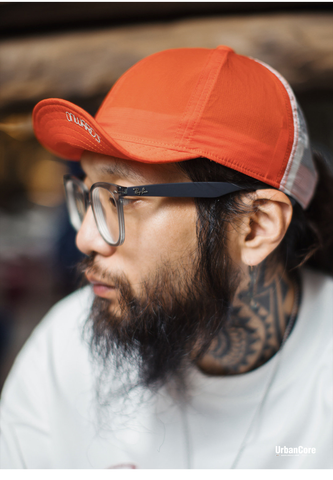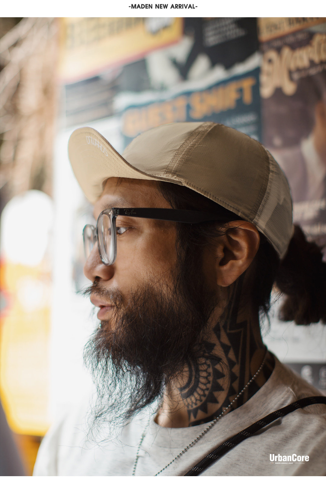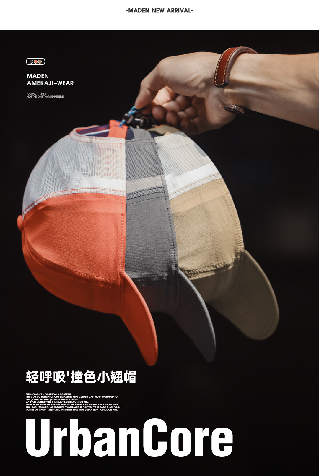 马登工装美式棒球帽网帽透气网眼遮阳平檐鸭舌撞色小翘帽子男夏季