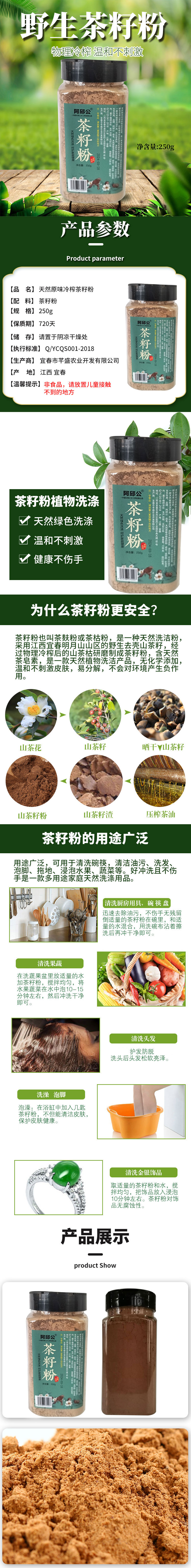 包邮 天然野生茶籽粉茶麸粉250g*3瓶装 洗头 洗碗