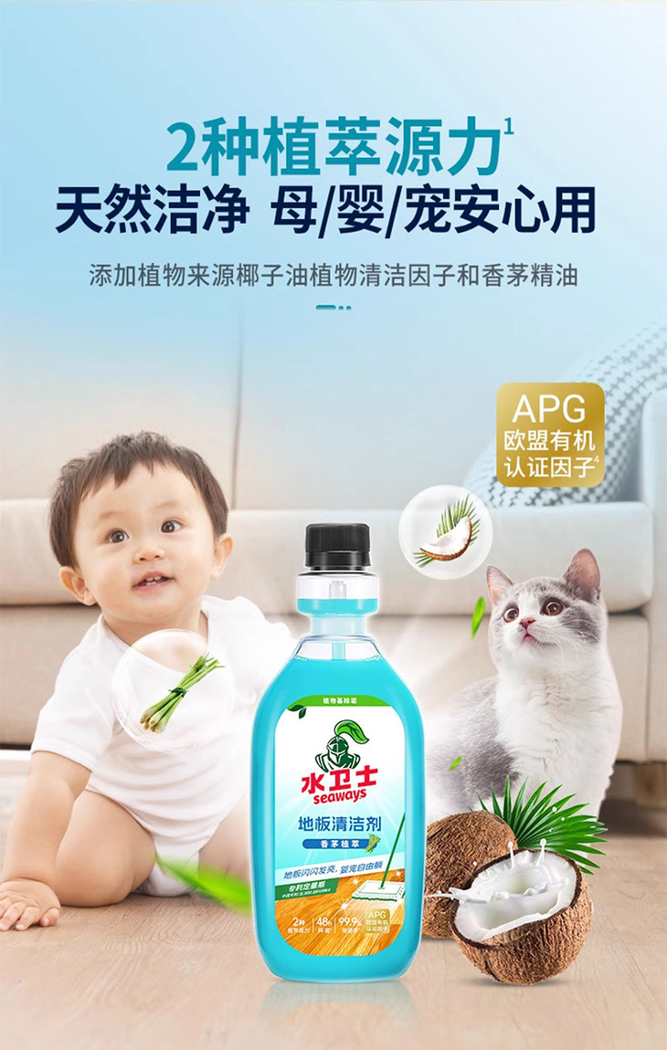 [屁侠推荐]水卫士 香茅植萃地板清洁剂500ml*3瓶 加赠重油污/浴室清洁剂/洁厕净 添加椰子油植物清洁因子、香茅精油 母/婴/宠安心用
