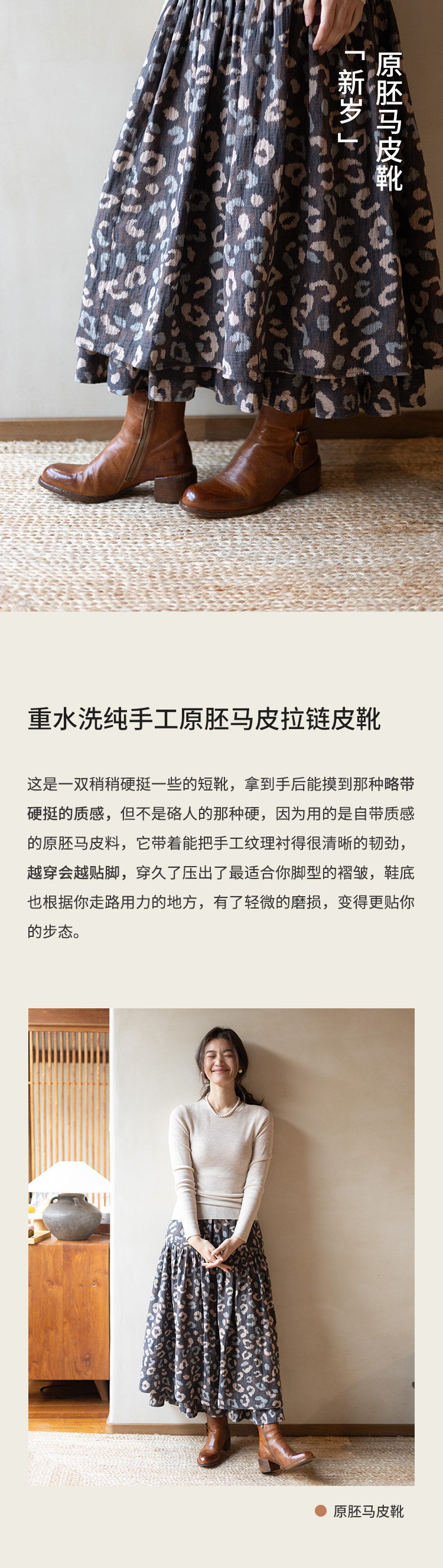 绽放/LSX010朵新岁·纯手工重水洗原胚马皮马丁靴粗跟侧拉链短靴