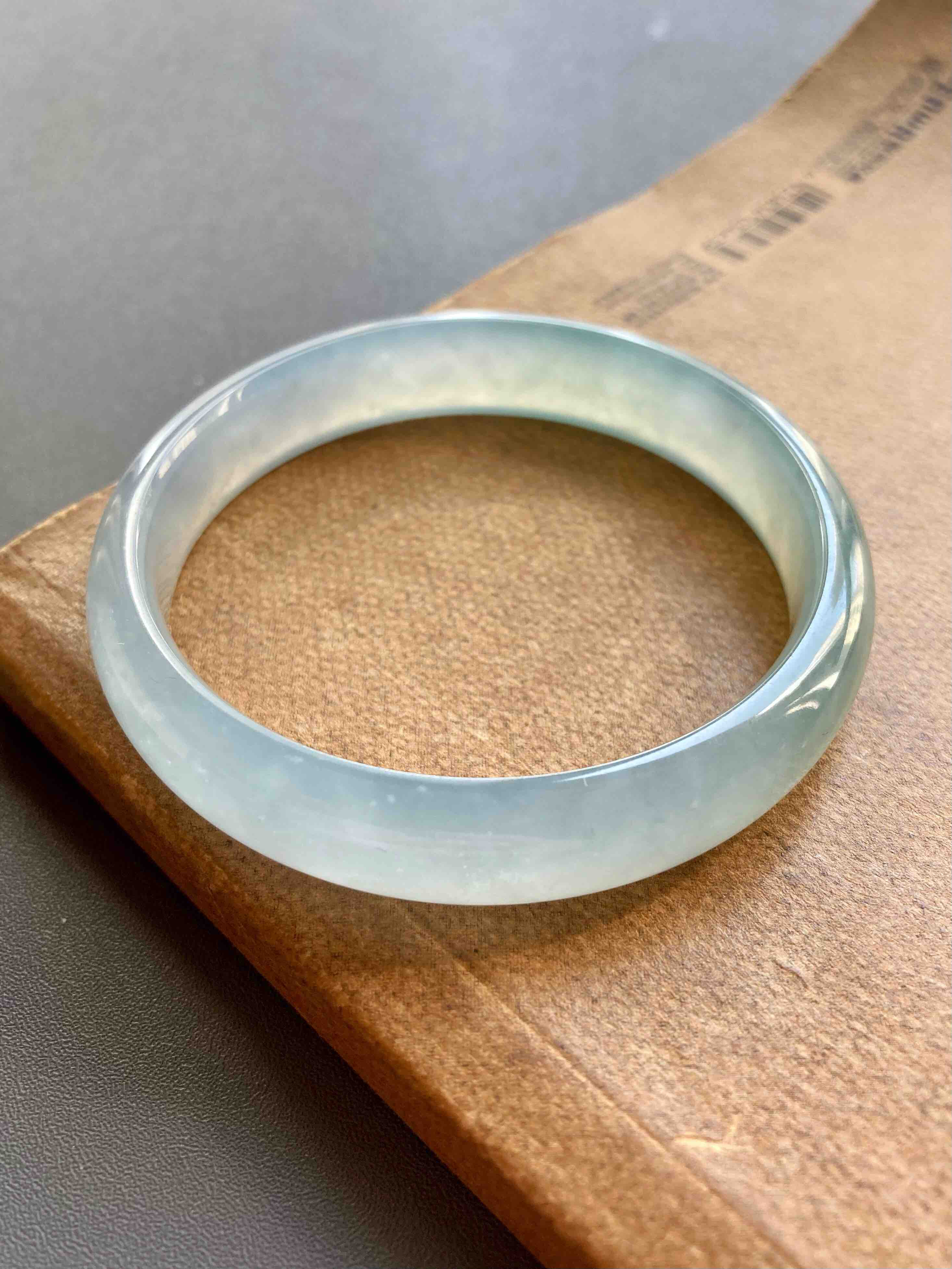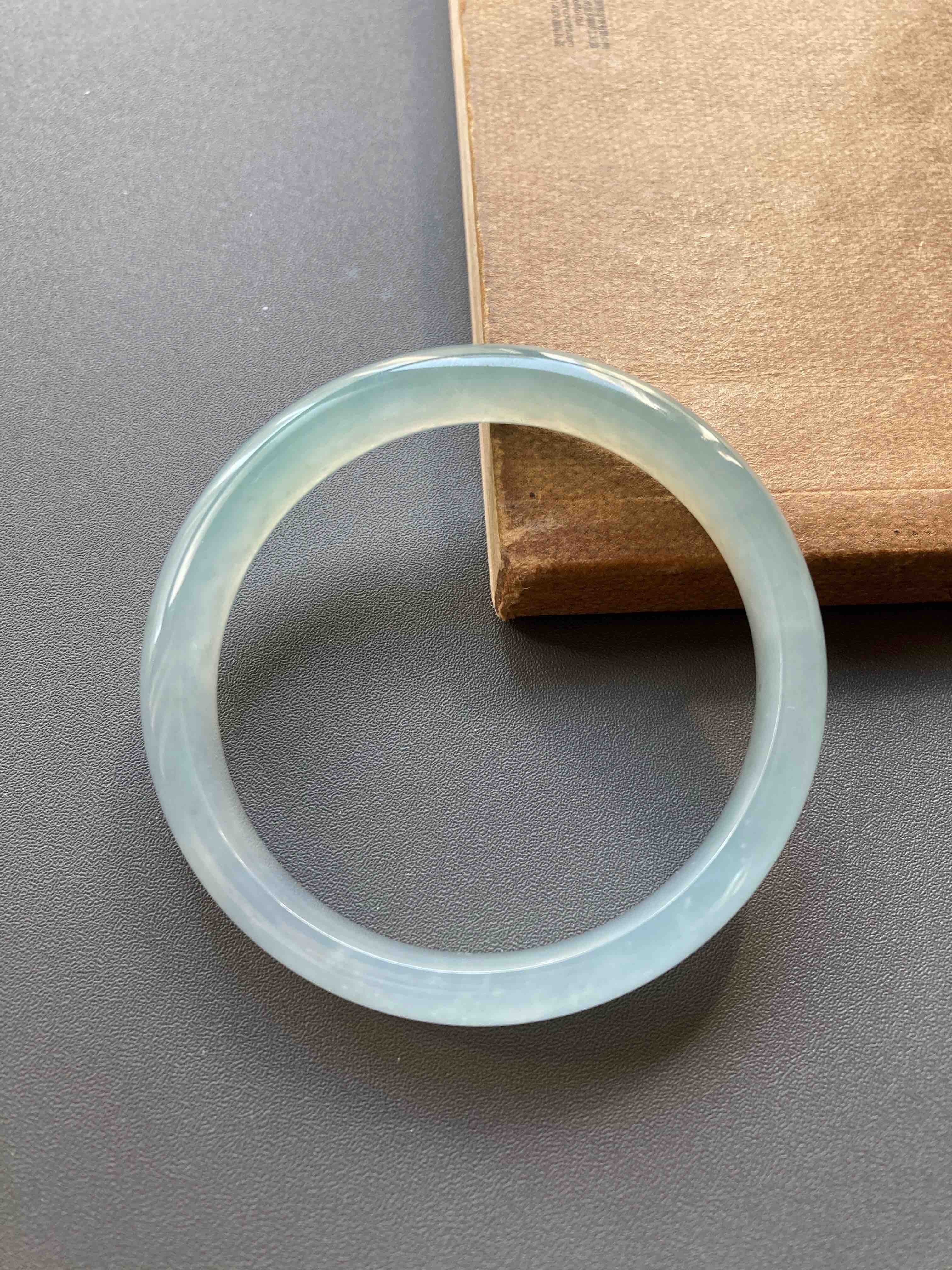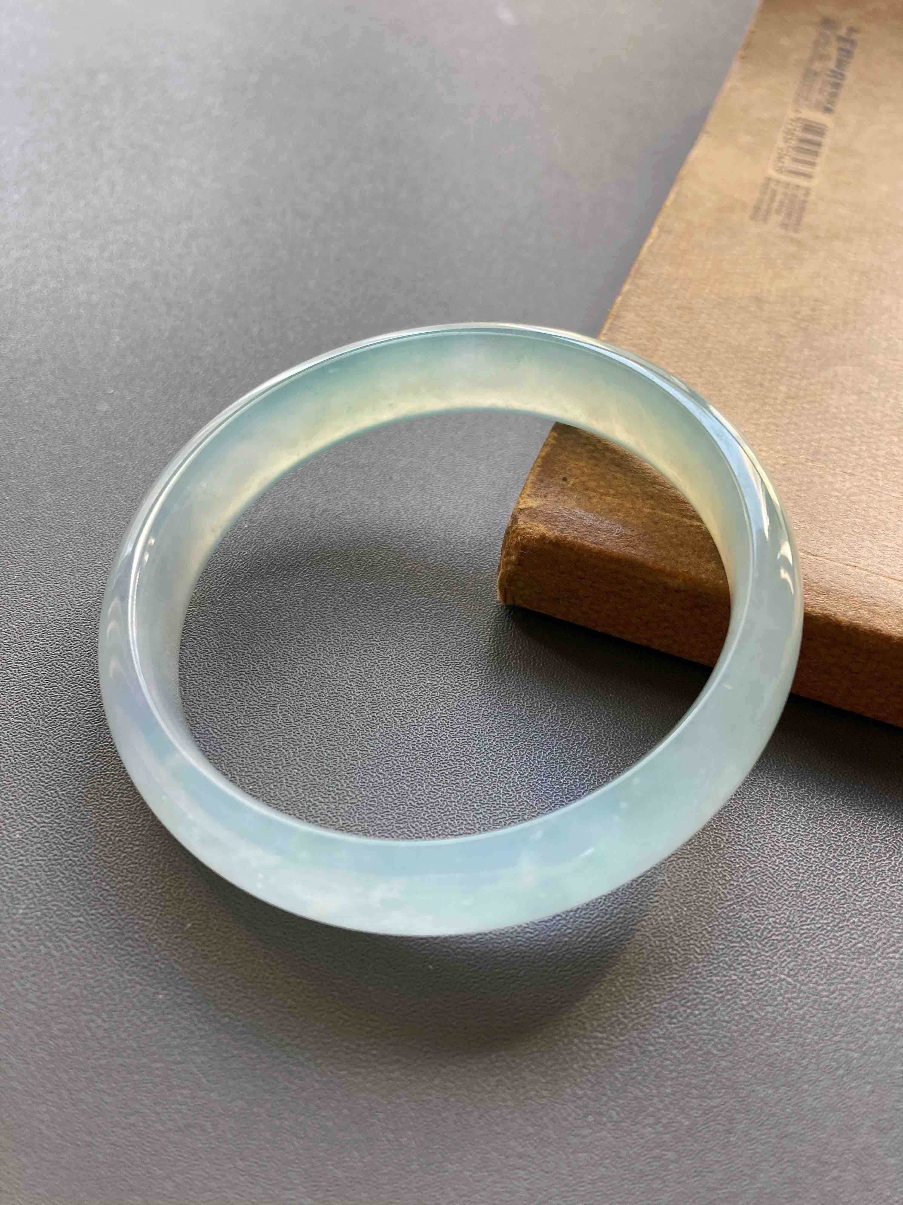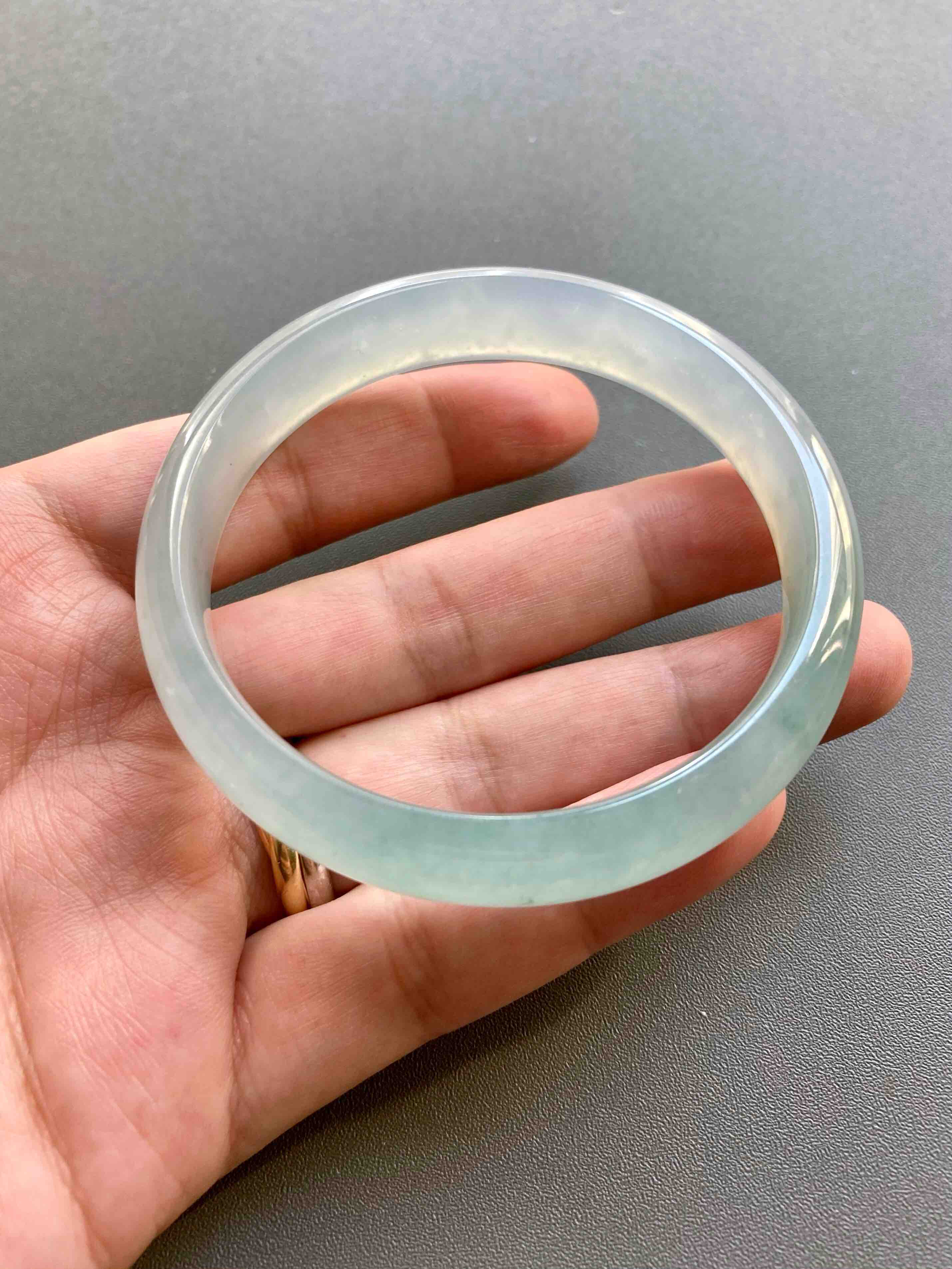 种水尤物,大圈口的福利。实在漂亮,冰种起胶的翡翠手镯,特清纯的质感,晶莹剔透,难得的是内径58,宽12.4,厚7.1mm,适合手寸57到59佩戴,以后要六位数的东西,现在早拿下,这才是眼光