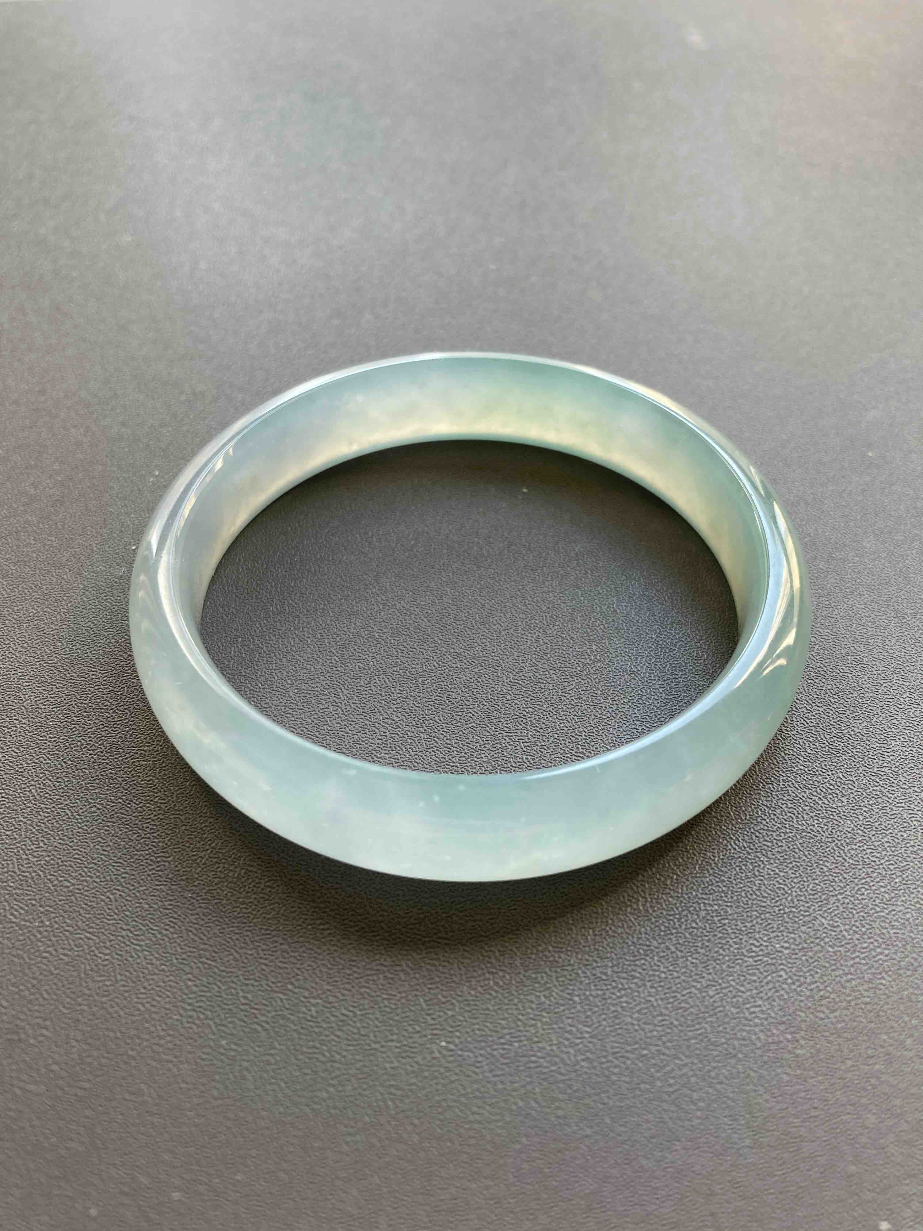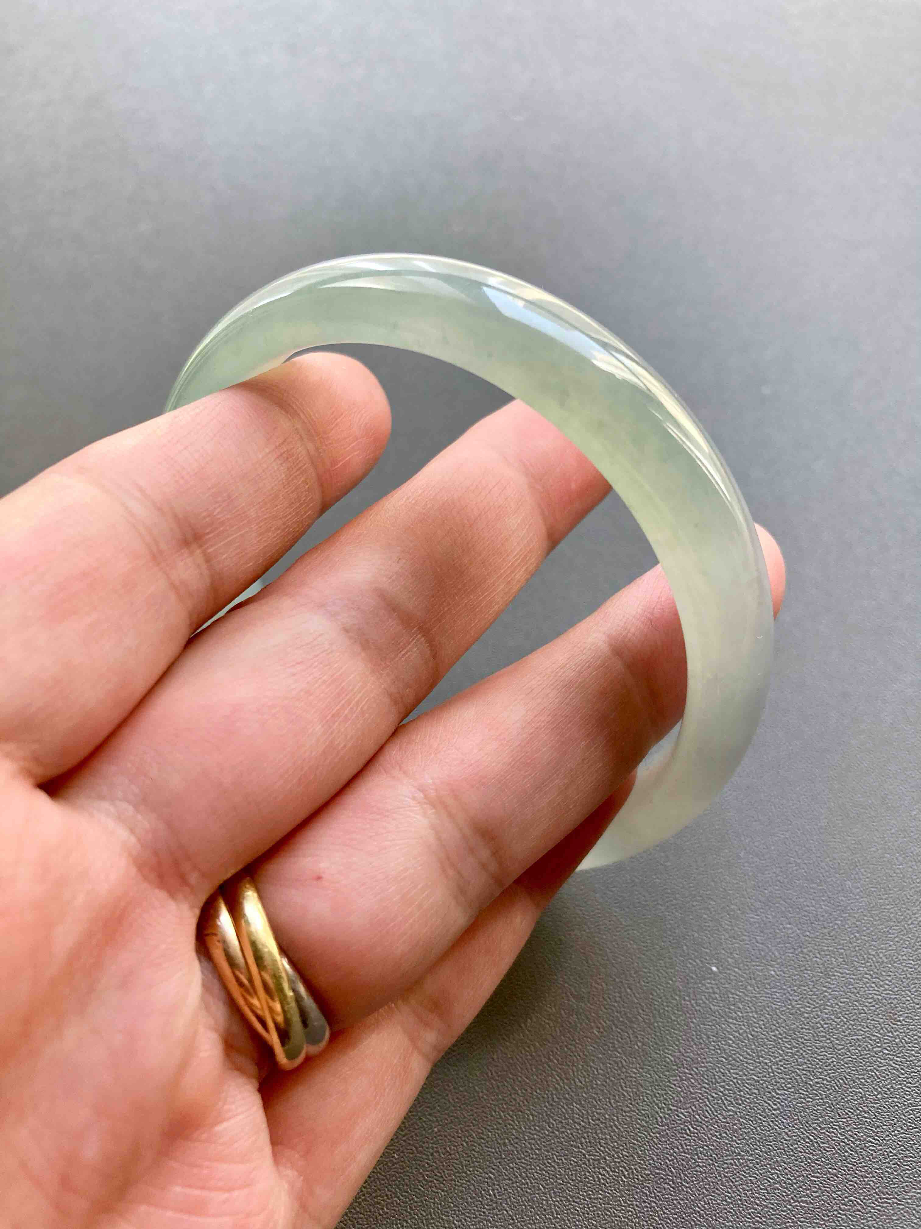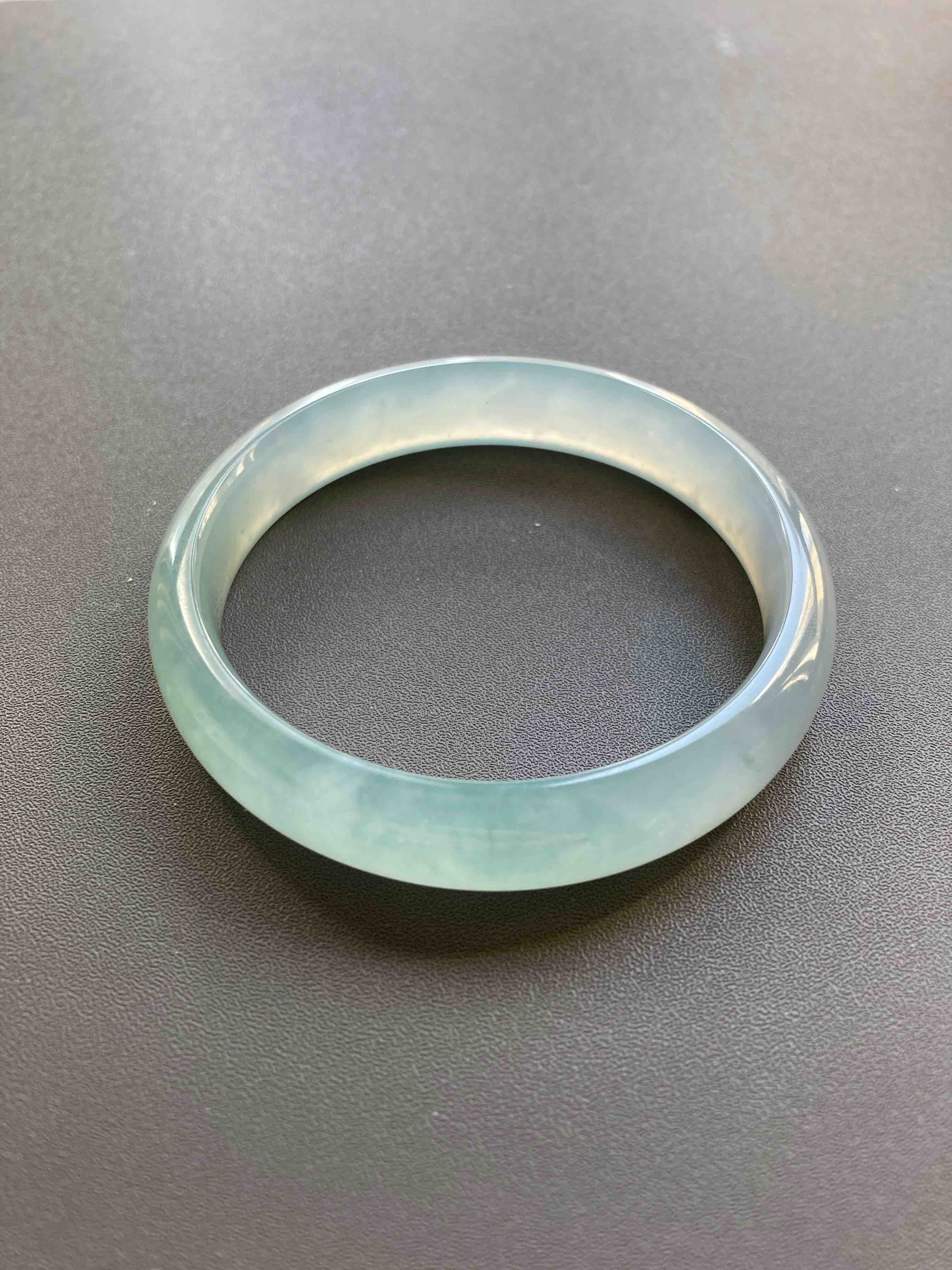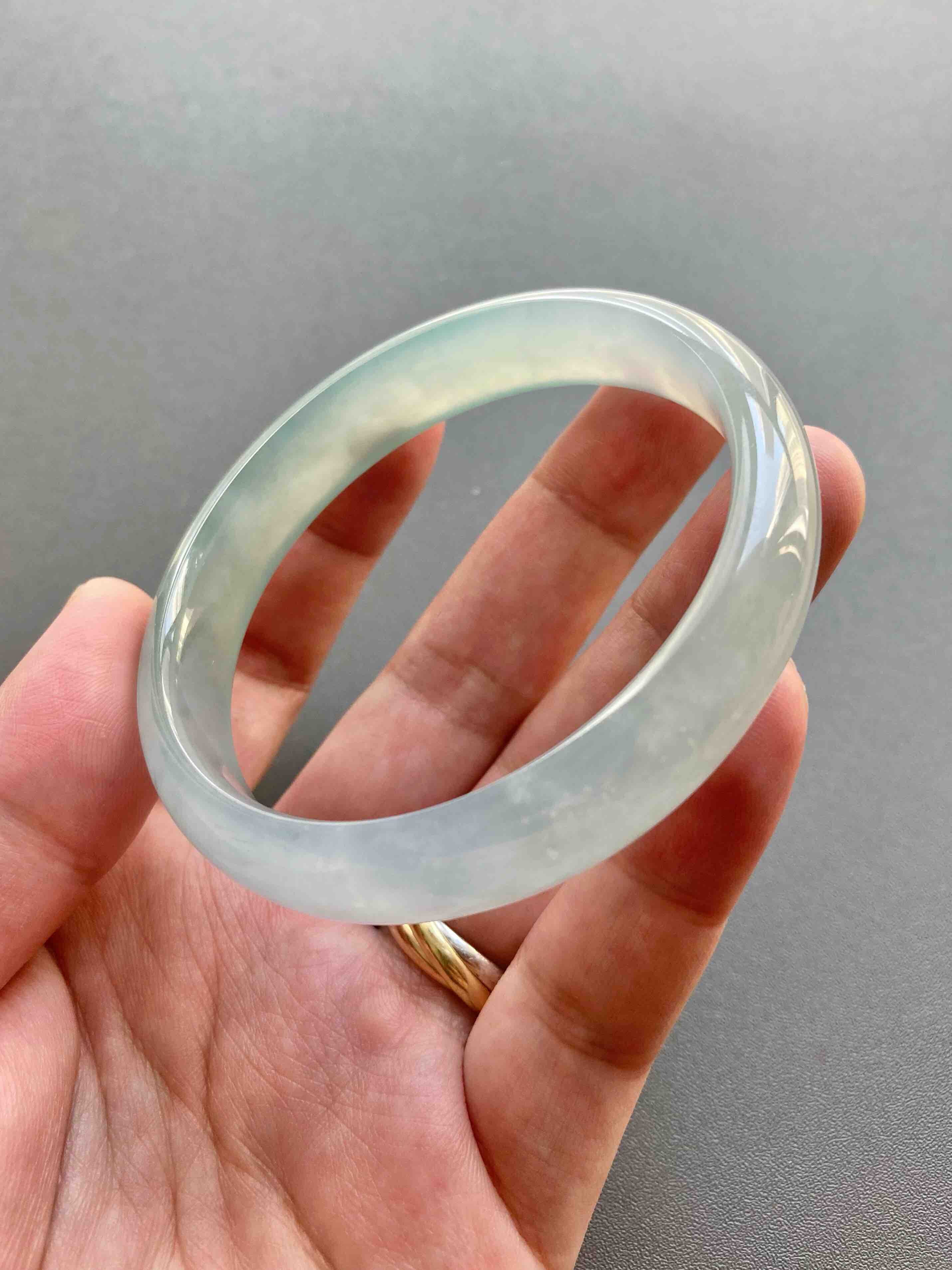 种水尤物,大圈口的福利。实在漂亮,冰种起胶的翡翠手镯,特清纯的质感,晶莹剔透,难得的是内径58,宽12.4,厚7.1mm,适合手寸57到59佩戴,以后要六位数的东西,现在早拿下,这才是眼光