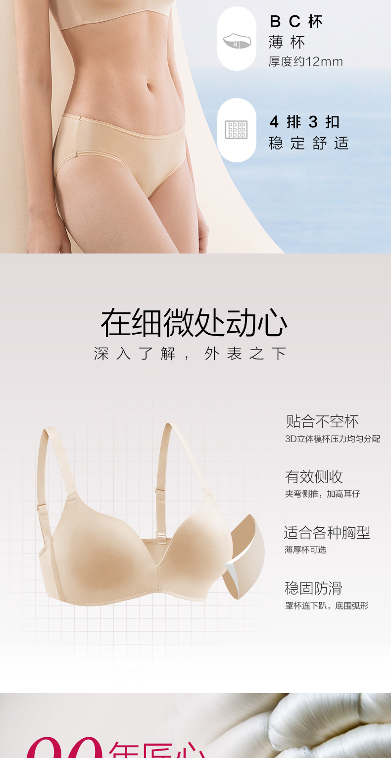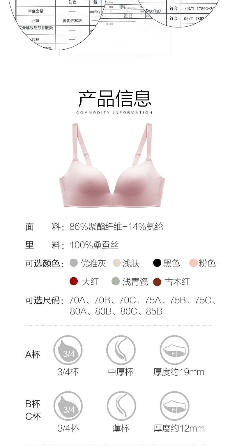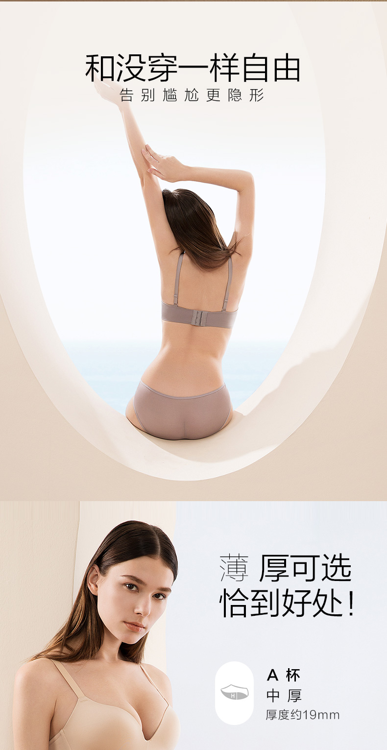 金三塔真丝无痕内衣女聚拢无钢圈文胸薄款性感小胸美背上托胸罩(限价款) NZF7A306