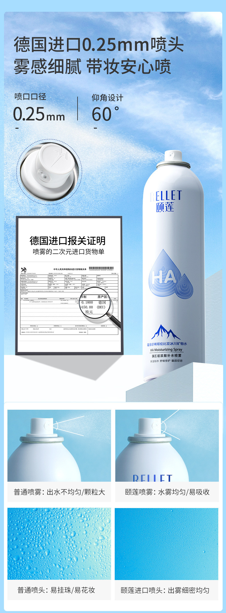 【补水喷雾买1送1,300ml+100ml】颐莲玻尿酸 补水喷雾 女舒缓保湿爽肤水化妆水护肤水定妆 美妆个护
