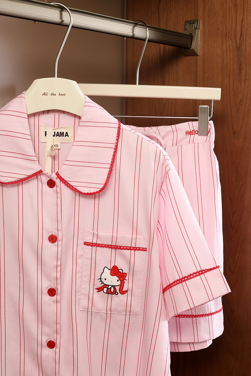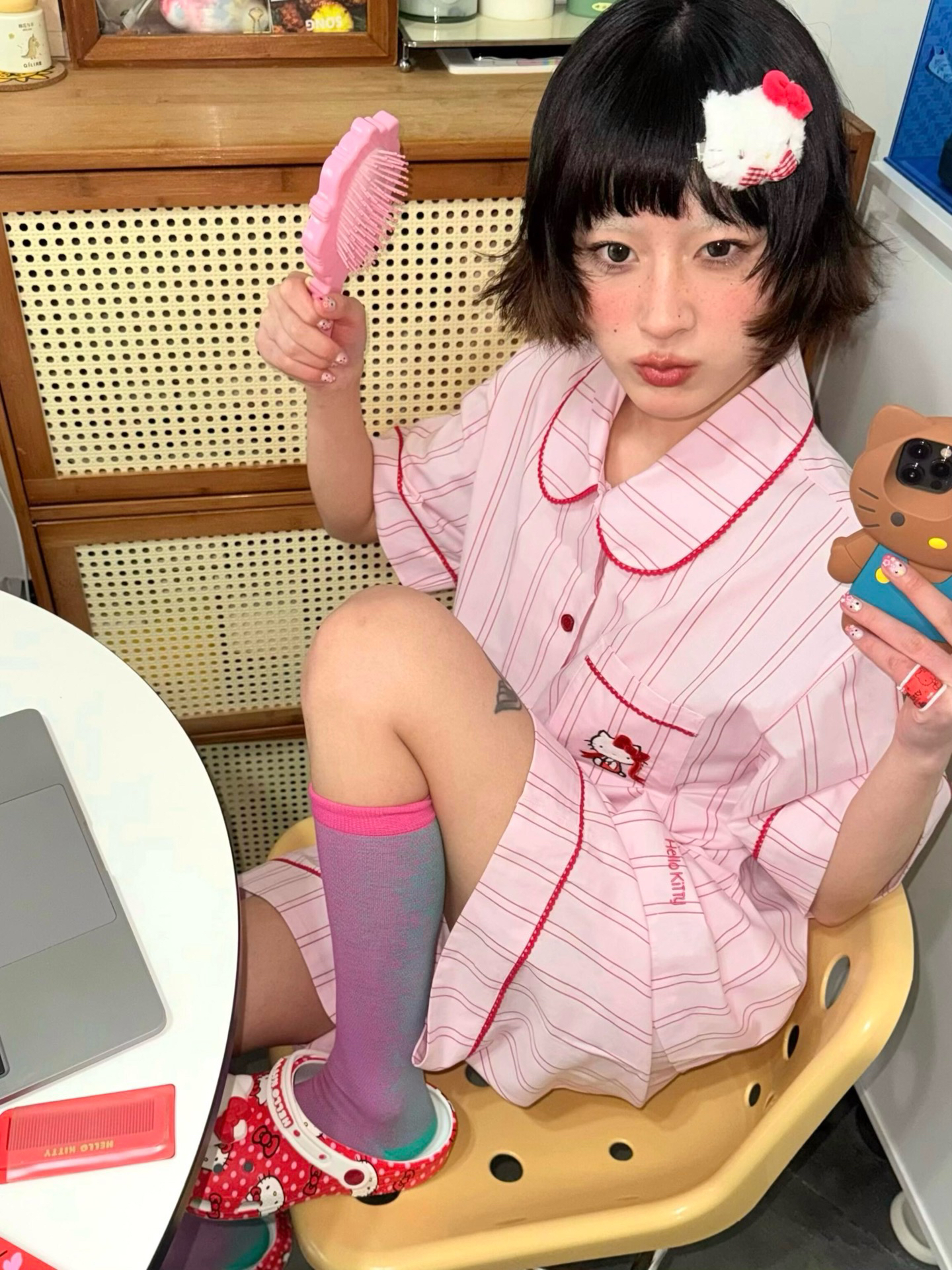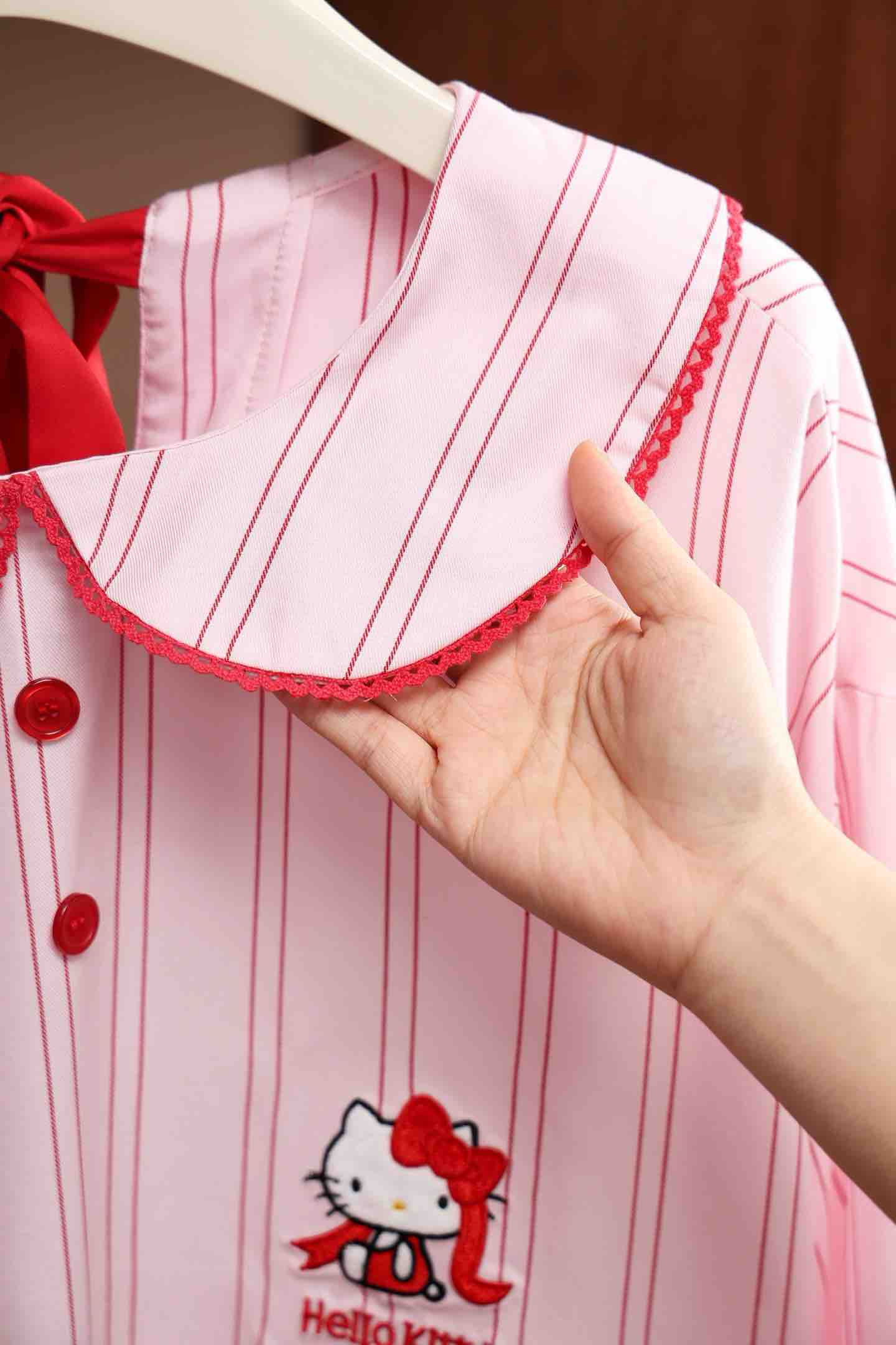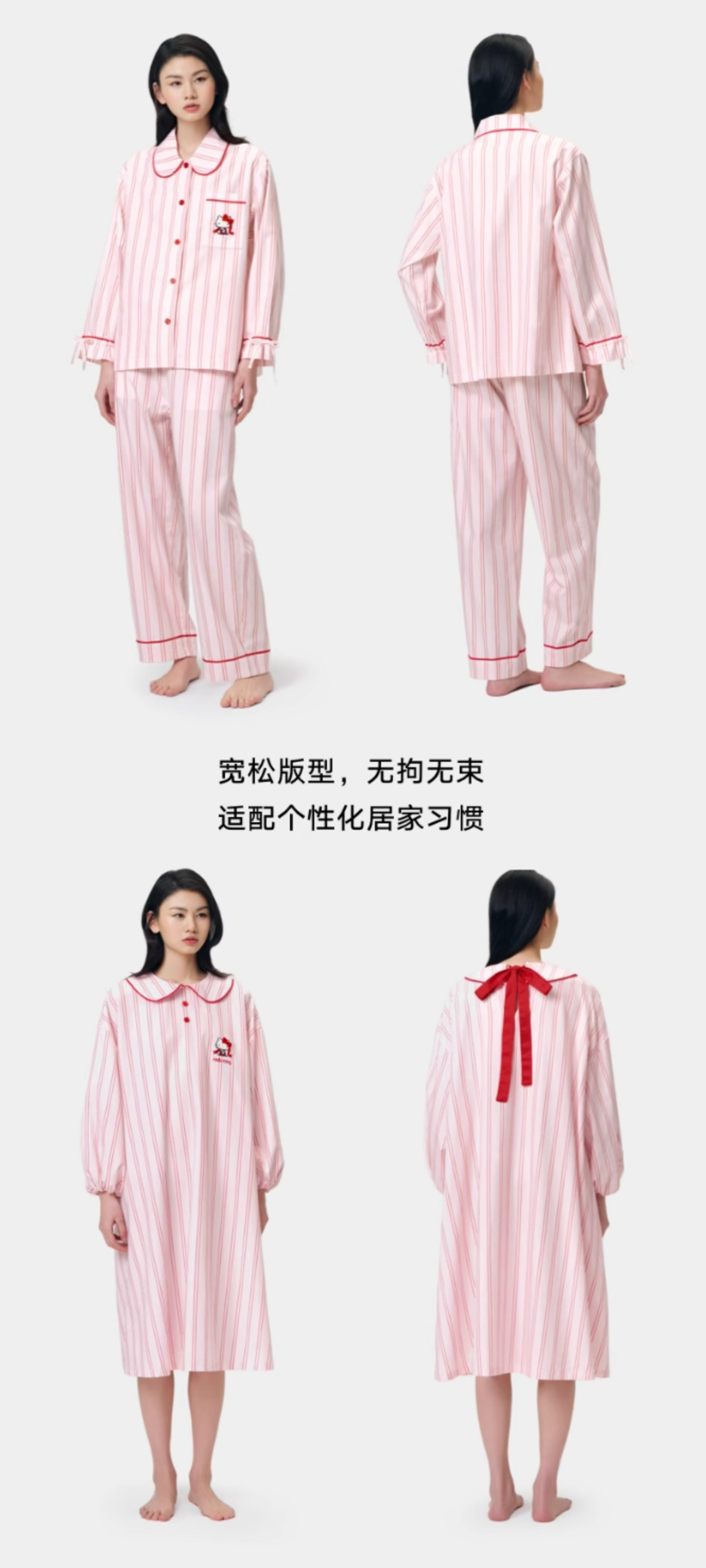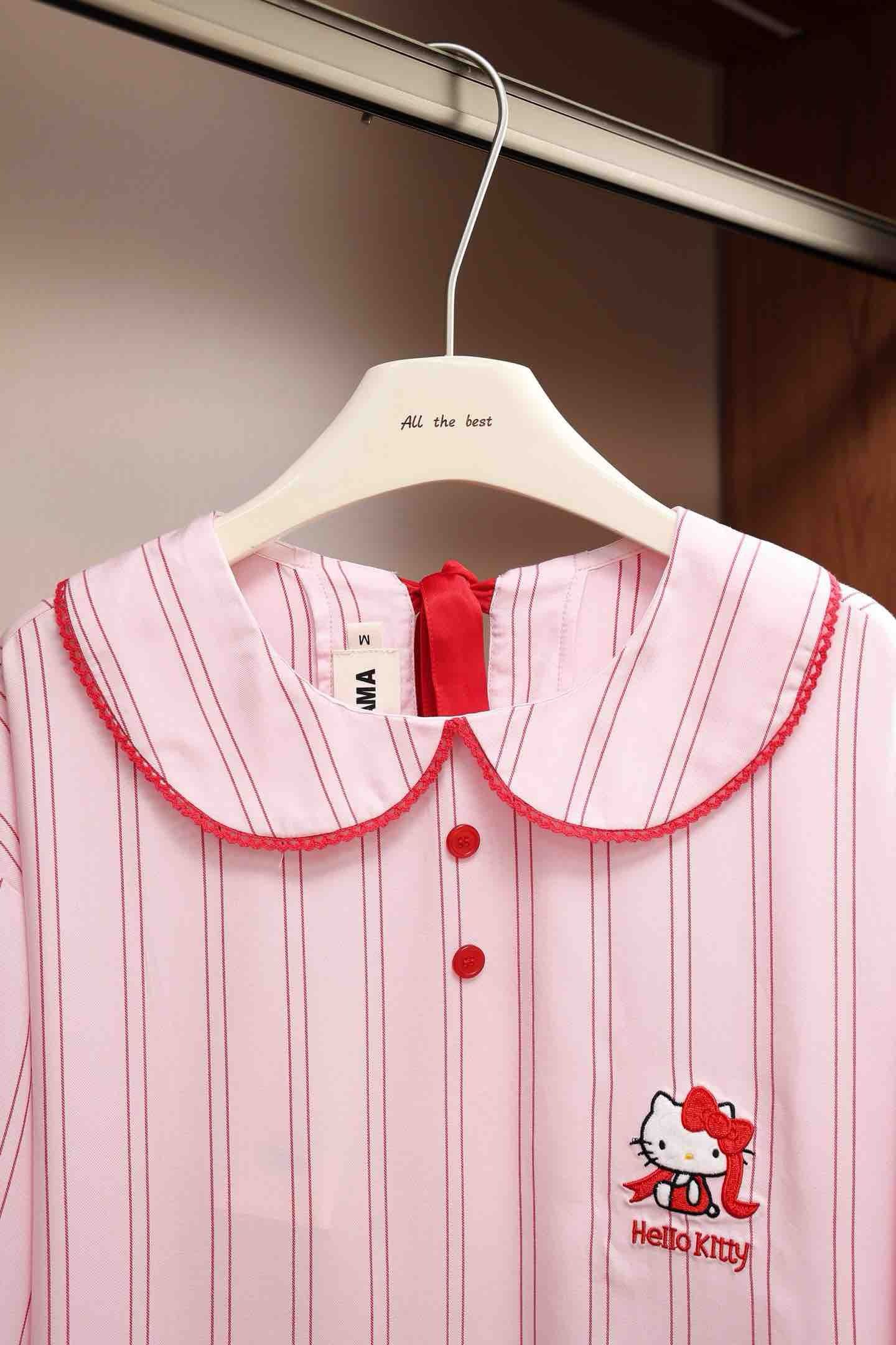 樱花粉主色调搭配Kitty蝴蝶结元素,天丝棉夏天穿真是亲肤又舒服!