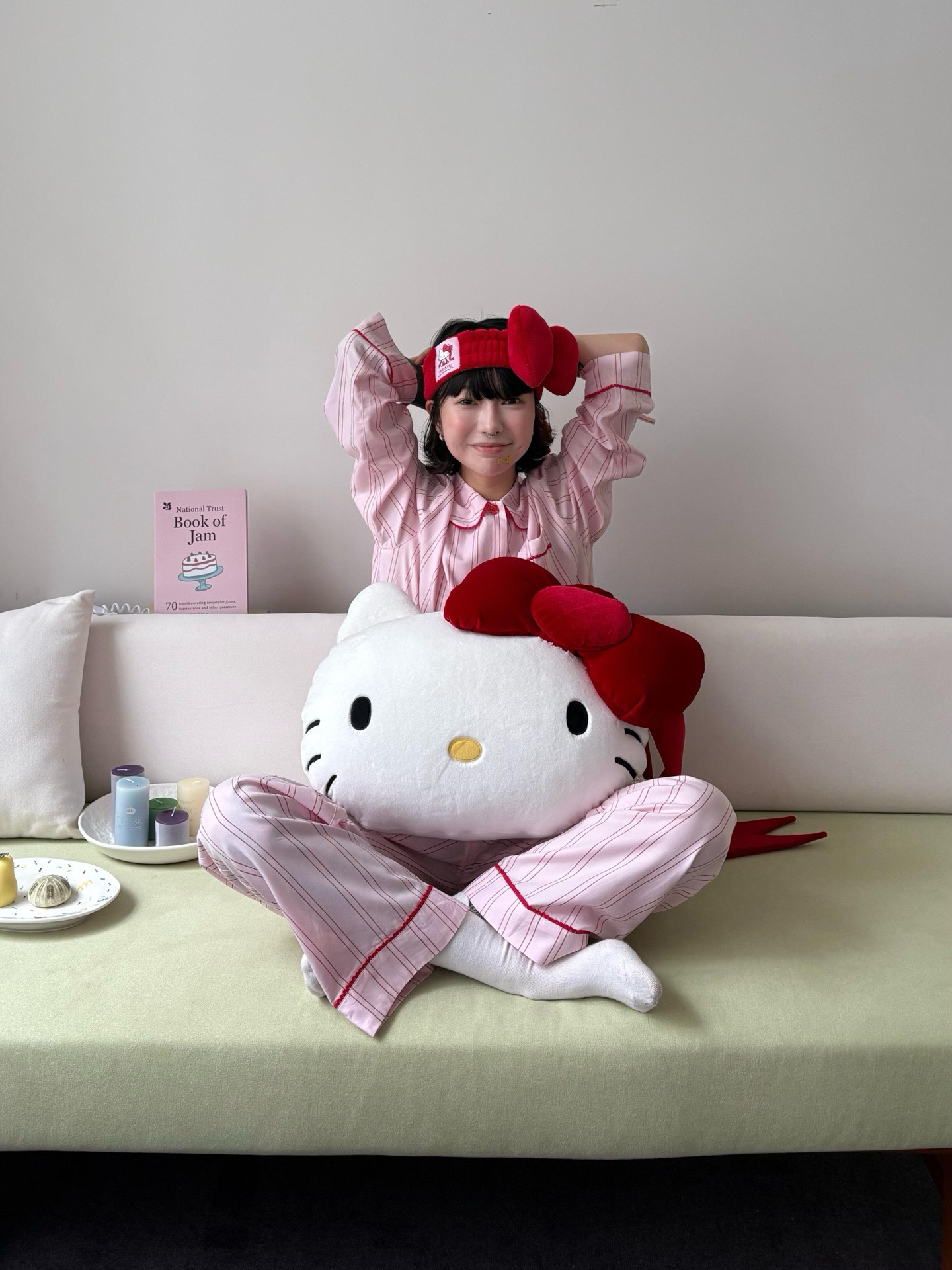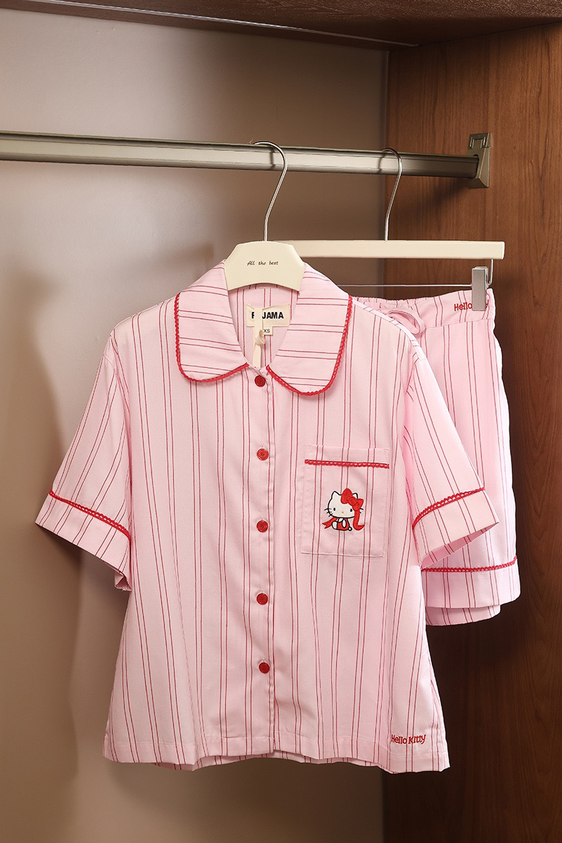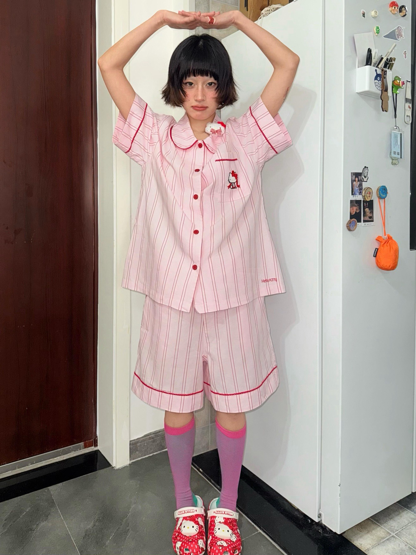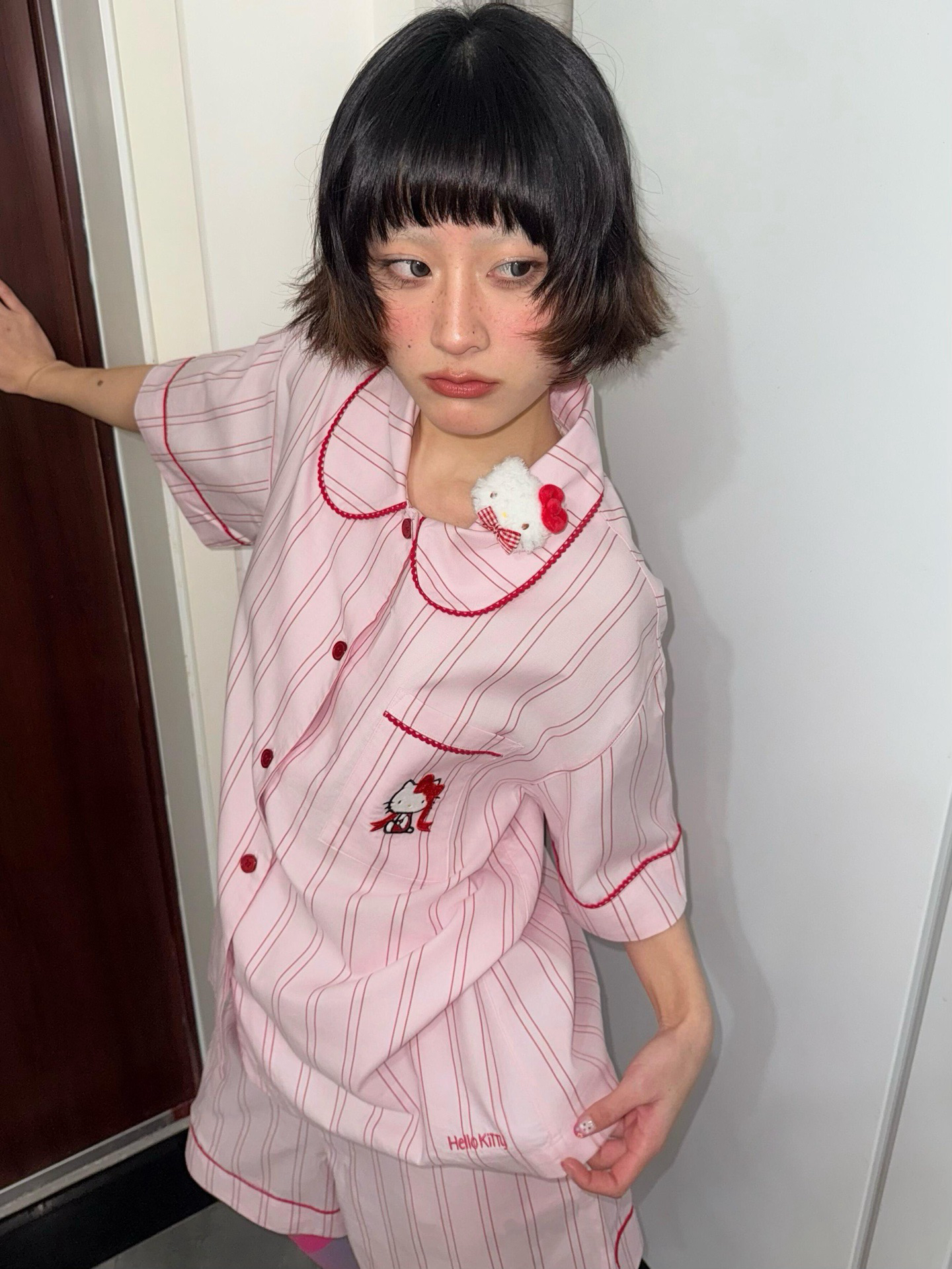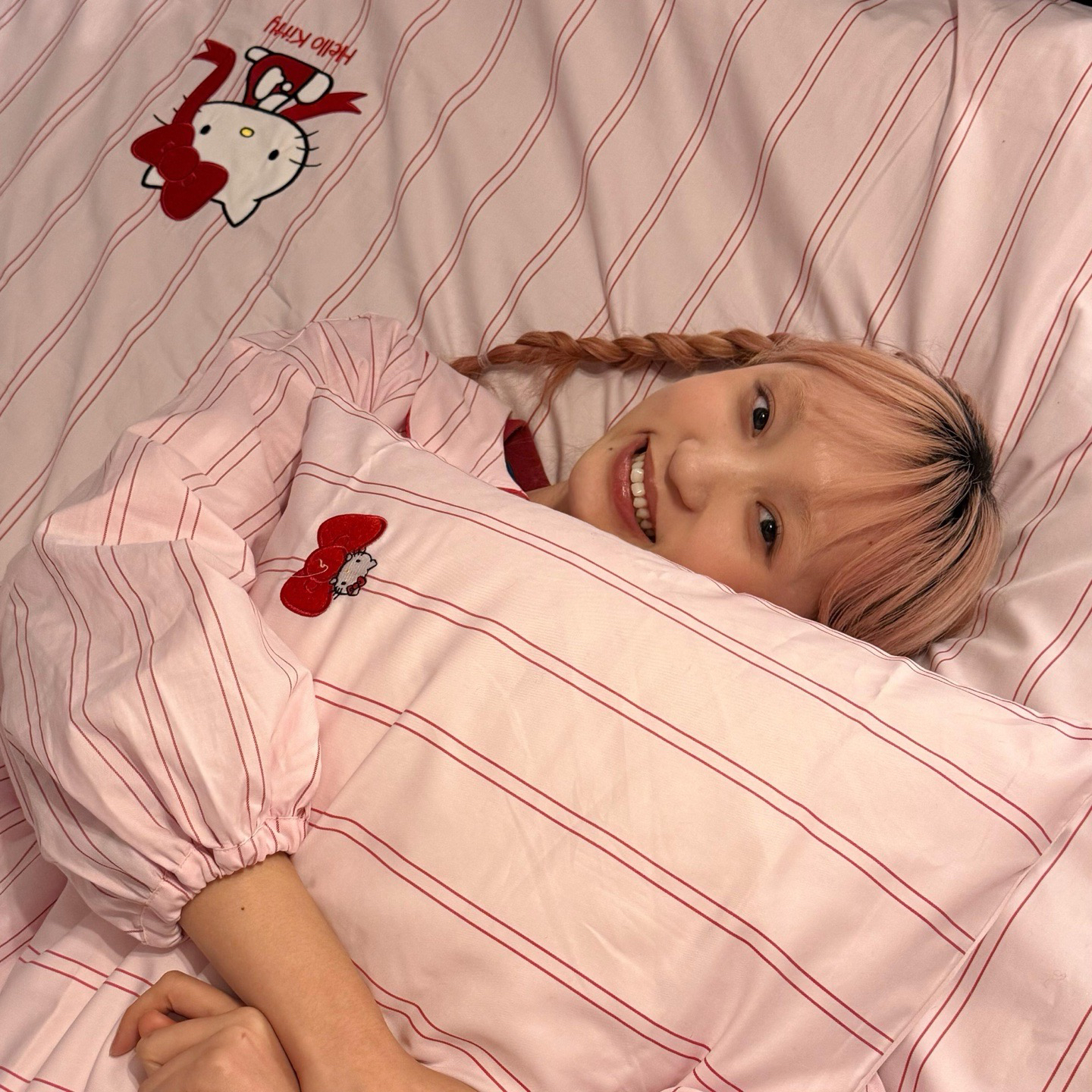 樱花粉主色调搭配Kitty蝴蝶结元素,天丝棉夏天穿真是亲肤又舒服!