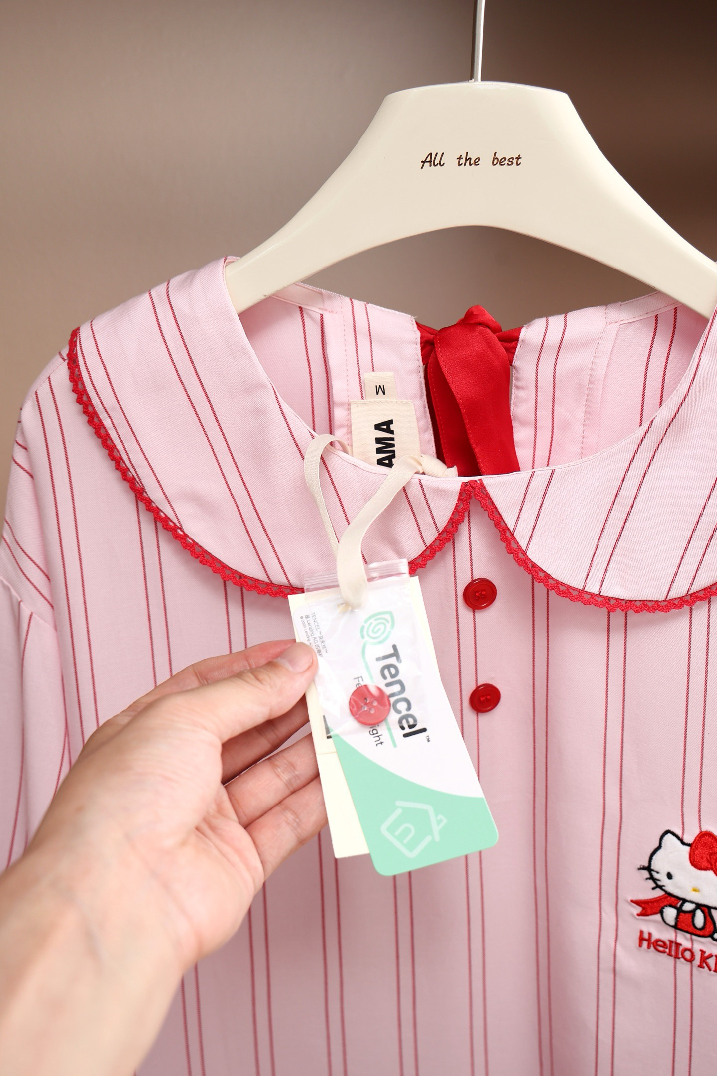 官网400+ 莱赛尔天丝棉女士家居服 浪漫粉色HElloKitty超柔软丝滑睡裙 短袖套装长袖长裤睡衣