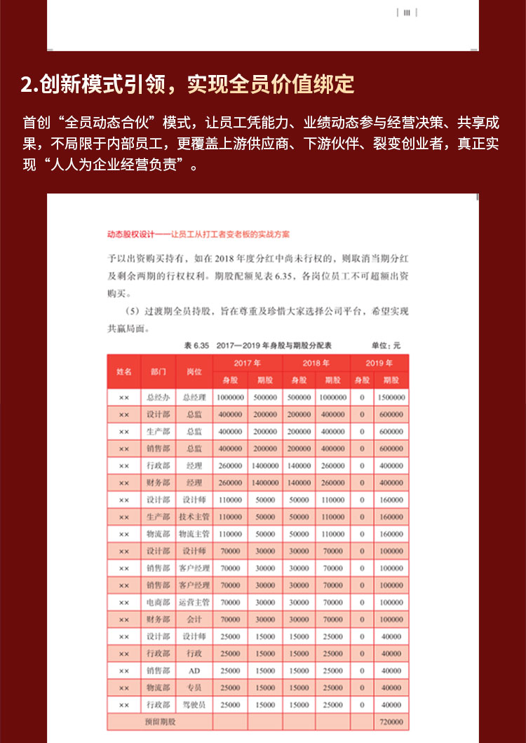 | 刘育良匠合咨询董事长中欧国际工商学院EMBA动态合伙股权设计专家多家标杆公司HR顾问深耕咨询行业18年我们不做海鸥盘旋式的咨询,做的是落地生根的咨询,从访谈调研到宣导授予,从经营分析到分红表彰,持续陪跑,打造合伙咨询闭环,帮助客户实现凤凰涅槃般的改变! 有感于培训的宽度和力度,更需要咨询的温度和深度,发心和企业同呼吸共命运。聚焦;组织激活的合伙咨询体系,打造专业主义的咨询师团队,捍卫客户价值。 作者先后培训辅导过的企业有阿里巴巴、中投证券、LG集团、舜天集团、开元集团等上市公司。咨询陪跑的企业有品超汽配外贸、高特瑞汽配、华茂外贸、富淼皮具、德明外贸等众多企业。 |