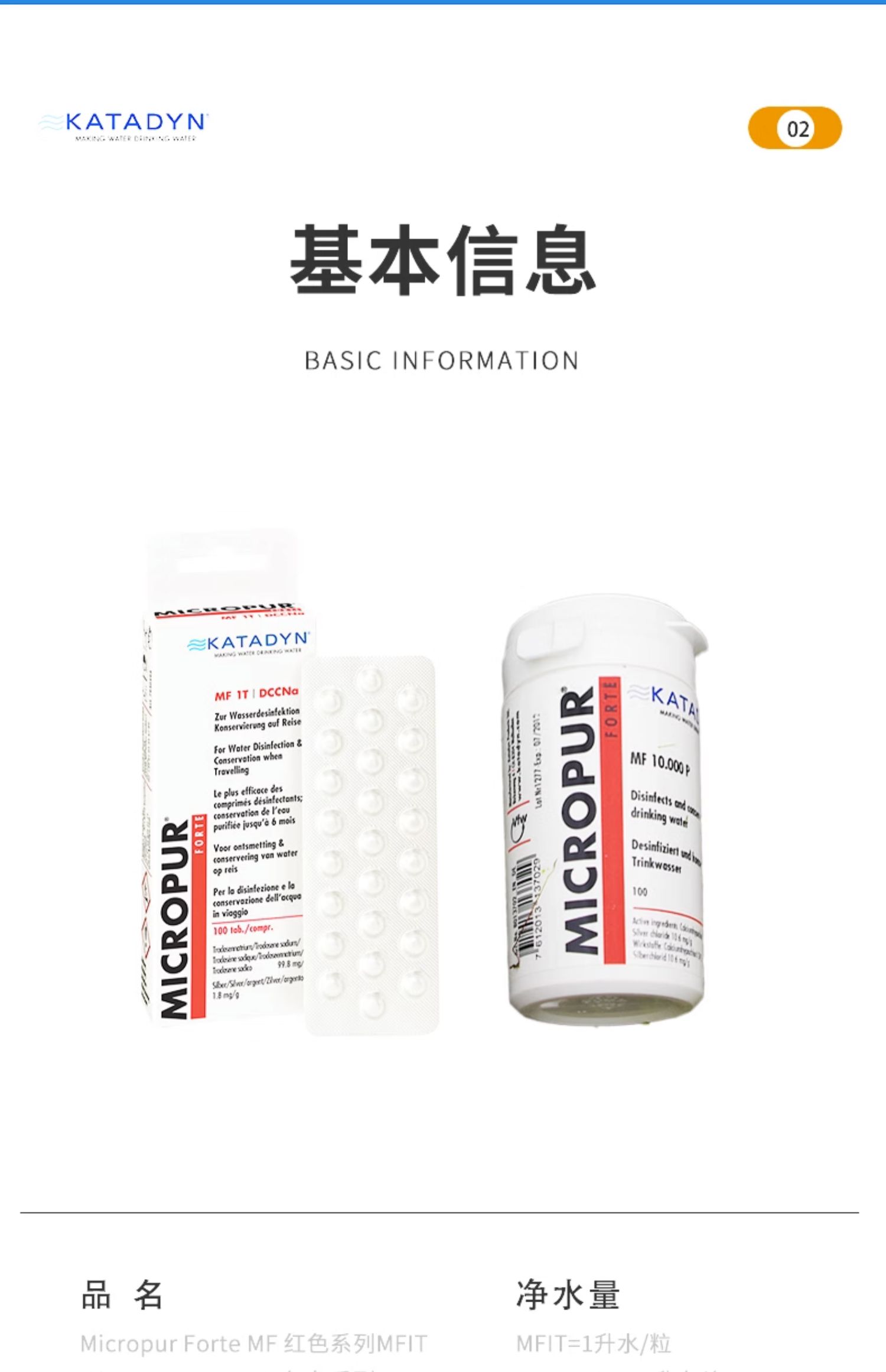 康迪 野外用 净水片 净水粉(Katadyn Micropure Fort IT)