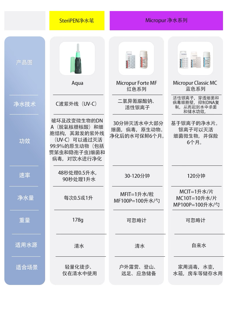 蓝色款:净水速率慢,但无味,保质期10年