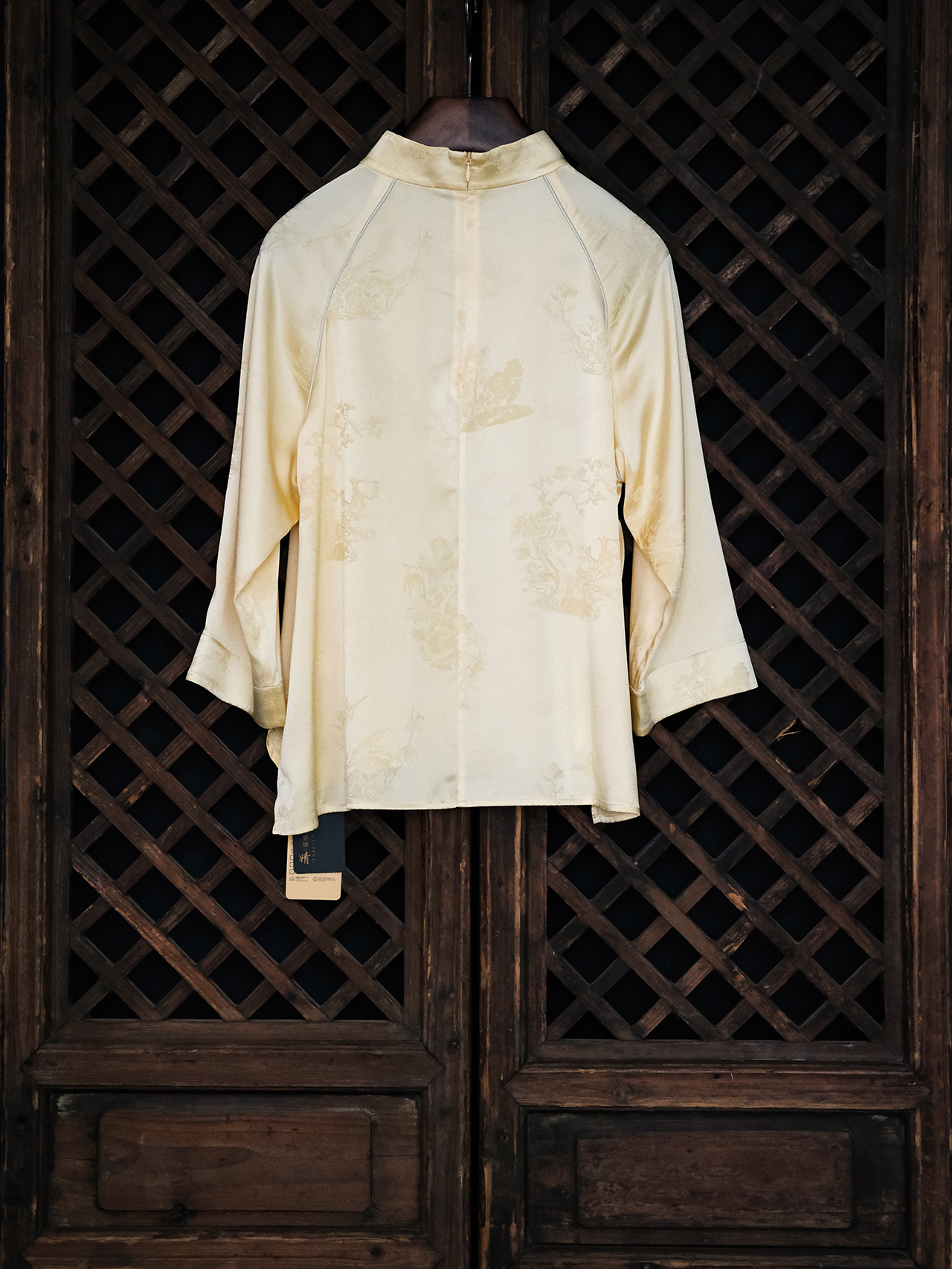 盛唐牡丹| 珍珠白真丝竹子纹偏襟上衣