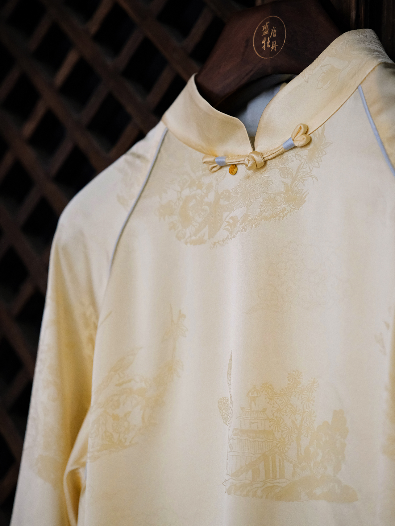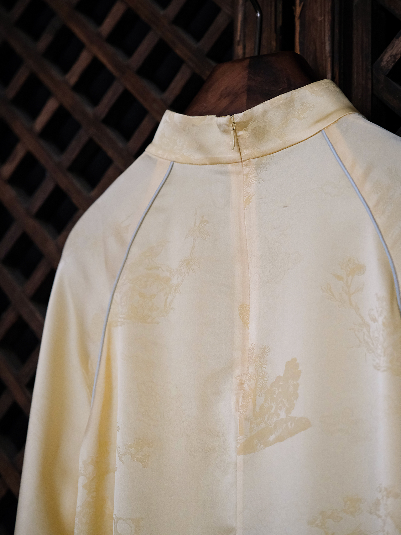 盛唐婧 |真丝缎提花折枝牡丹外套-明黄