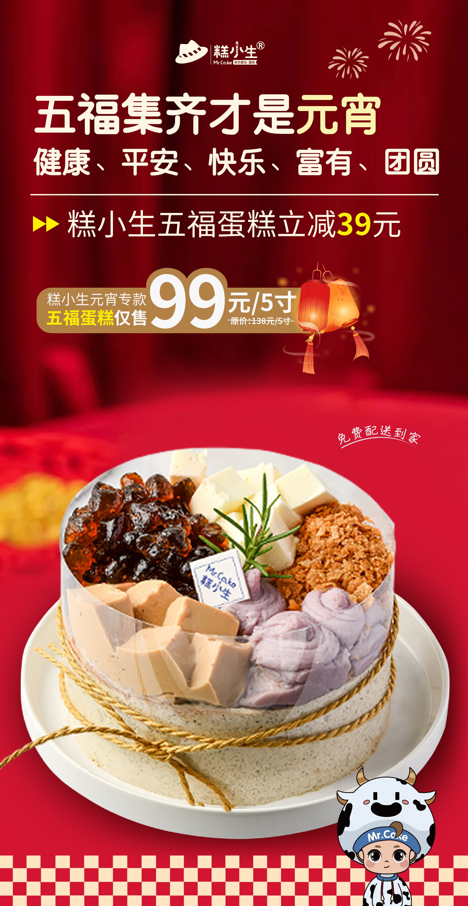3、99元五福蛋糕为元宵节专款,预订配送日期仅限2月5日