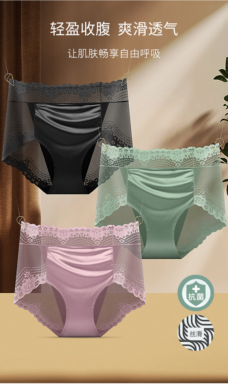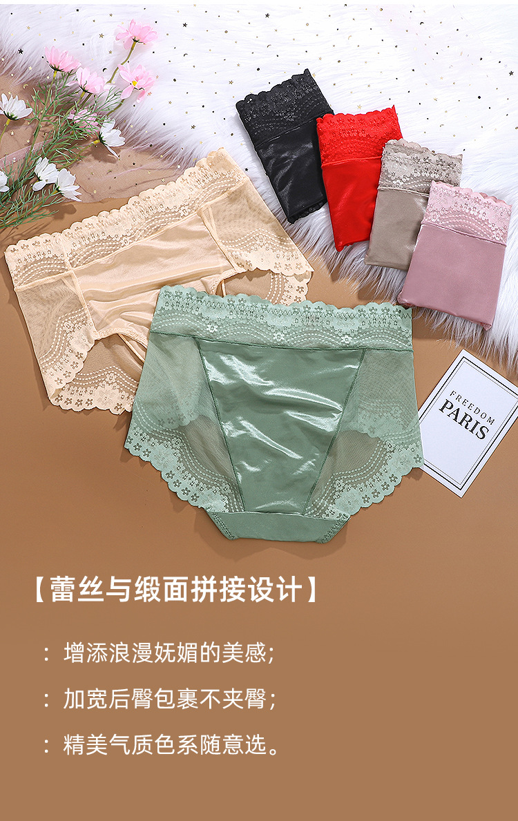 【舒适又时尚❗️云感蕾丝内裤】柔滑面料贴合身形,自在无痕不尴尬,弹性腰头与裤身,不松垮不勒肉,舒适蕾丝石墨烯抑jun档少女士三角内裤L