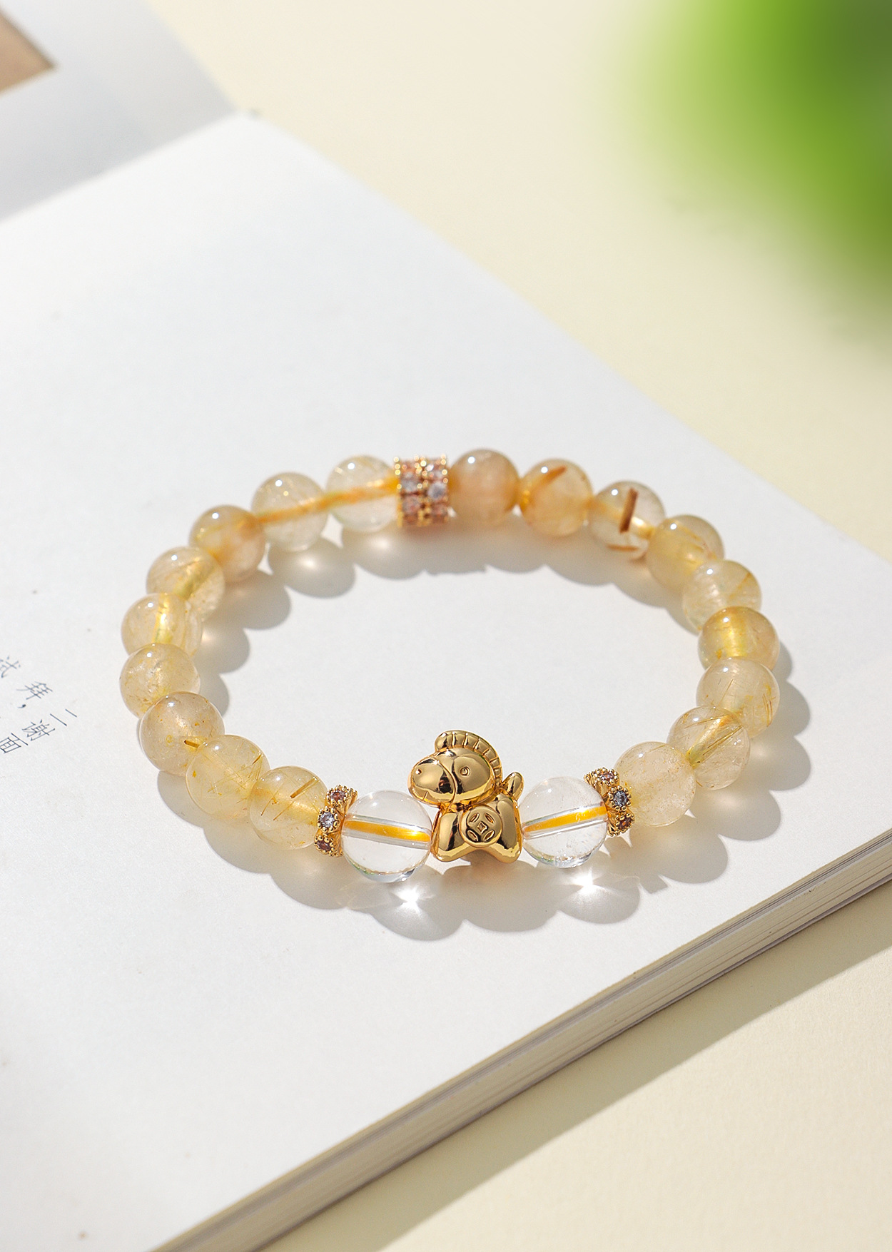 【马年限定❗️纳福串珠水晶手链】吉祥马年,福气满满!金发晶粉水晶小马招女时尚高级感海蓝宝手串天然财手饰品新年礼盒年货礼盒情人节