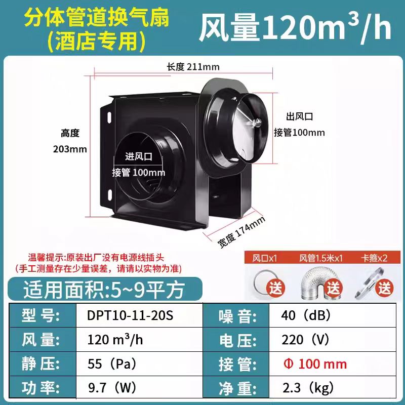 绿岛风DPT10-11-20S分体式管道换气扇风量120m³/h(节能静音型)5-9㎡ 商品代码80038