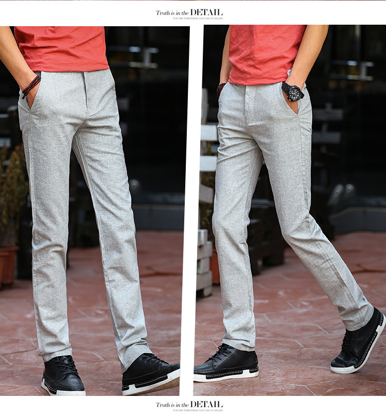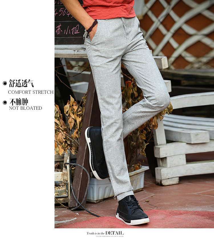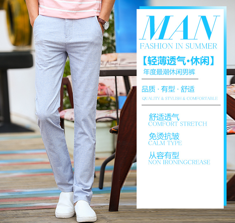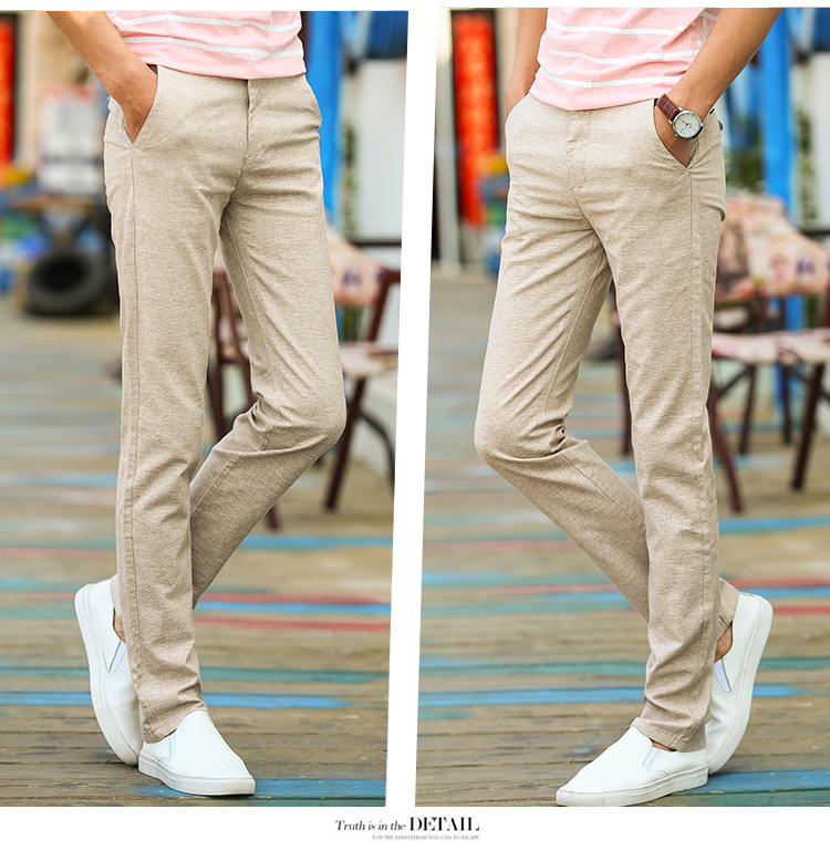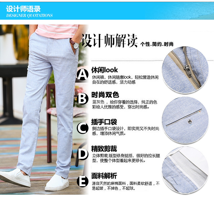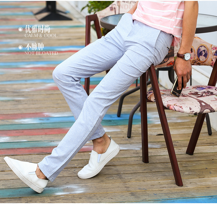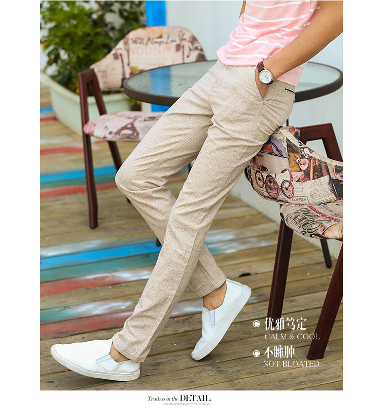 【服饰鞋包】。夏季男士裤子薄款休闲裤男韩版潮流新款修身直筒时尚棉麻裤男
