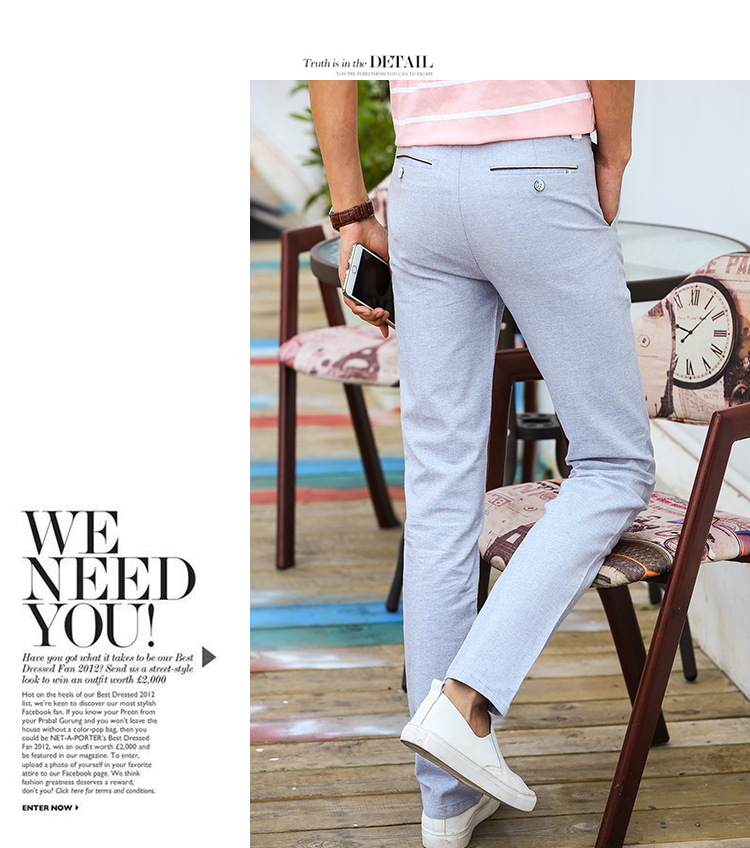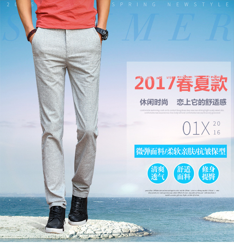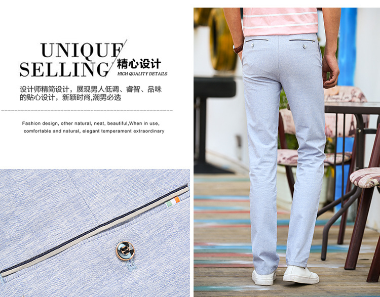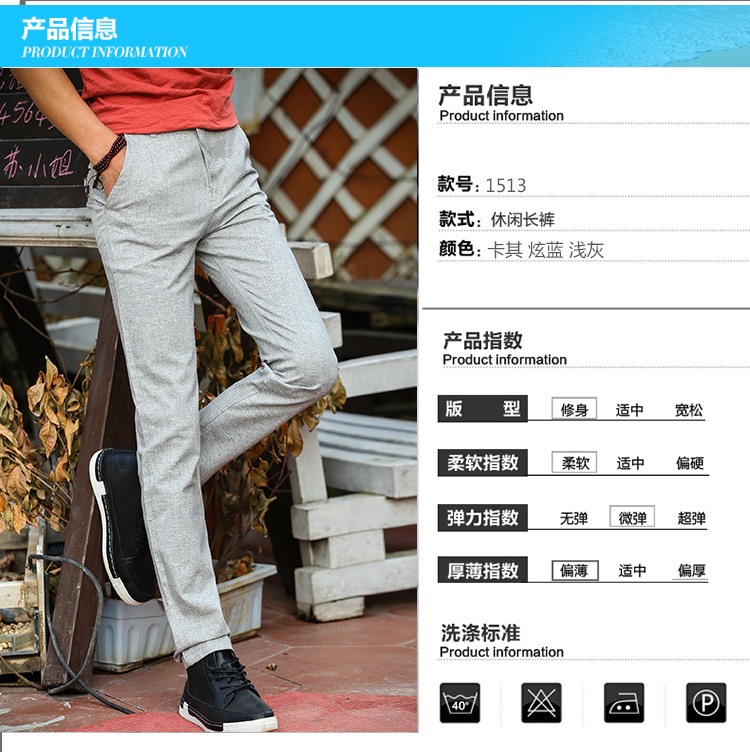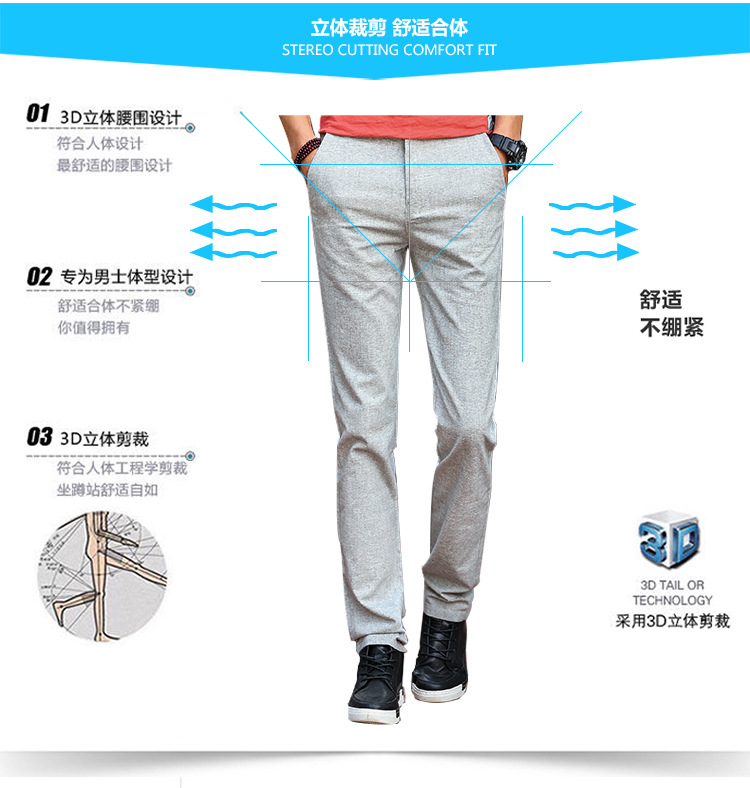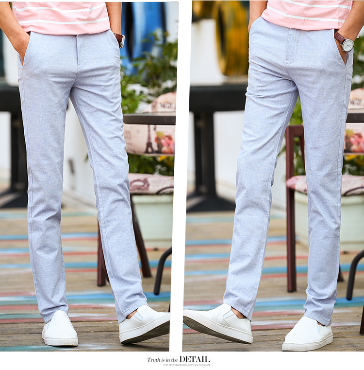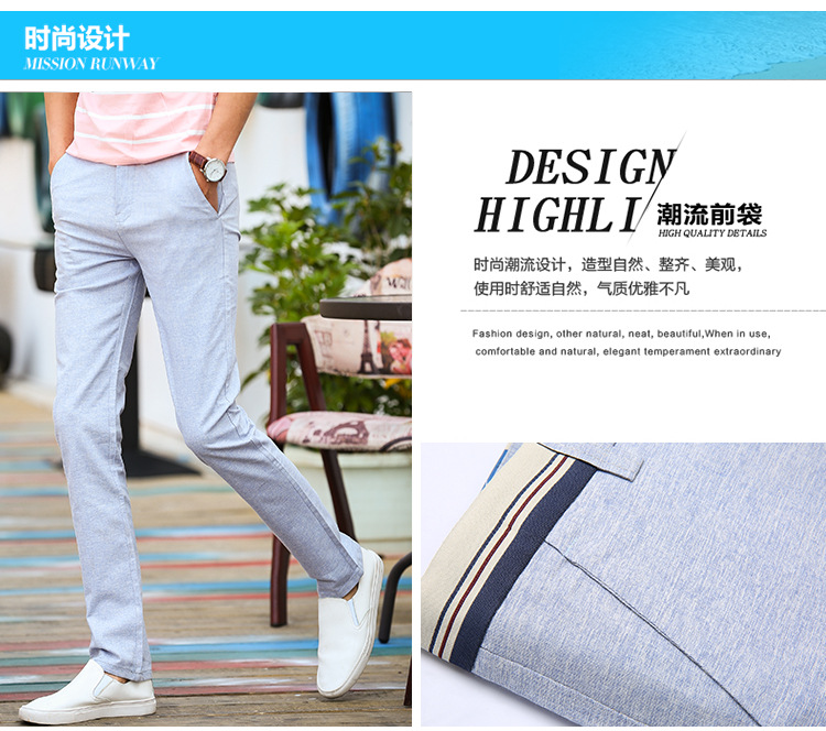 【服饰鞋包】。夏季男士裤子薄款休闲裤男韩版潮流新款修身直筒时尚棉麻裤男