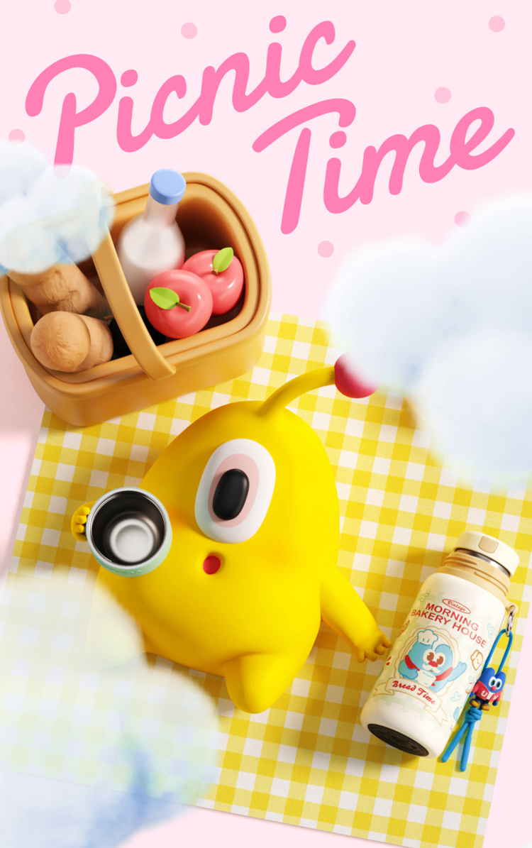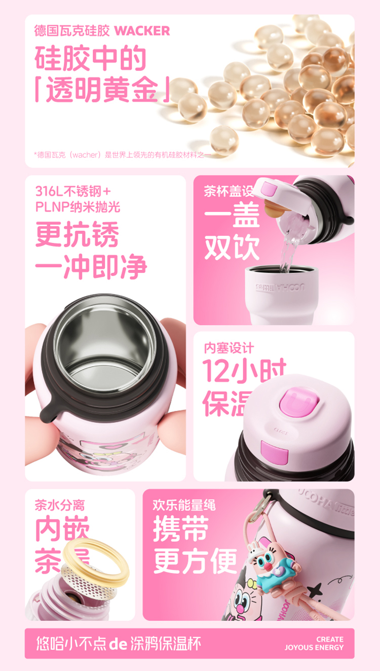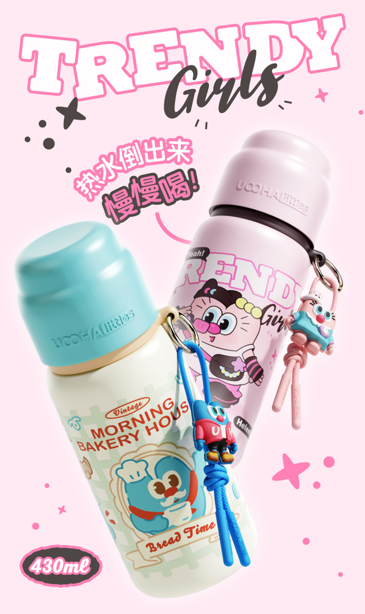 UOOHALITTLES430ml涂鸦保温杯(粉色/黑色/白蓝)