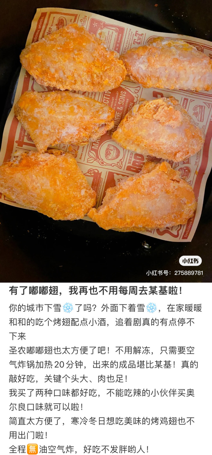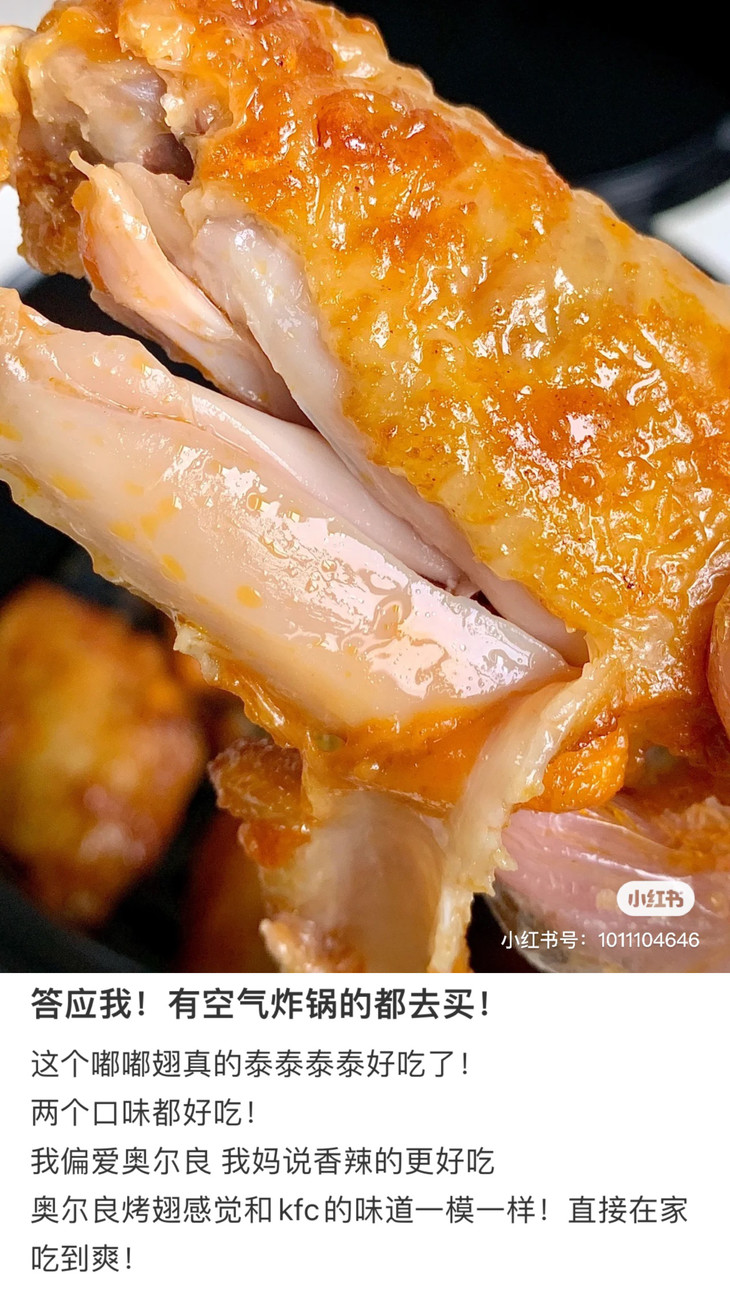 奥尔良就是基基那味了,毕竟圣农就是供应商嘛,就不多说,我是没想到麻辣鲜香那么上头,麻麻辣辣根本停不下来,鸡翅鲜嫩多汁,肉一点都不柴,一口下去直接爆汁,我愿称之为速冻鸡翅届天花板!不用清洗、腌制、解冻,也不用加额外的油,比外卖还快,价格也不贵,可以囤点在冰箱,随时解馋!