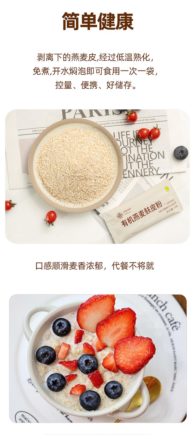 【邮政/圆通/极兔快递】有机燕麦麸皮粉|健康营养早餐代餐,低GI粗粮主食,高膳食纤维,高蛋白,饱腹感强,免煮冲调即食,香糯Q弹,20g*24包/袋