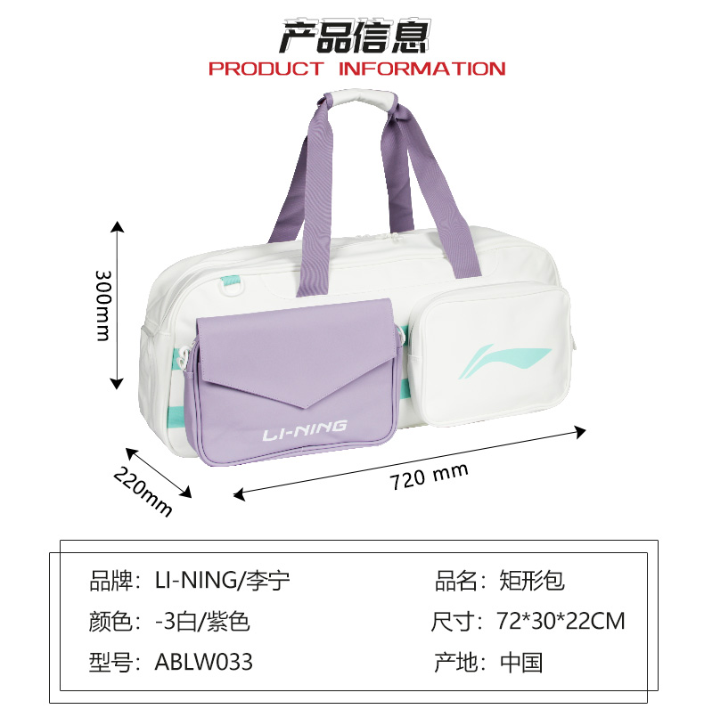 李宁羽毛球包俱乐部团队系列ABLW033独立鞋仓矩形包