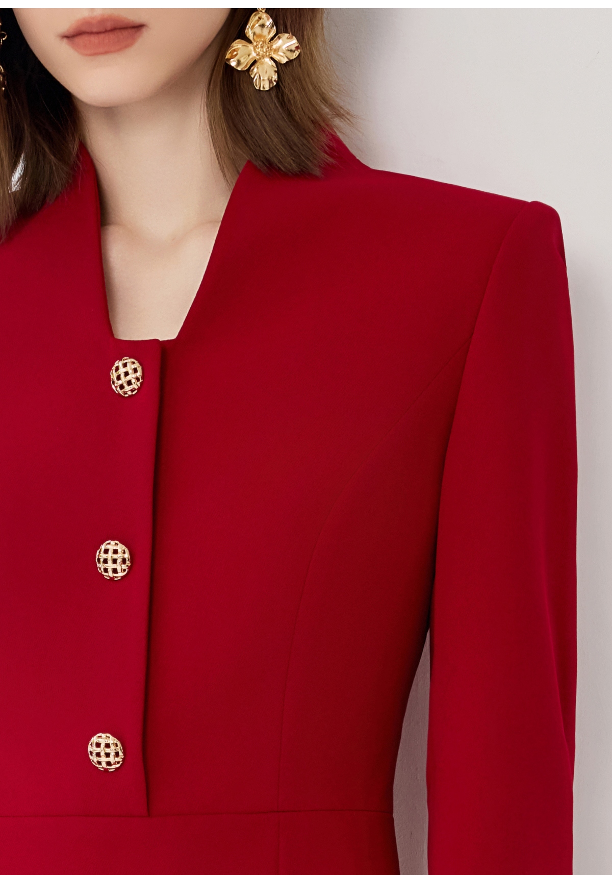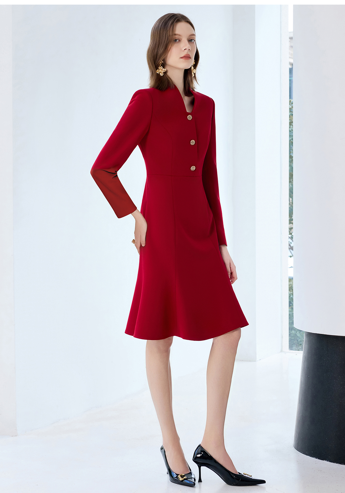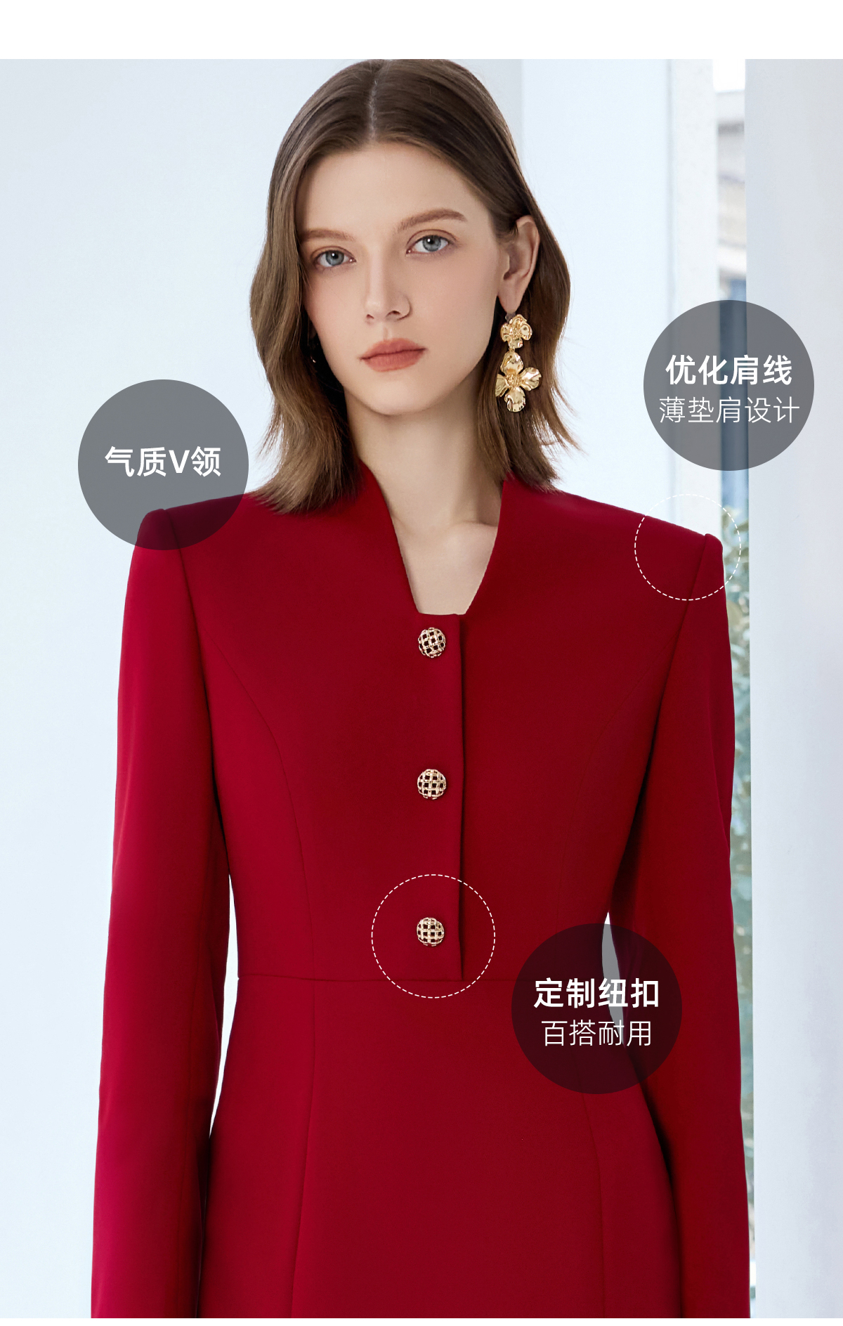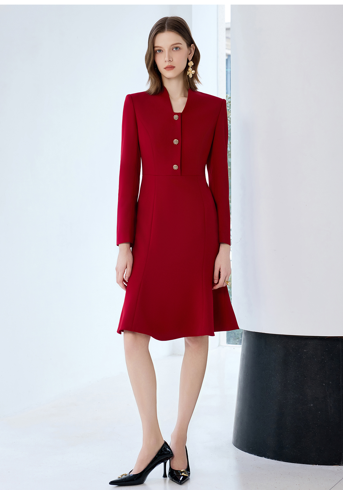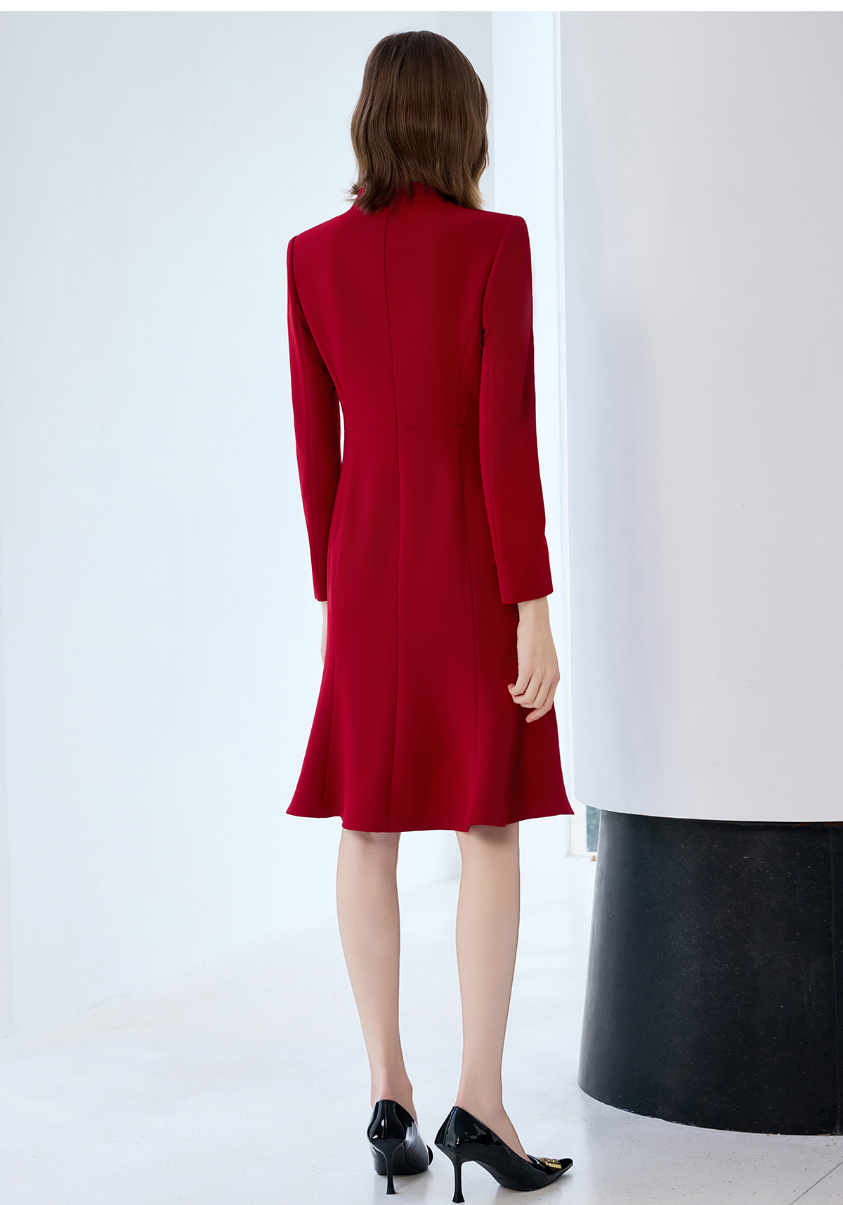 艾尚臣红色连衣裙女轻奢高级感轻熟风鱼尾裙通勤职业主持人西装裙