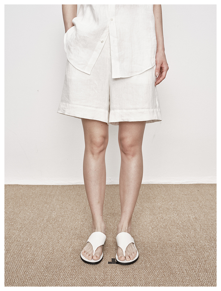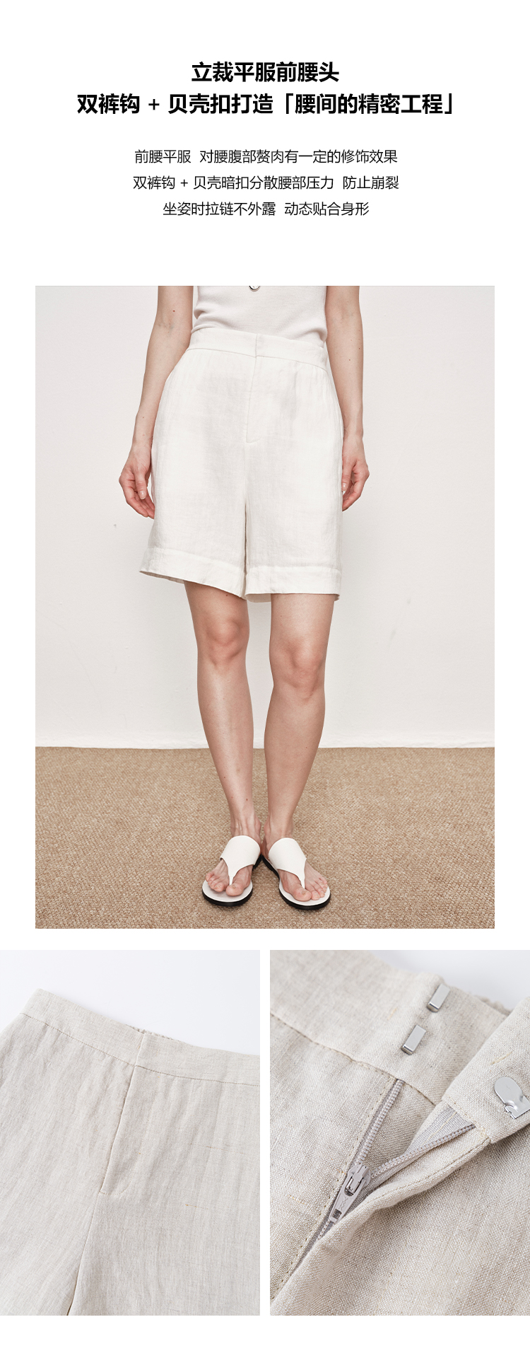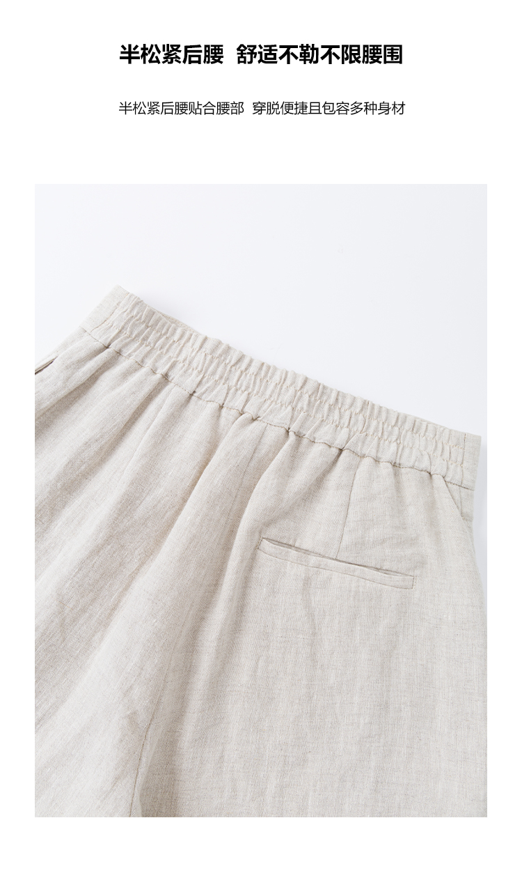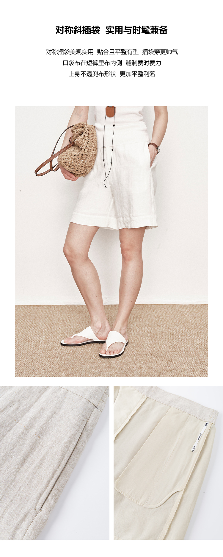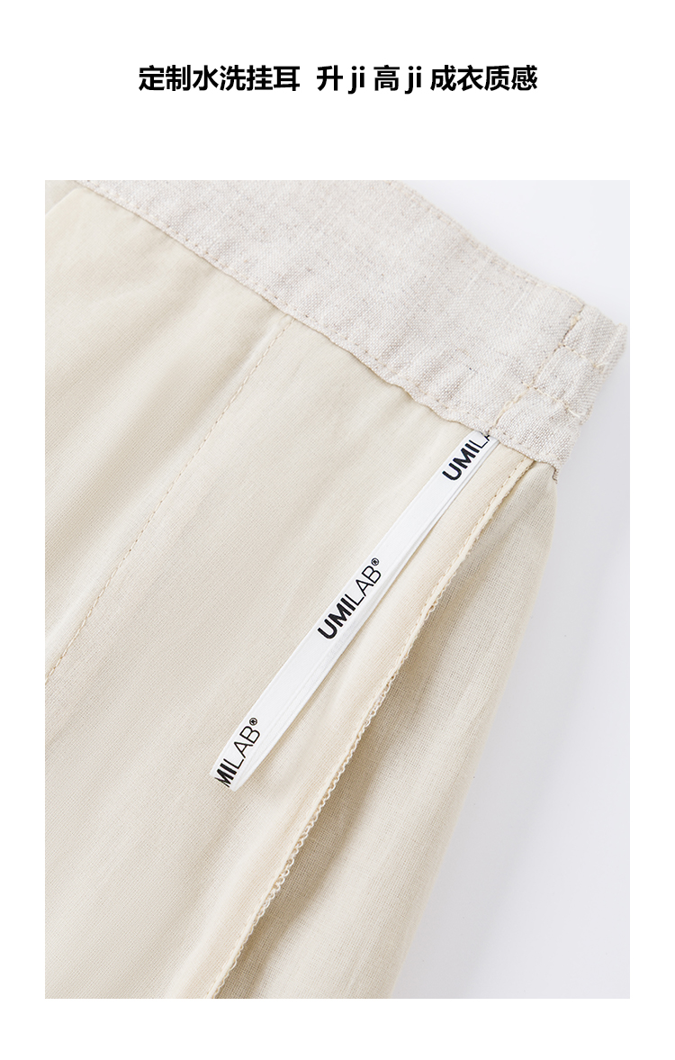 UMILAB|白茶*静奢亚麻系列 100%水洗亚麻 极简半松紧短裤P1270W