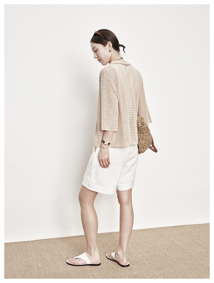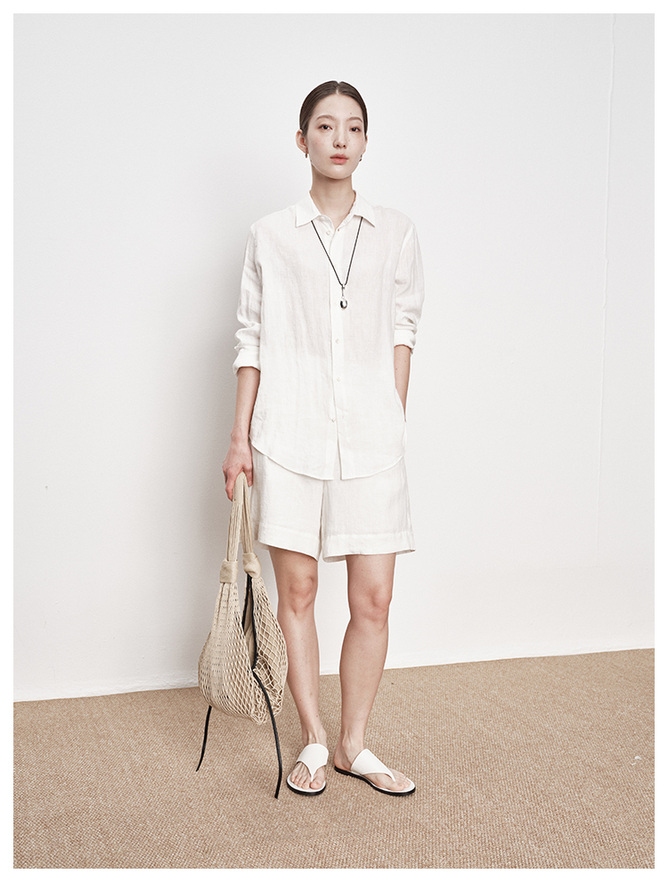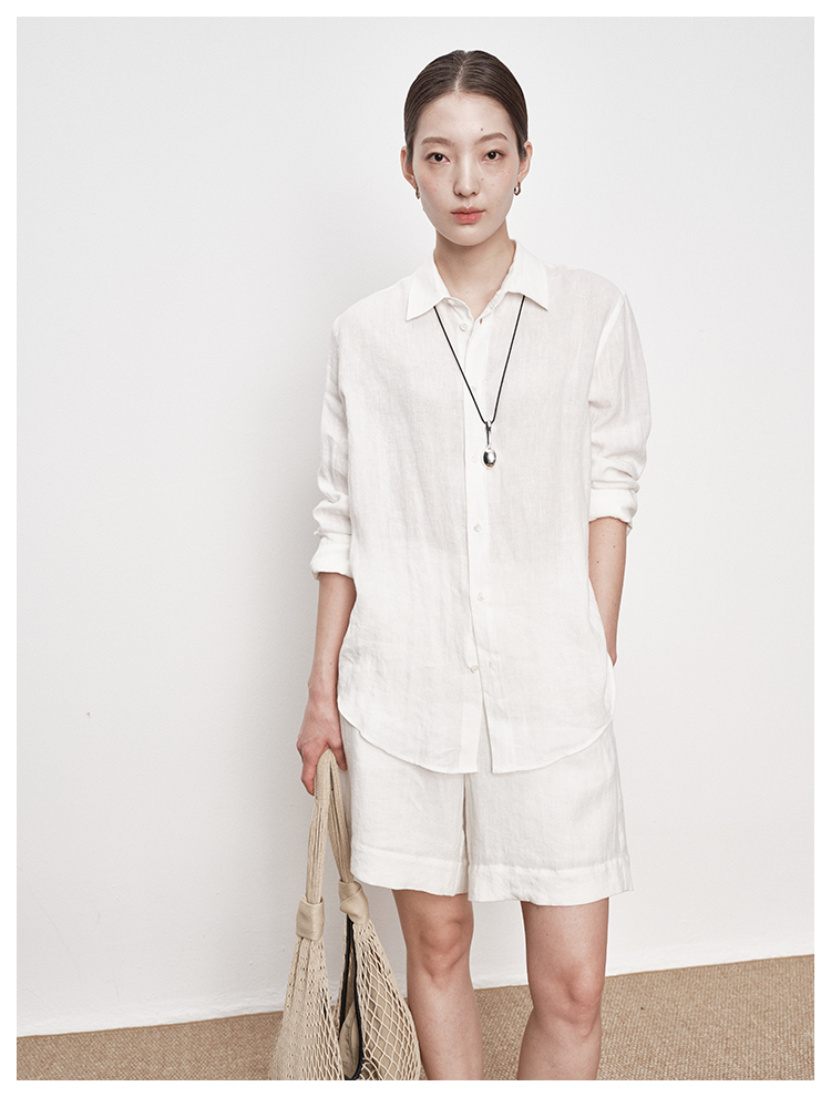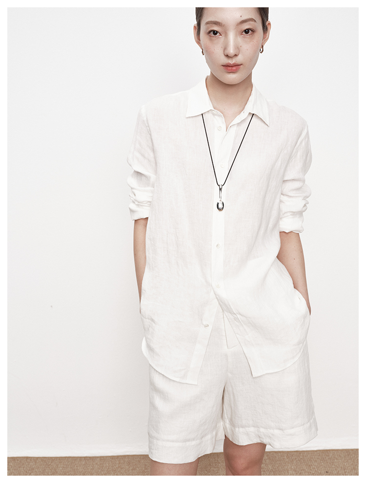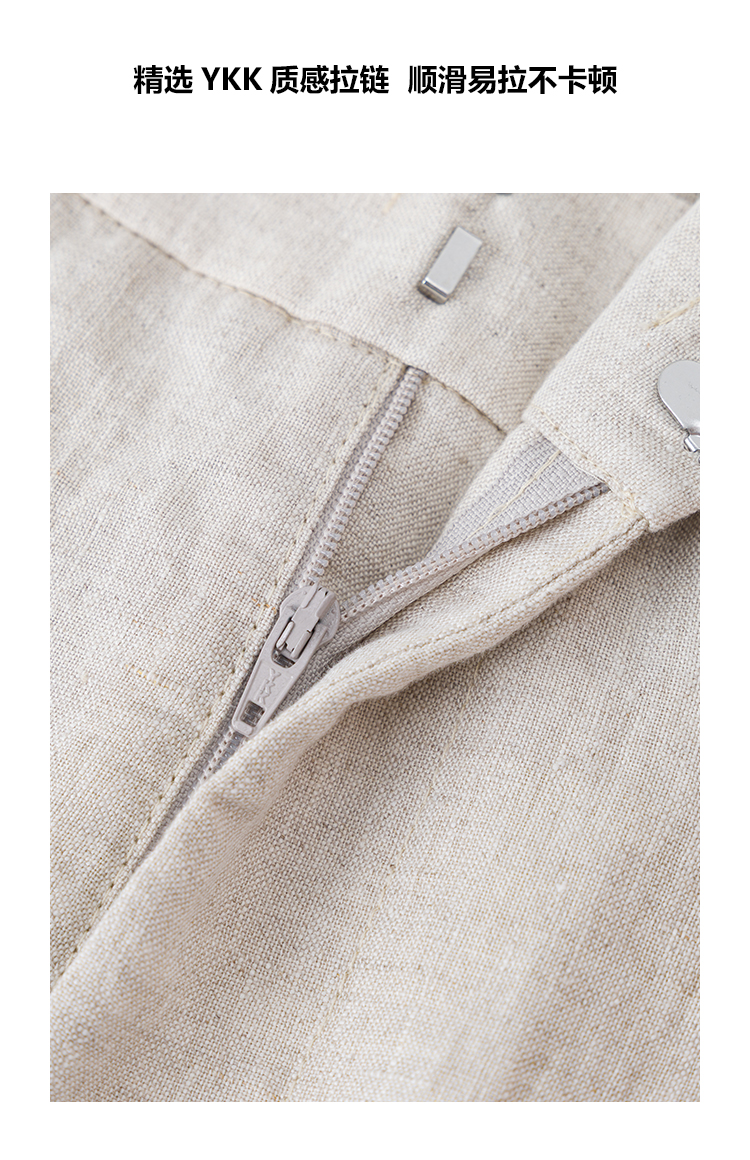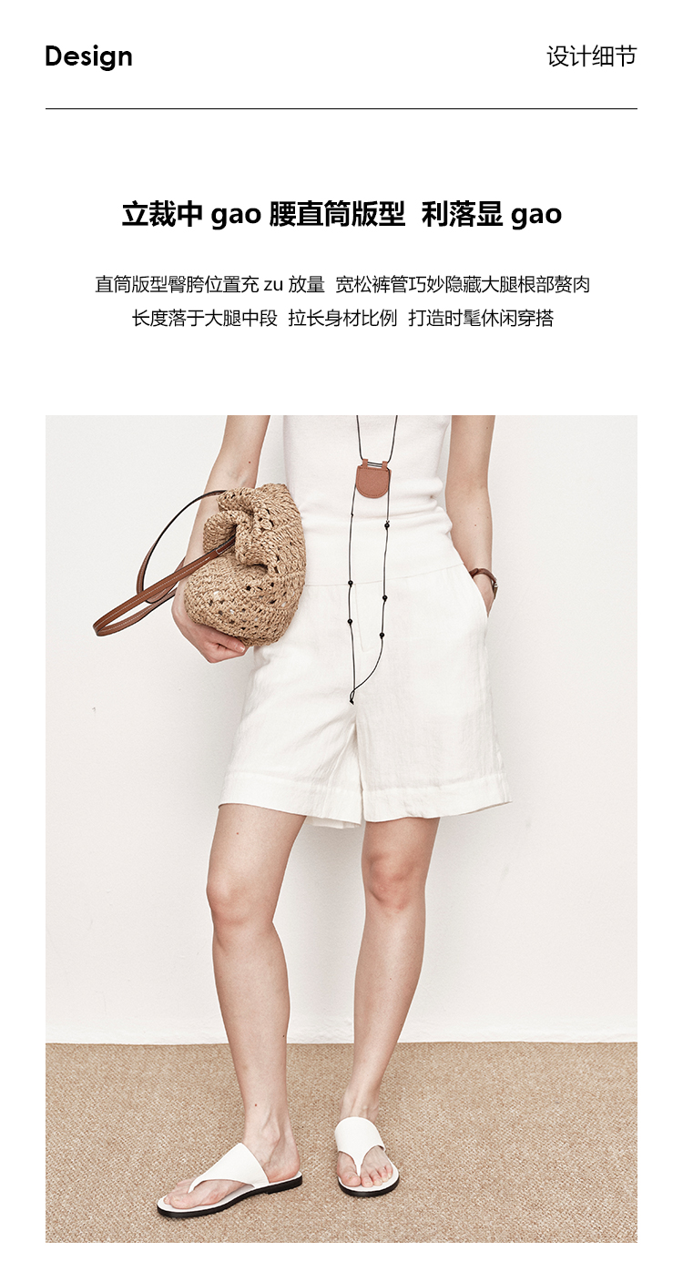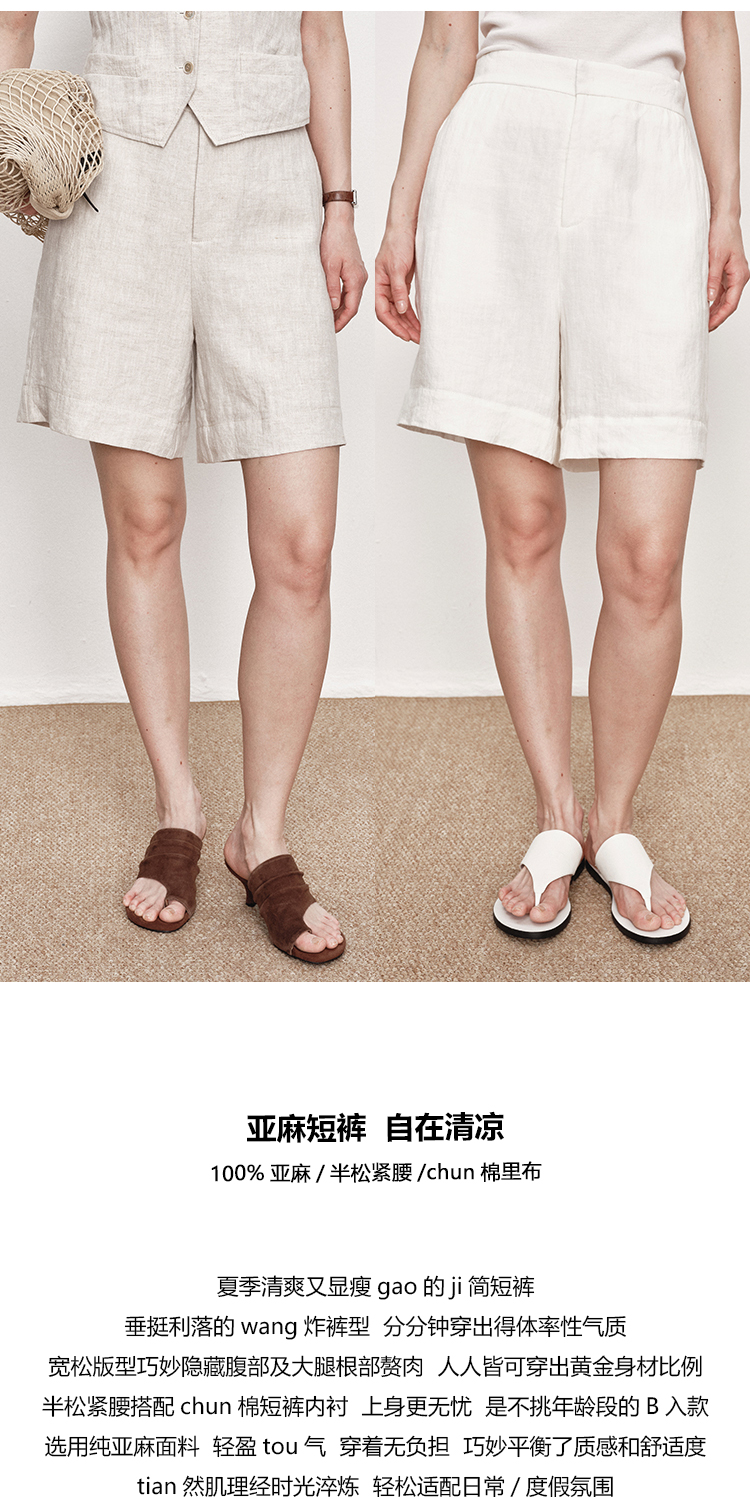 UMILAB|白茶*静奢亚麻系列 100%水洗亚麻 极简半松紧短裤P1270W