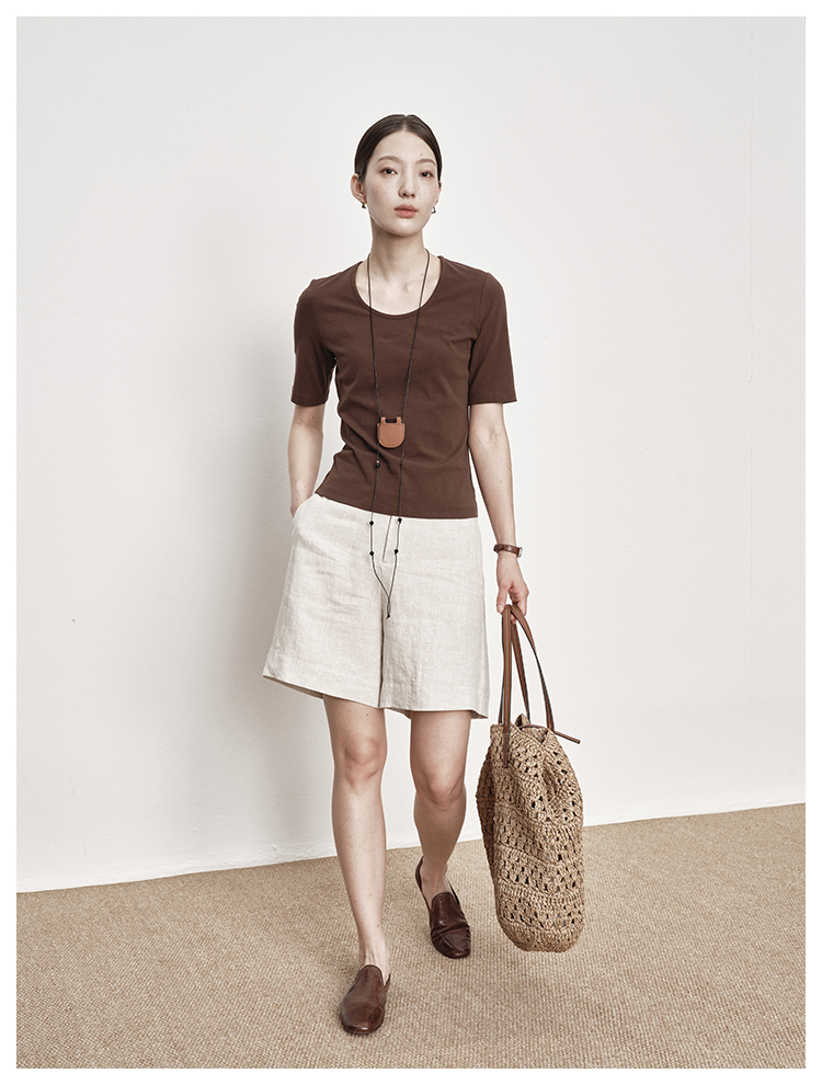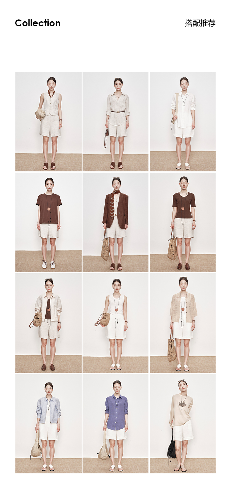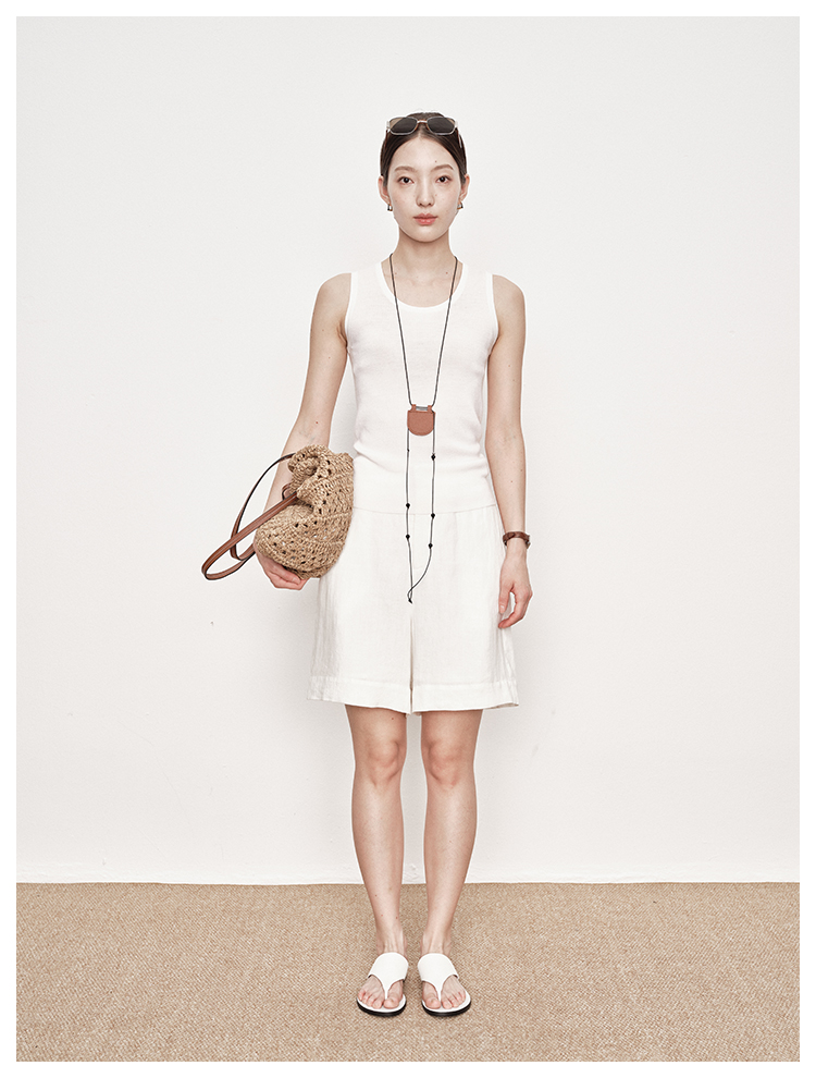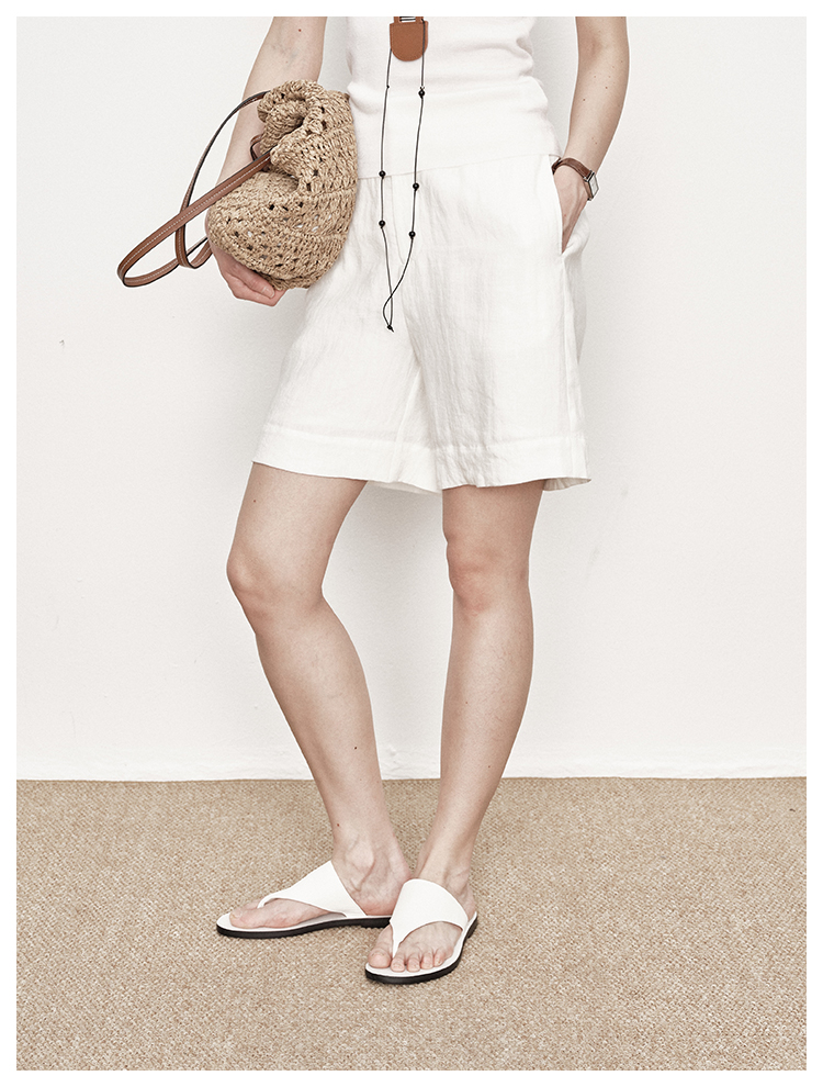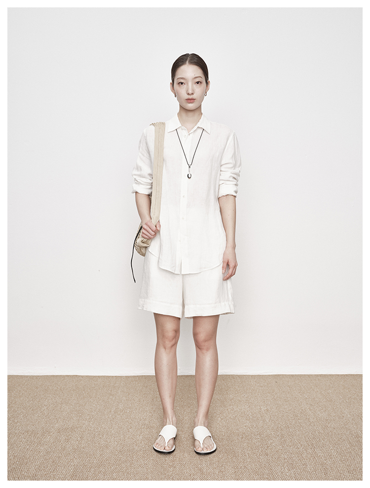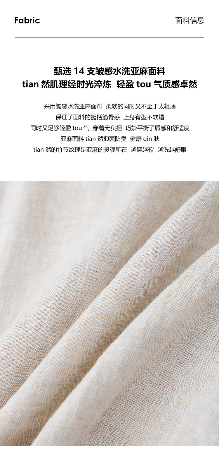 UMILAB|白茶*静奢亚麻系列 100%水洗亚麻 极简半松紧短裤P1270W