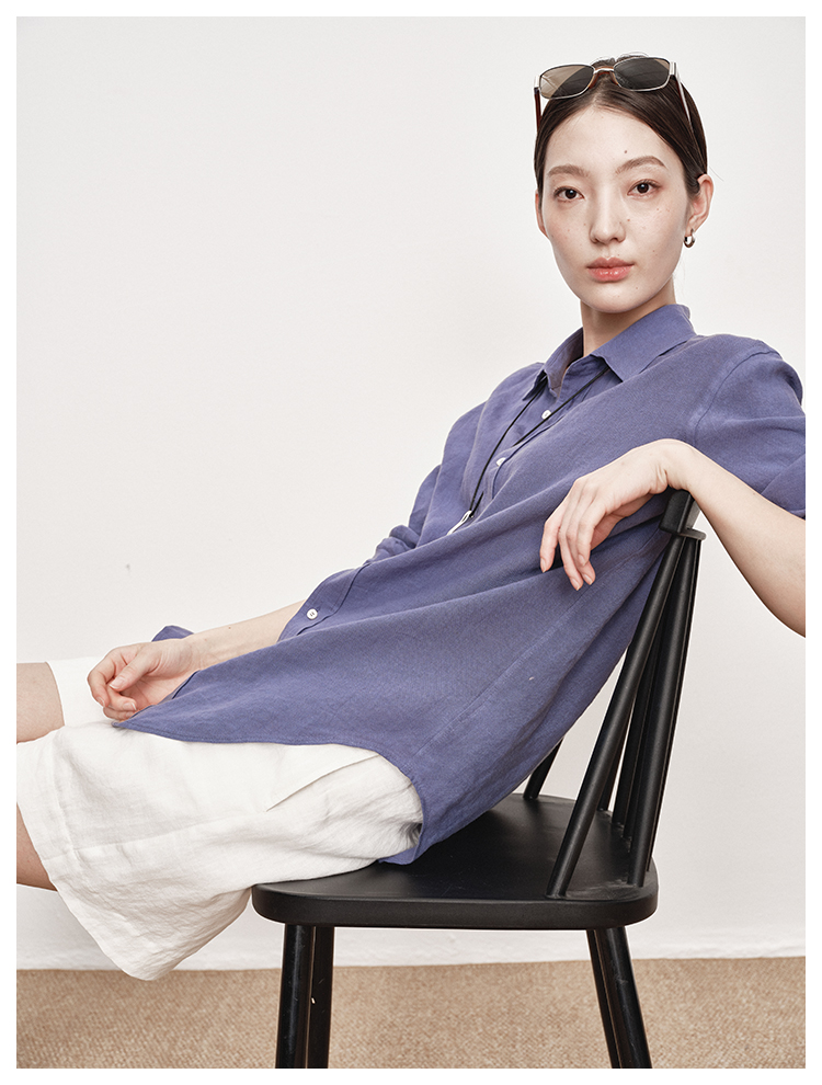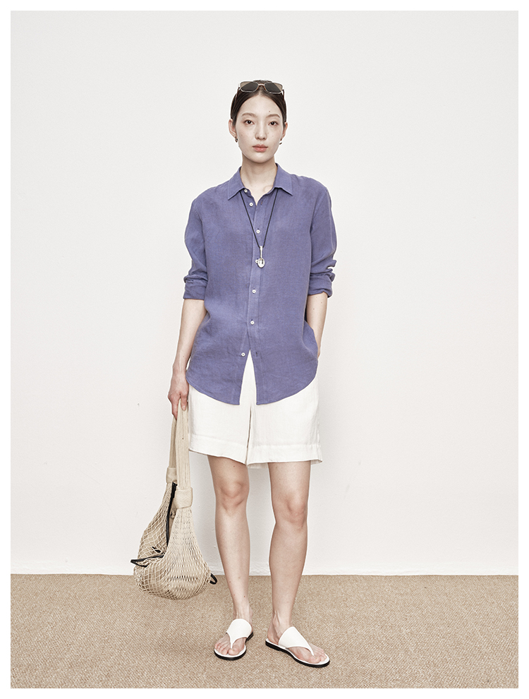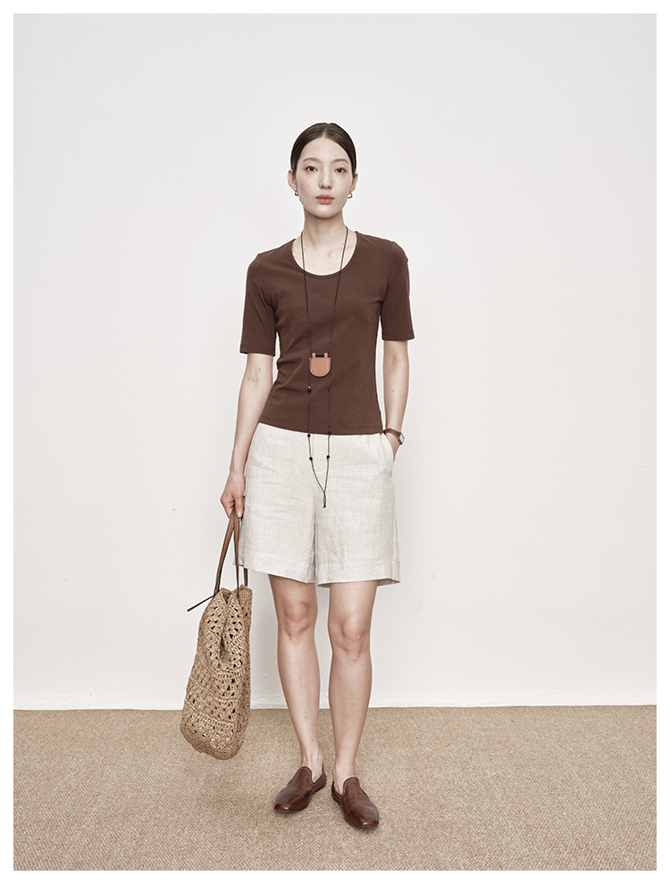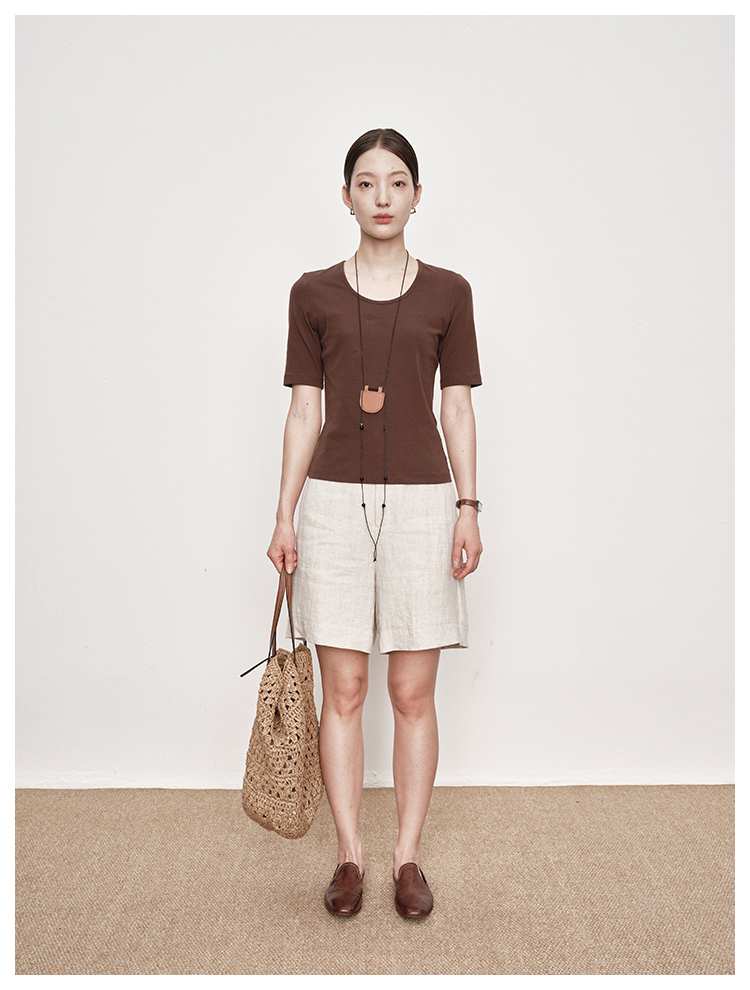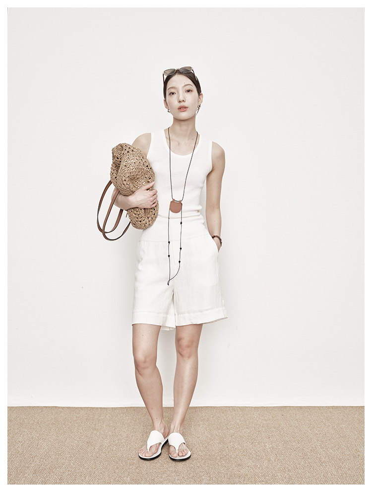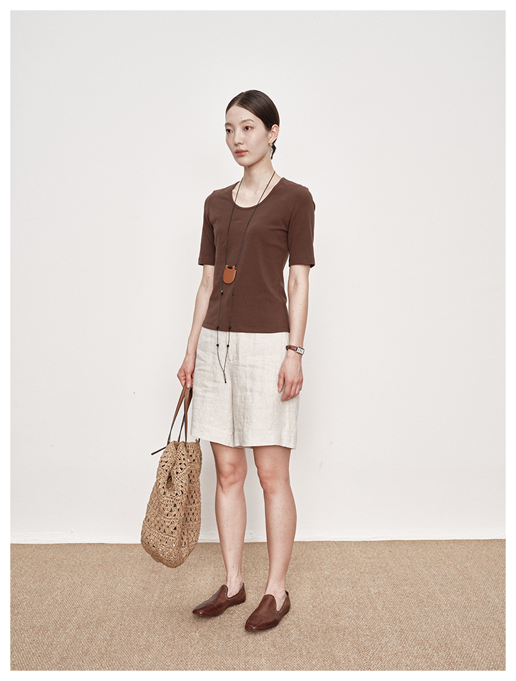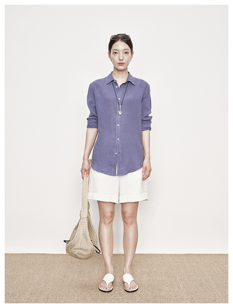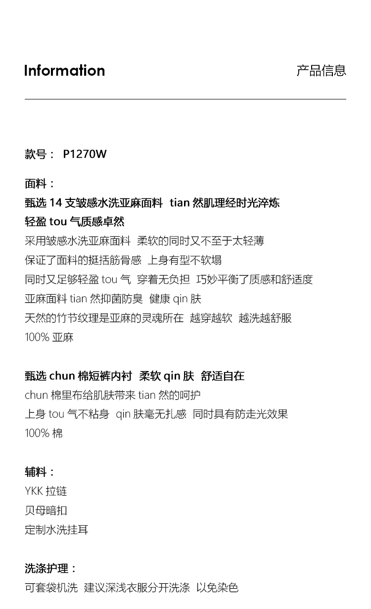 UMILAB|白茶*静奢亚麻系列 100%水洗亚麻 极简半松紧短裤P1270W