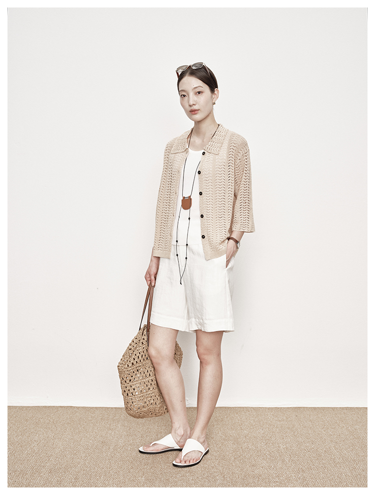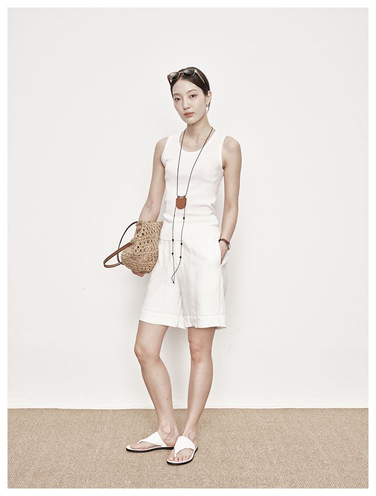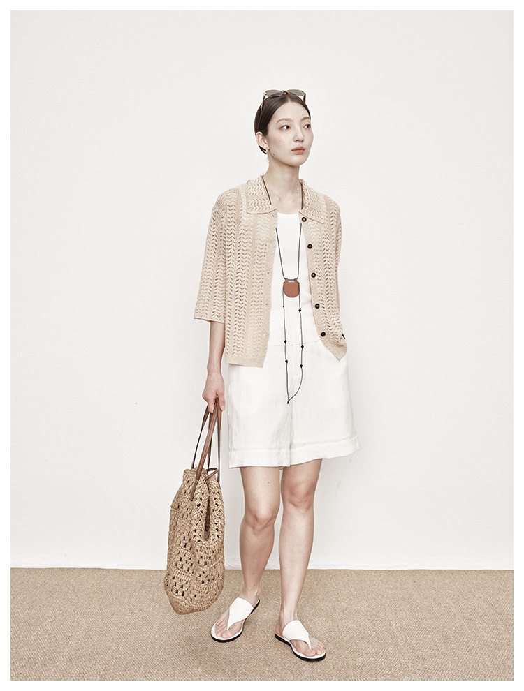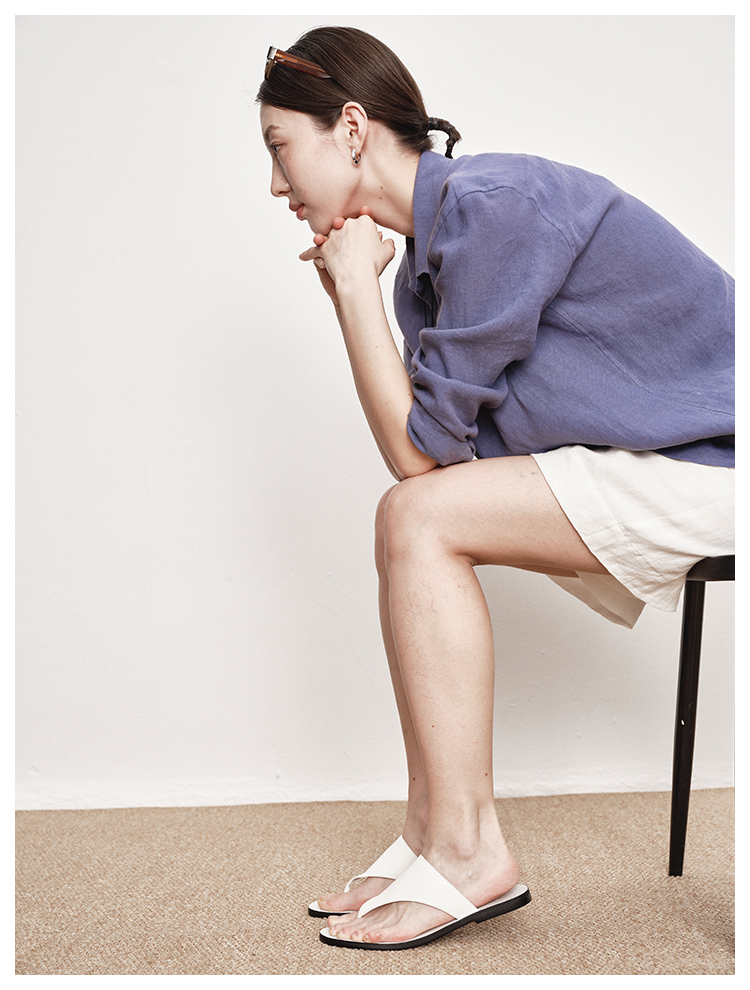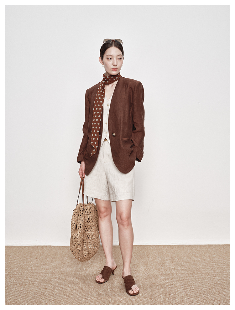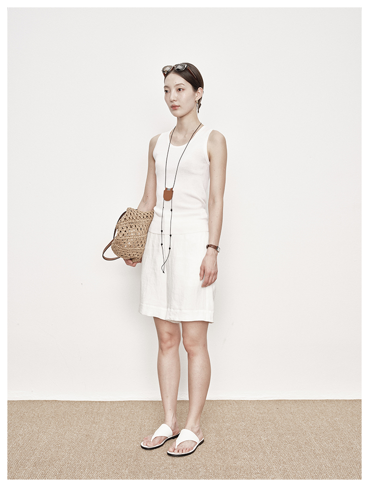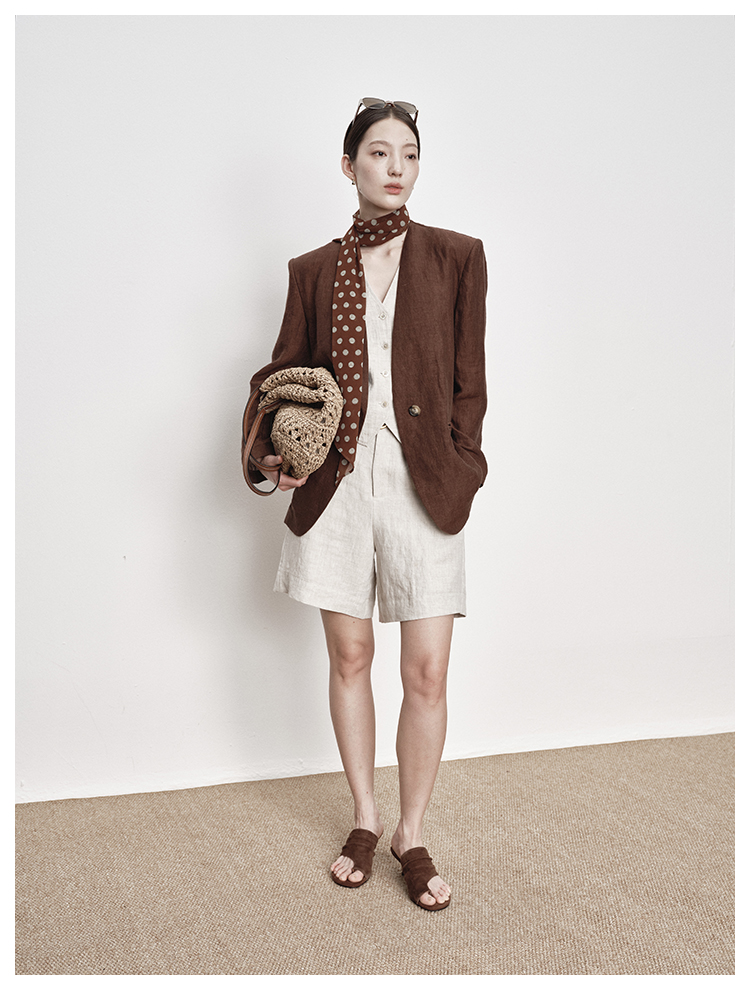 UMILAB|白茶*静奢亚麻系列 100%水洗亚麻 极简半松紧短裤P1270W
