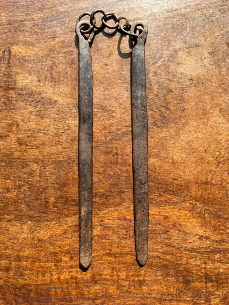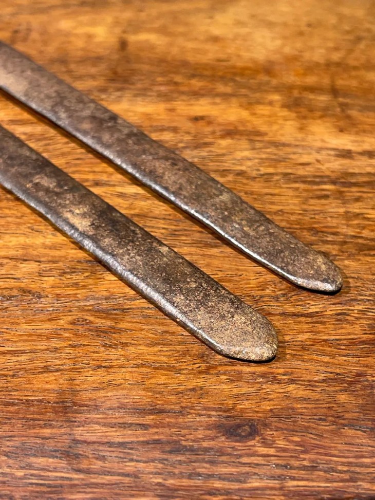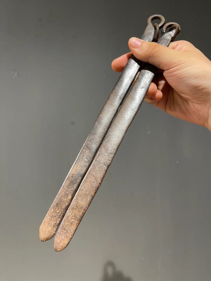 此铁制茶事用炭火筷除正常使用磨损外,基本保存完好,无任何损伤。