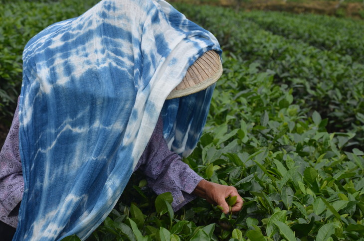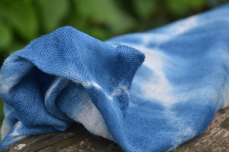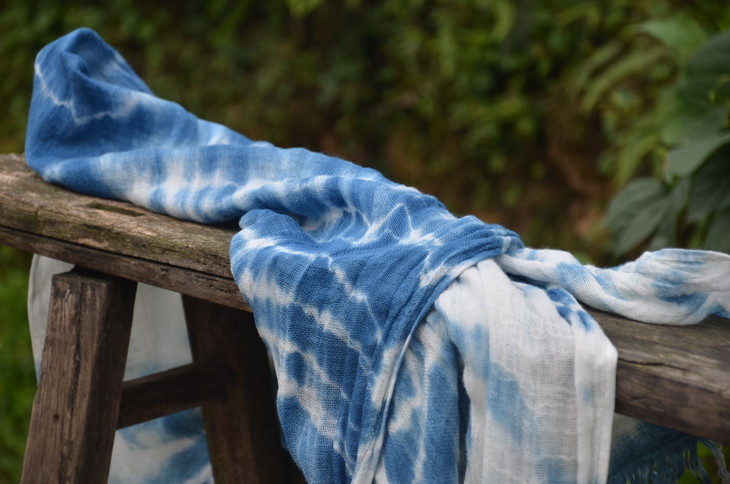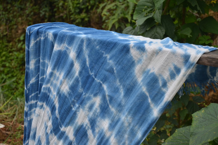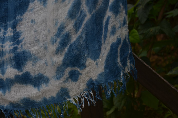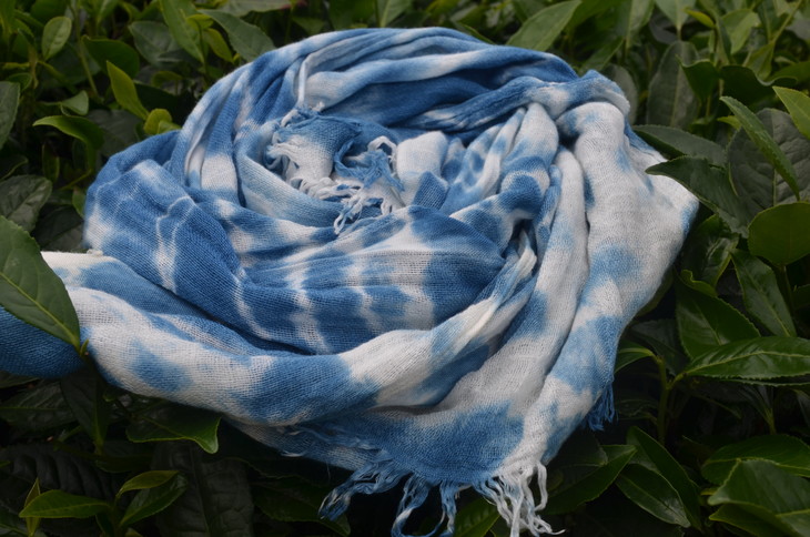 工艺:植物蓝染之扎染 围巾尾部带流苏