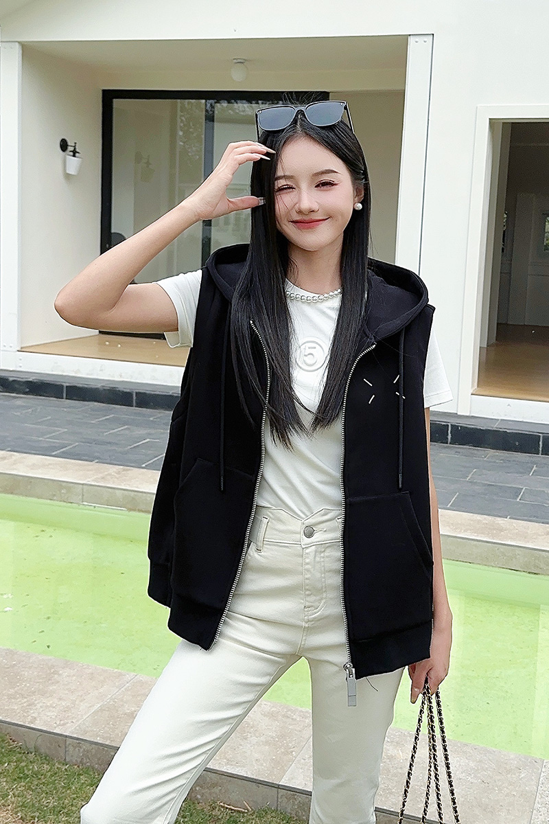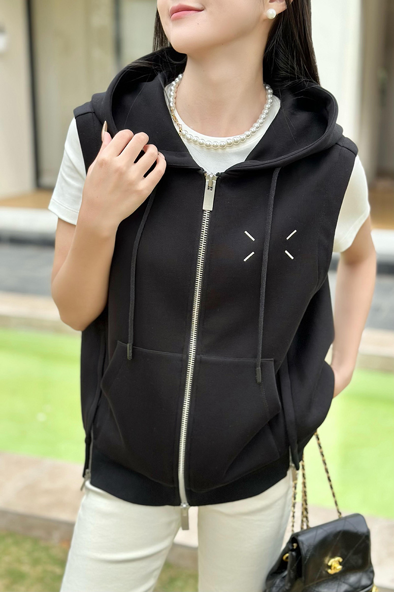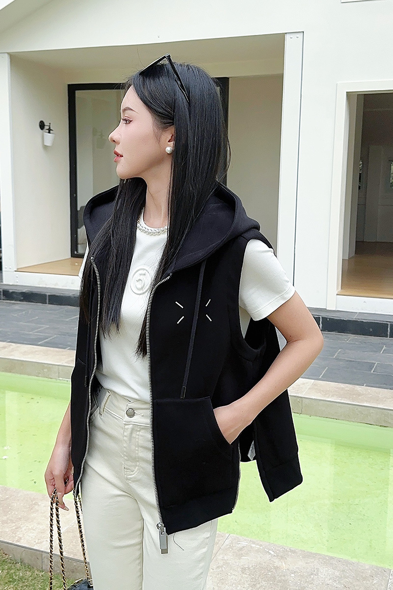 带帽左胸绣线拉链马甲 9521060024