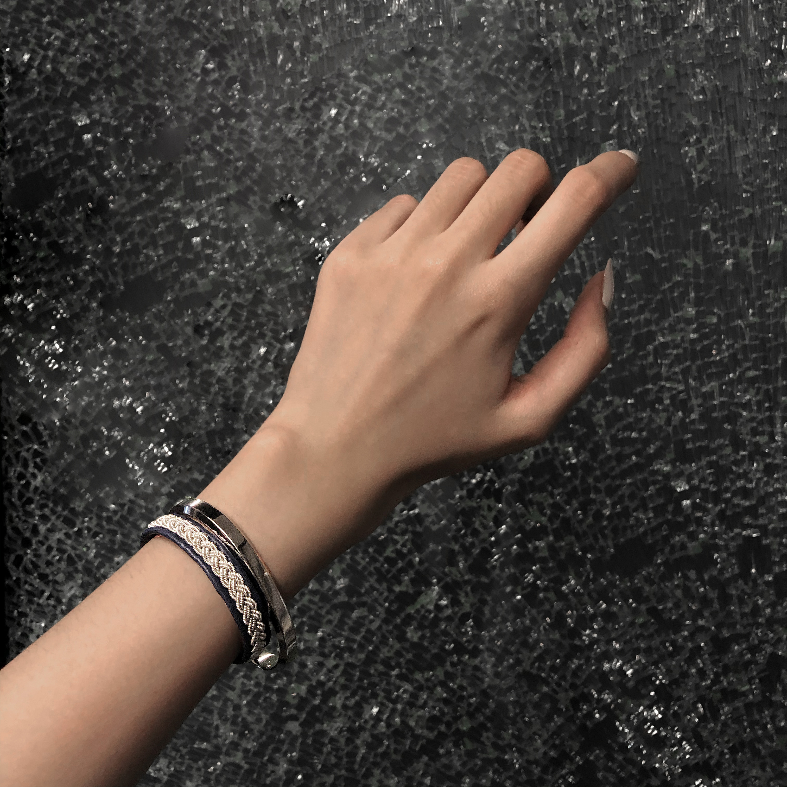手环主体采用和平驯鹿皮,纽扣采用和平驯鹿角