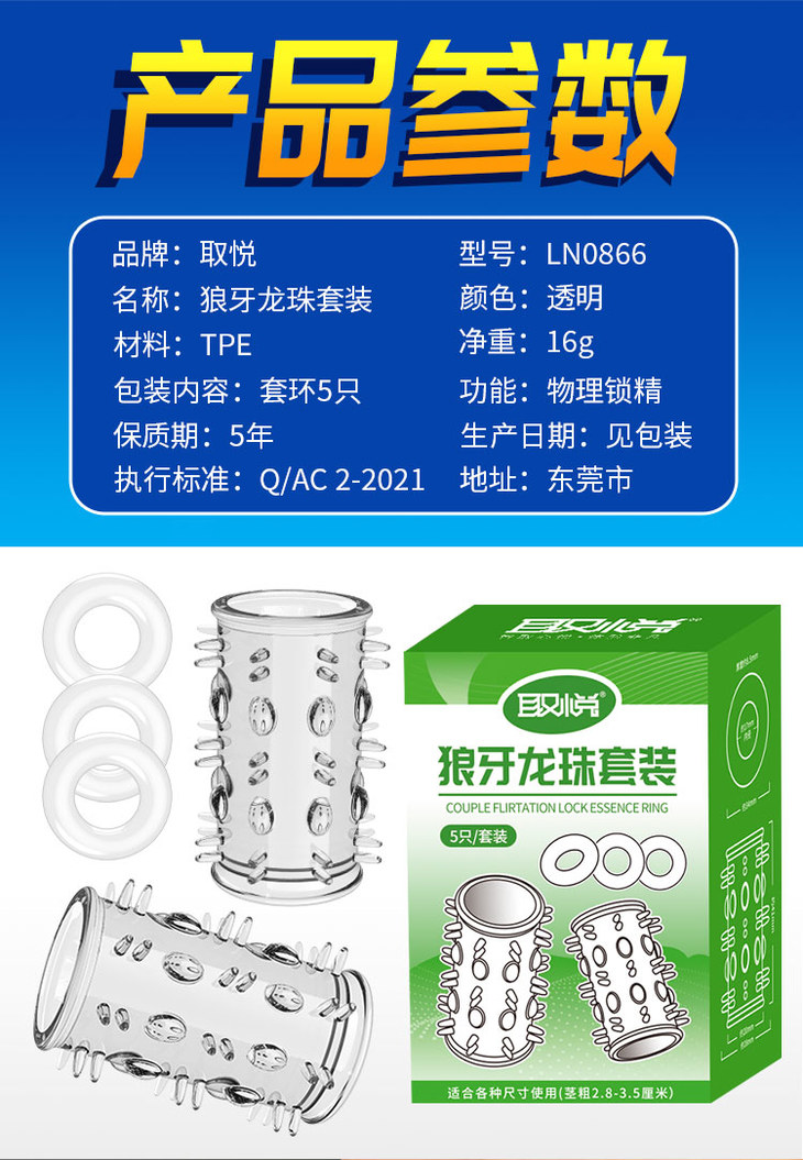男用热销 狼牙龙珠套装5只装锁精物理延长 号7859