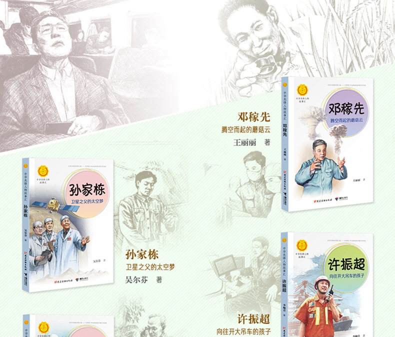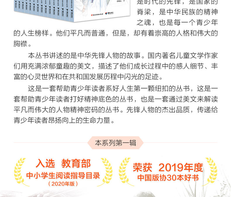 有这样一批人,他们是时代的先锋,是国家的脊梁,是中华民族的精神之魂,也是每一个青少年的人生榜样。他们平凡而普通,但是,却有着崇高的人格和伟大的胸襟。本丛书讲述的是中华先锋人物的故事。国内著名儿童文学作家们用充满浓郁童趣的美文,描述了他们成长过程中的感人细节、丰富的心灵世界和在共和国发展历程中闪光的足迹。这是一套帮助青少年读者系好人生diyi颗纽扣的丛书,这是一套帮助青少年读者打好精神底色的丛书,也是一套通过美文来解读平凡而伟大的人物精神密码的丛书。先锋人物的杰出品质,传递给青少年读者昂扬向上的生命力量。