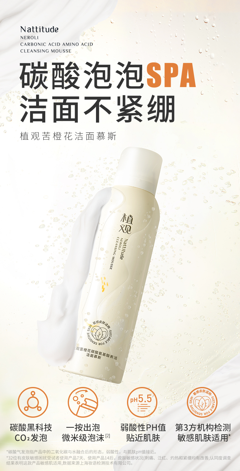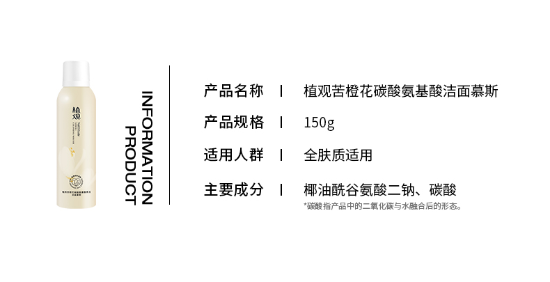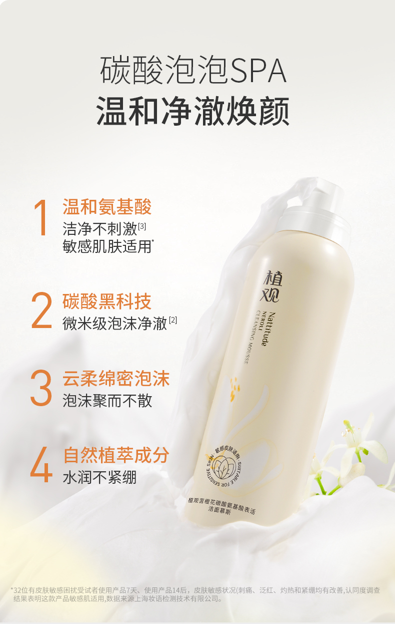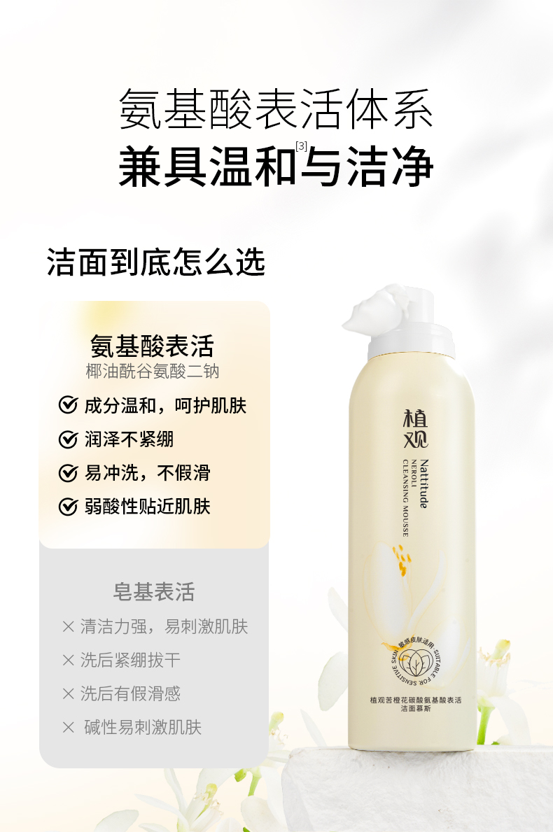 植观氨基酸洁面慕斯·橙花滋养系列150g 氨基酸洁面 洁后亮1°(植观官方旗舰店)
