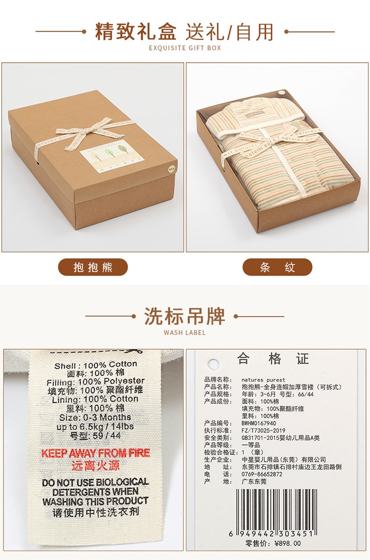 【云粉节】9楼英国natures purest(天然素彩)宝宝连体衣爬服秋冬婴儿纯棉冬装加厚外穿哈衣丨吊牌价:898元,活动价:858元
