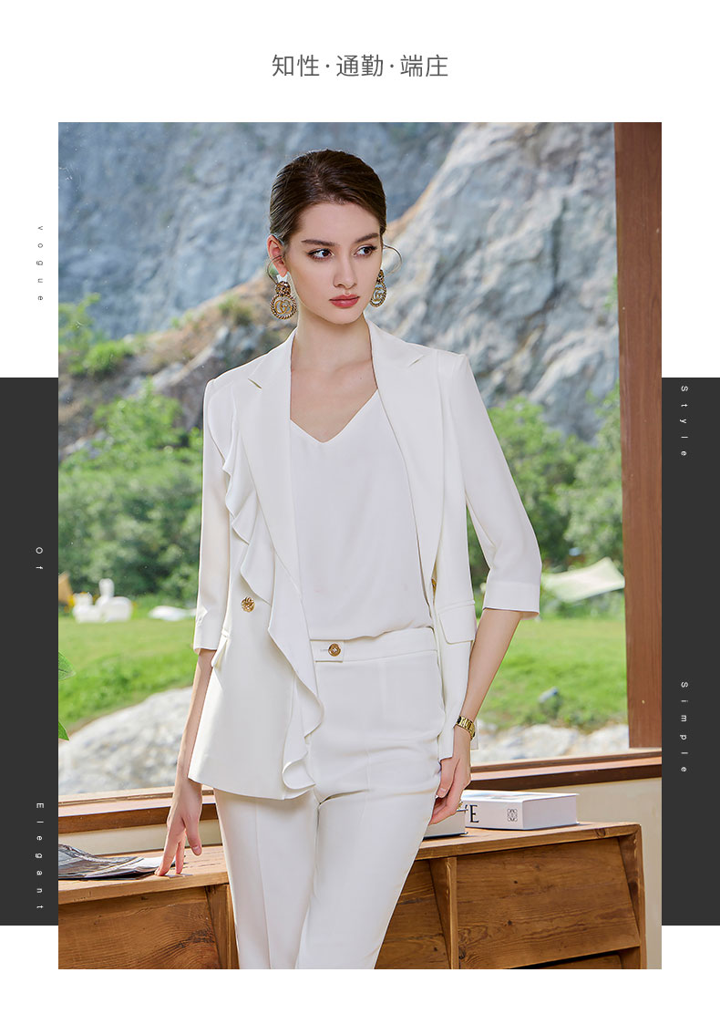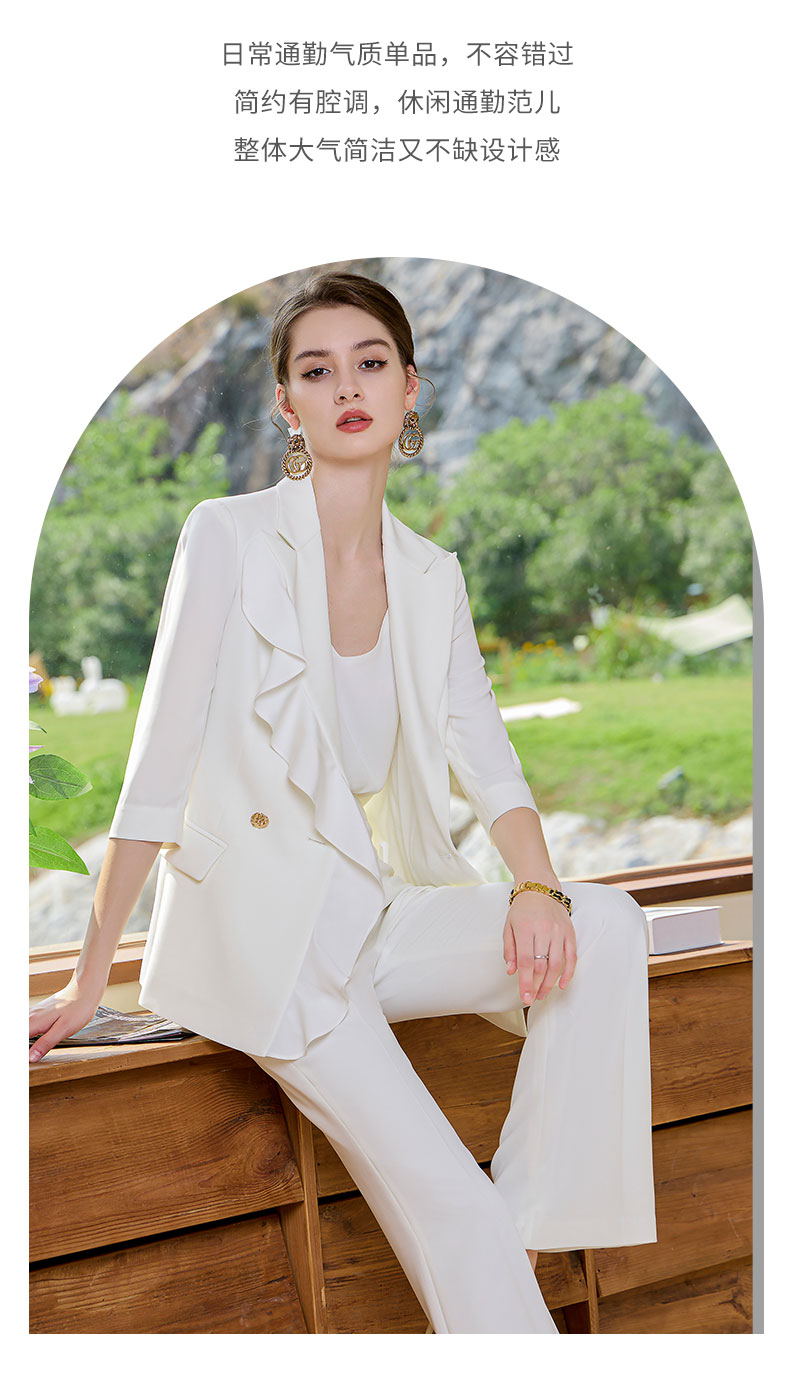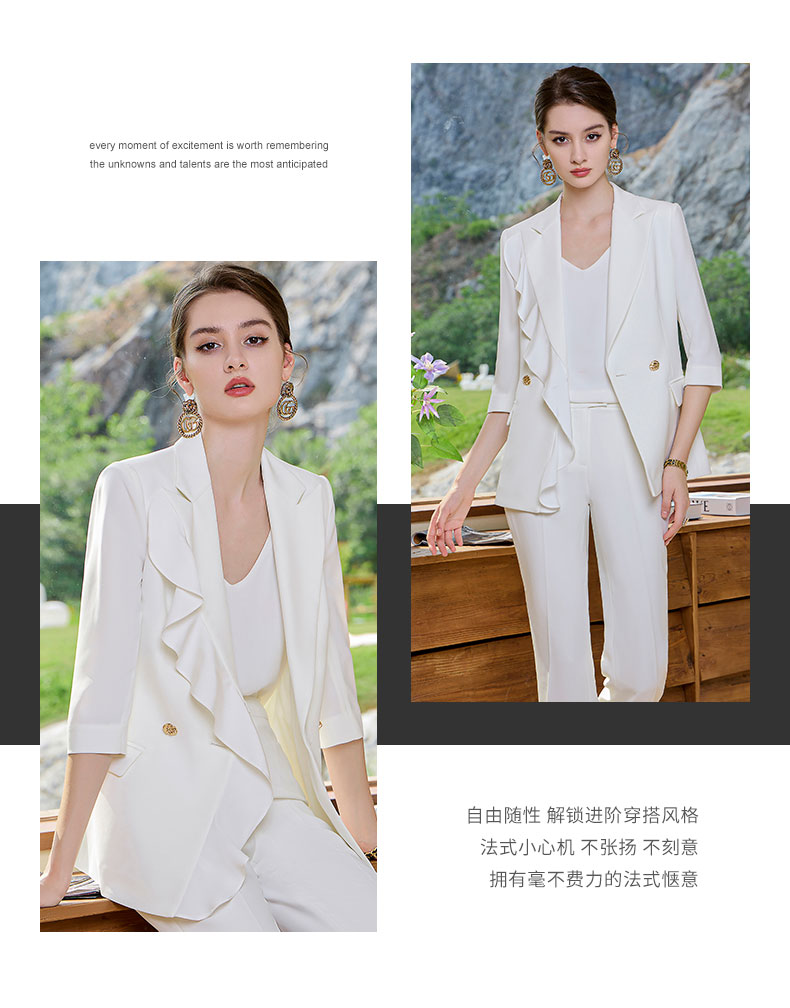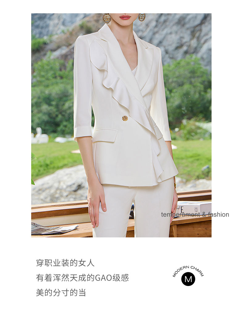 AD白色西装正装女职业套装高级感荷叶边薄款小西服气质轻熟风女装
