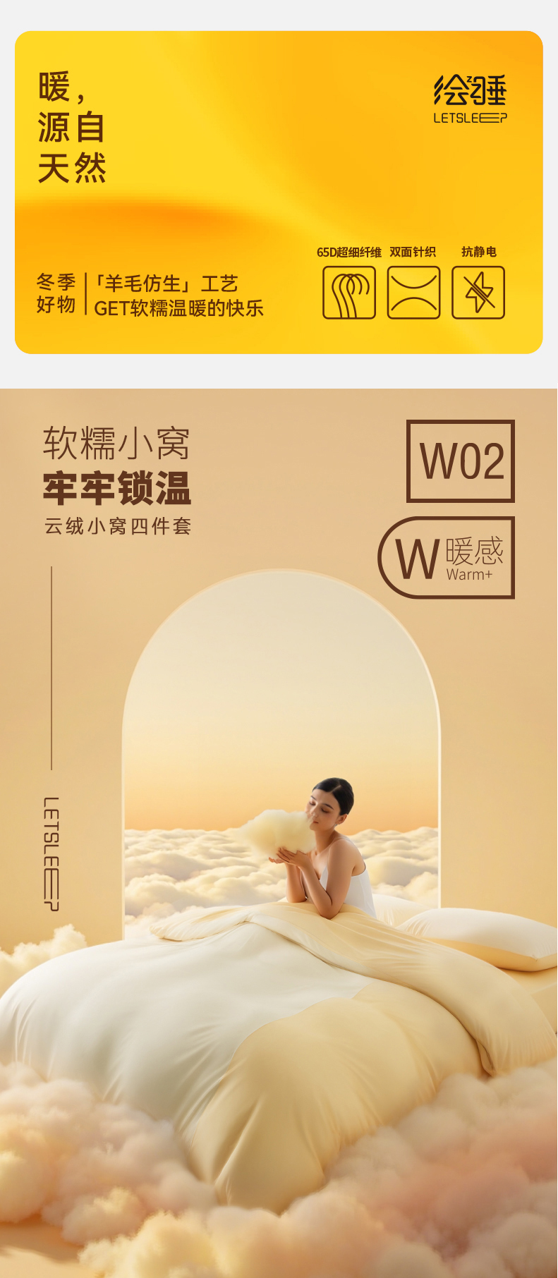 【文怡之选】绘睡 云绒小窝四件套 床笠款 丰盈绒感 双面软糯 柔软舒适 可机洗