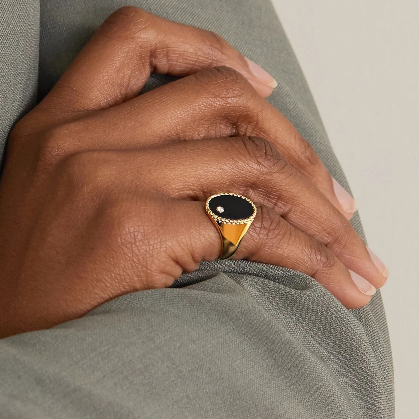 订购10周到|Yvonne Leon-Signet Oval-9K黄金 黑玛瑙 椭圆戒面 戒指[法国设计师]