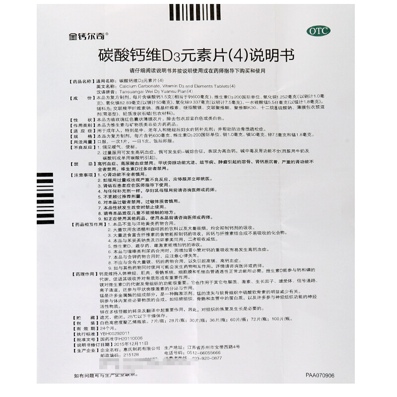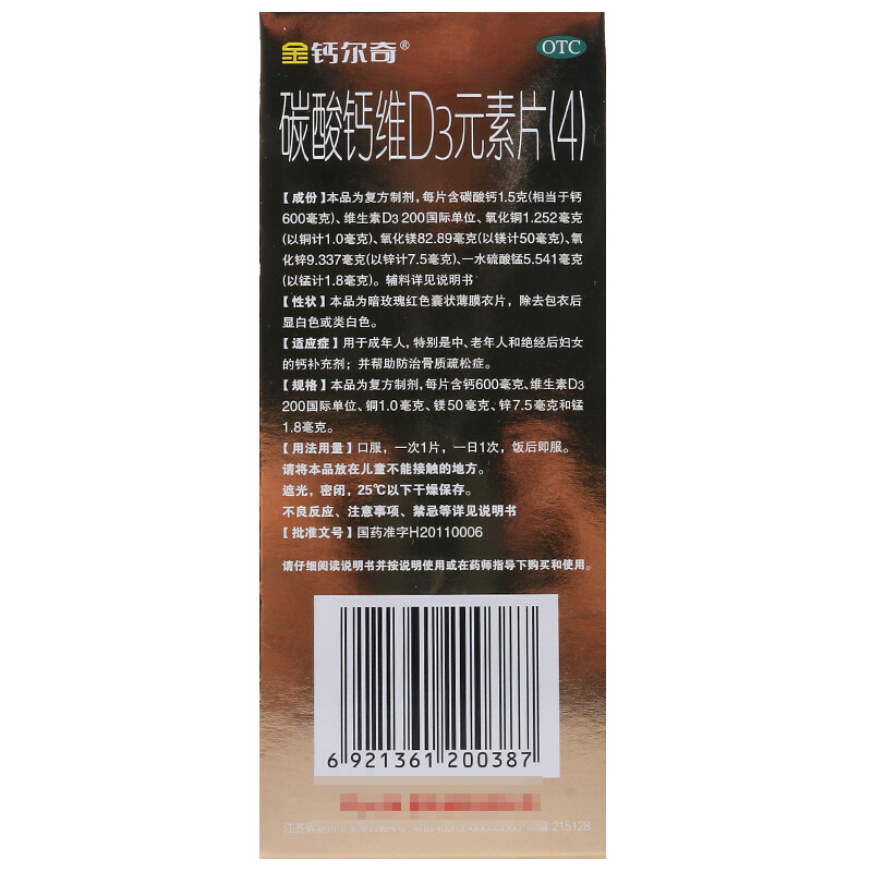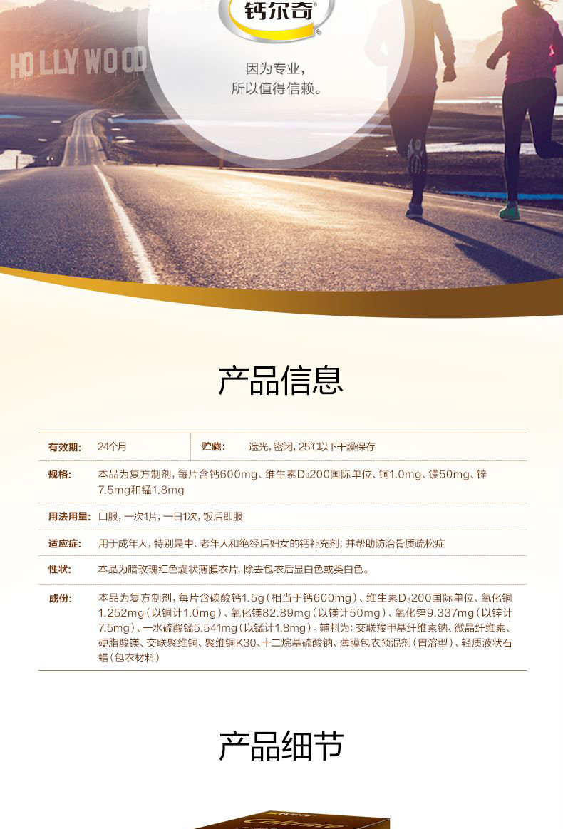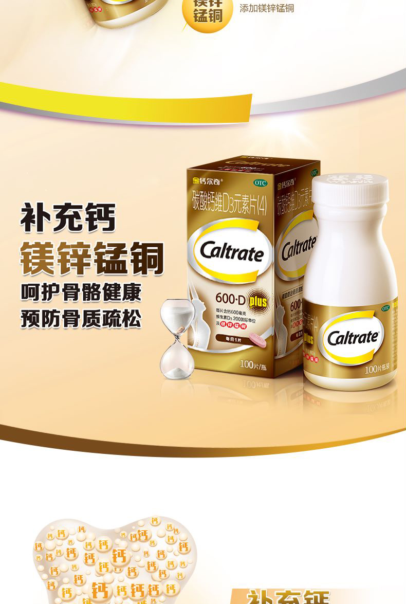 惠氏金钙尔奇碳酸钙维D3元素片(4)100片成人中老年防骨质疏松症