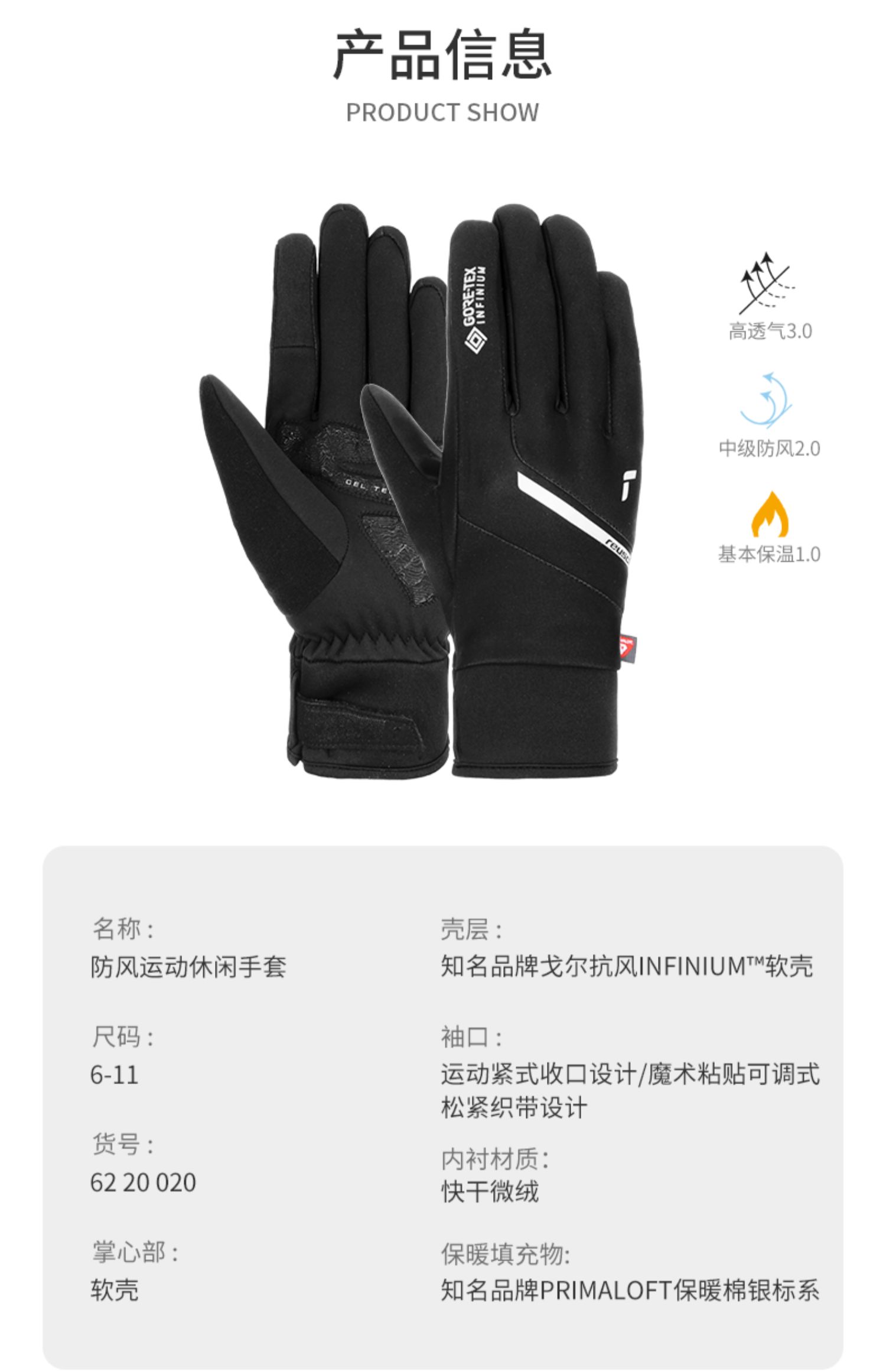 Reusch炫驰内胆休闲登山防风GTX保暖触屏滑雪手套6220020