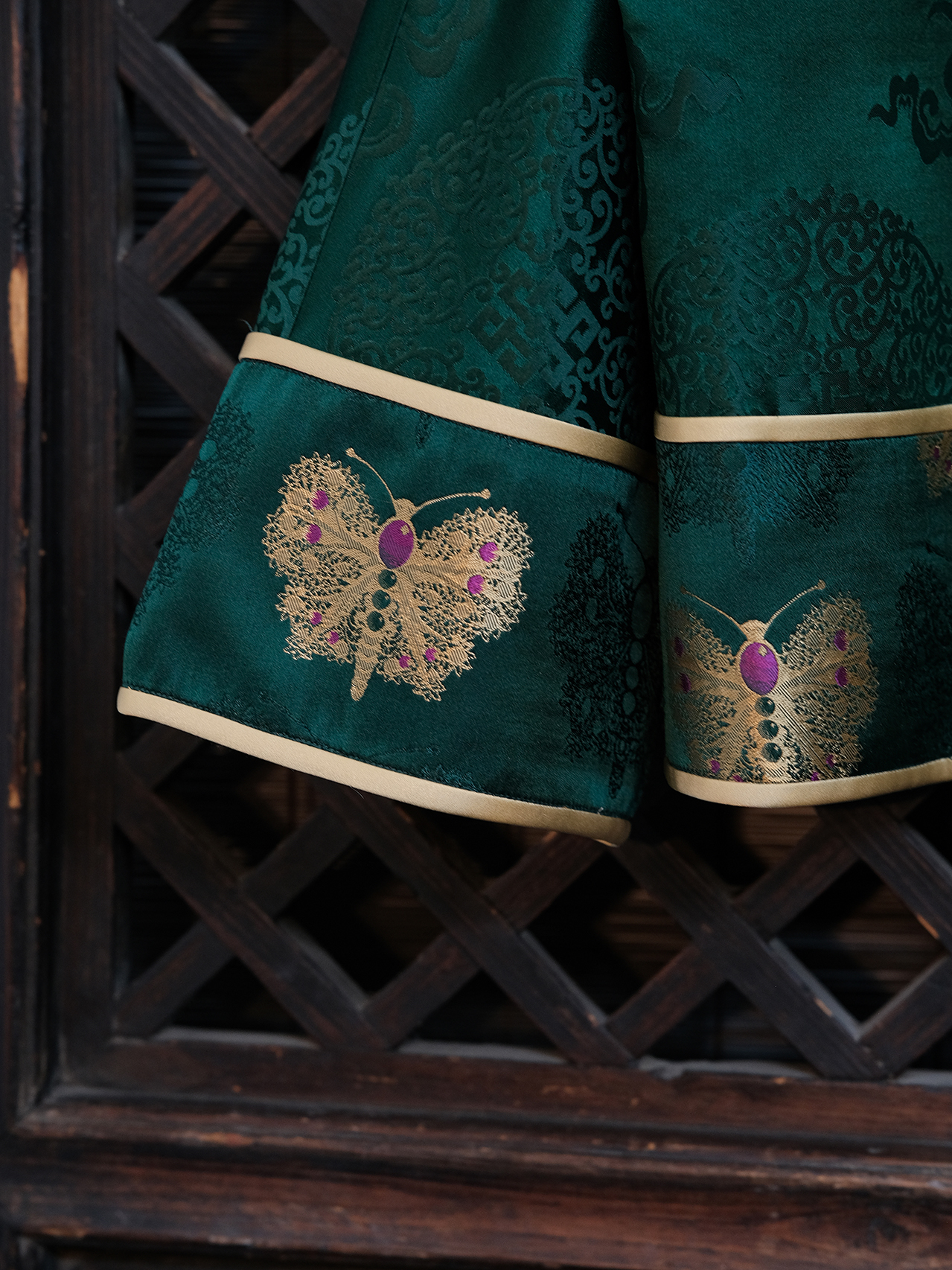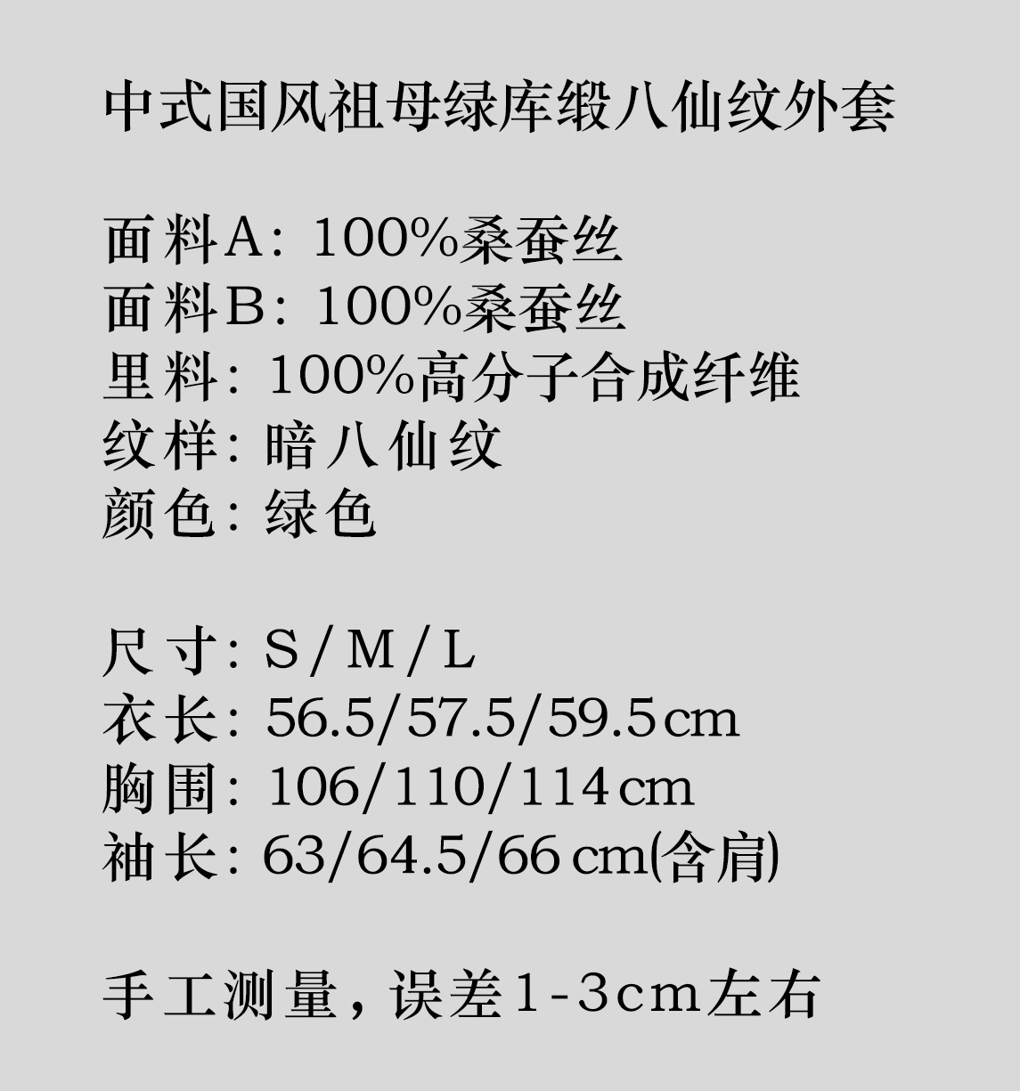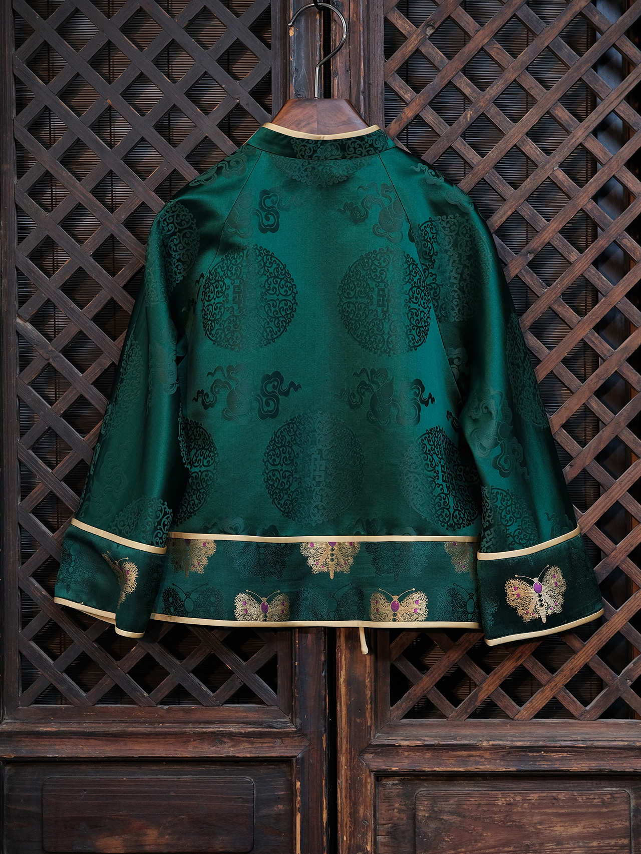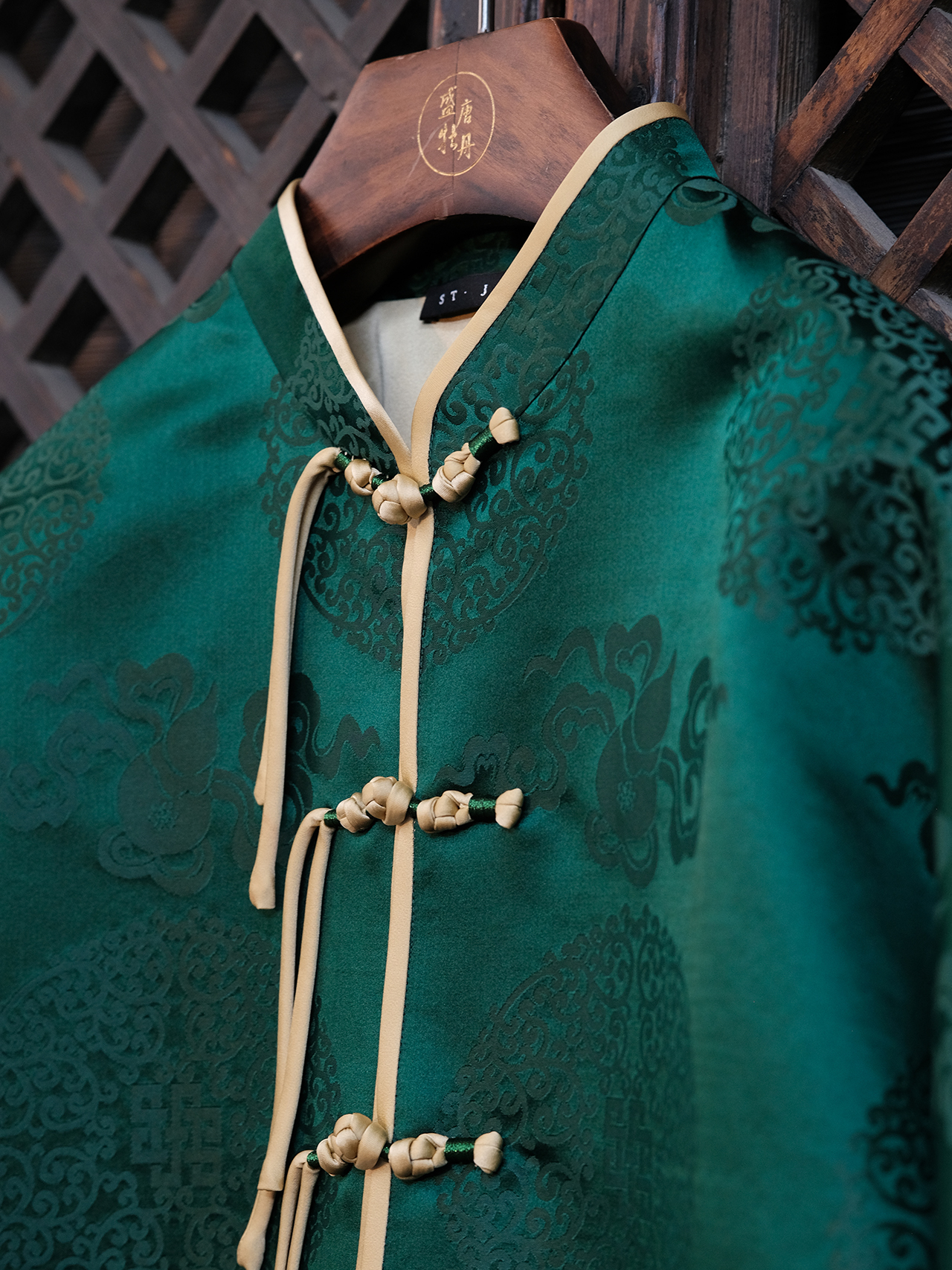 瑕疵|盛唐婧 |中式国风祖母绿库缎八仙纹外套[特价品](特殊商品不退不换)