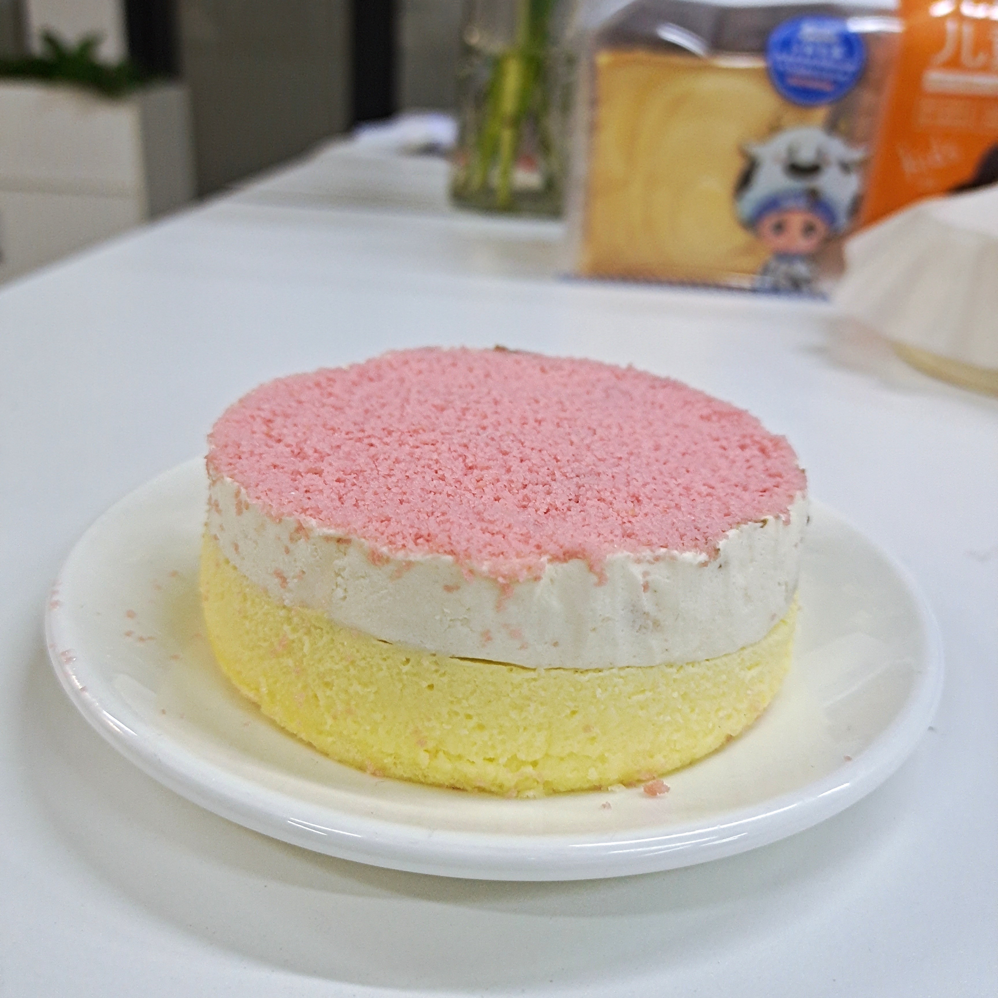 吃完感觉奶里奶气,有点像冰淇淋口感,一层爽滑芝士慕斯,一层醇香半熟芝士,偏厚重的口感,浓郁奶香,好吃!