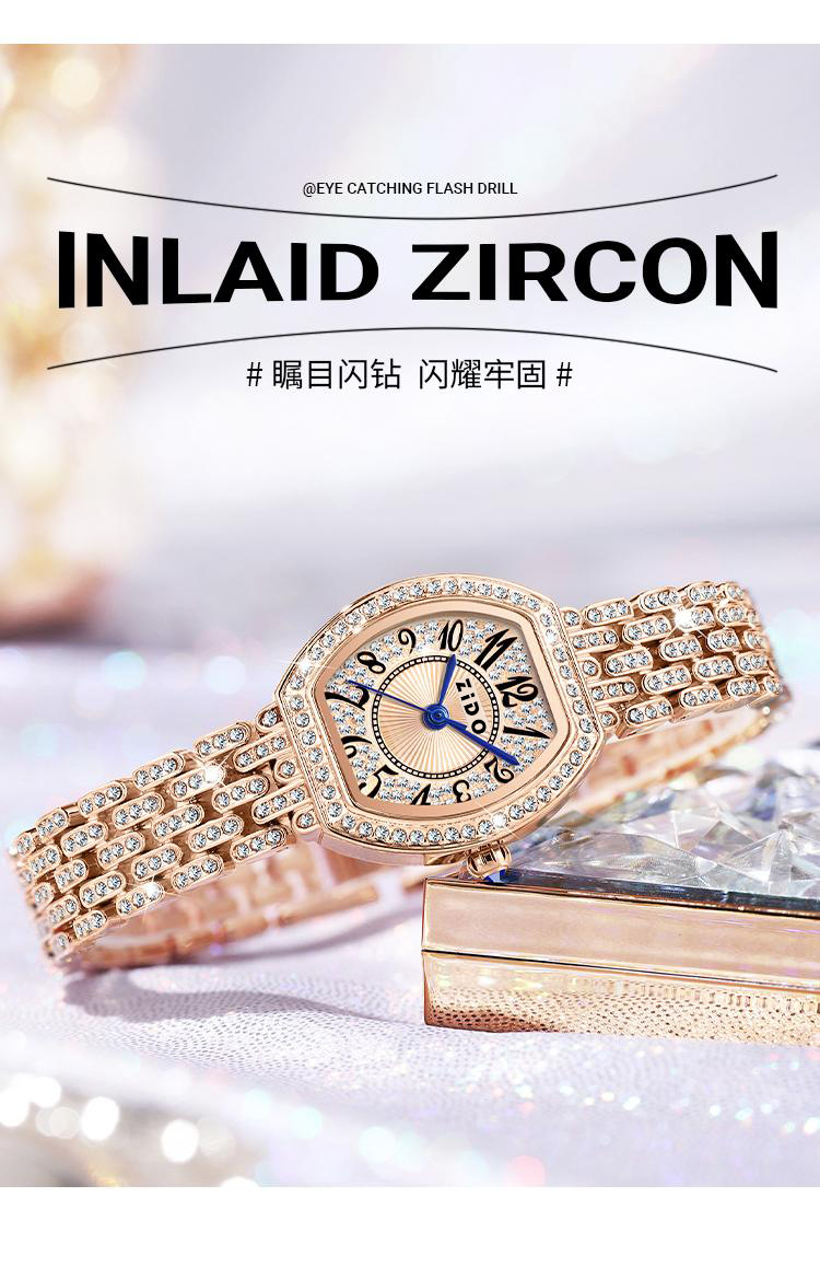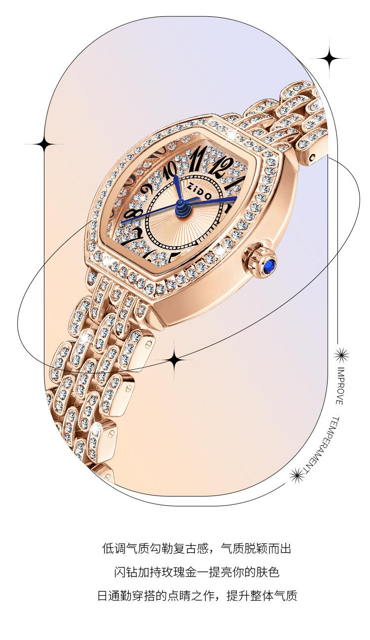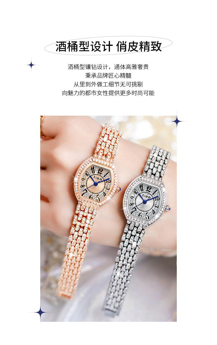 【奢华尊贵!闪耀水钻女款腕表】酒桶型设计,闪钻加持玫瑰金 通体高雅奢贵!满钻表带 低调气质勾勒复古感!轻奢复古时尚日常通勤防水女士腕表Y